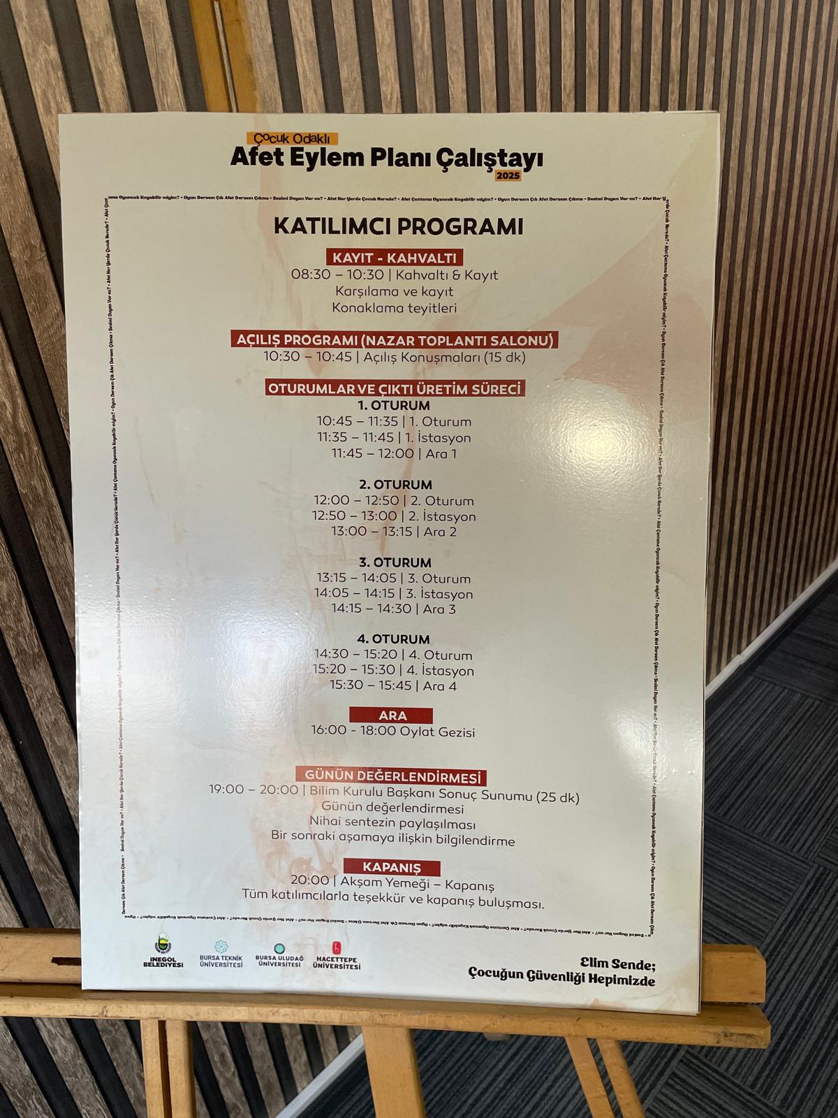 Afet ve Acil Durum Koordinatörü Öğr. Gör. Dr. Meryem AKBULUT BAKIR Bursa İnegöl Belediyesi tarafından düzenlenen Çocuk Odaklı Afet Eylem Planı Çalıştayı'na üniversitemizi temsilen katılmıştır.