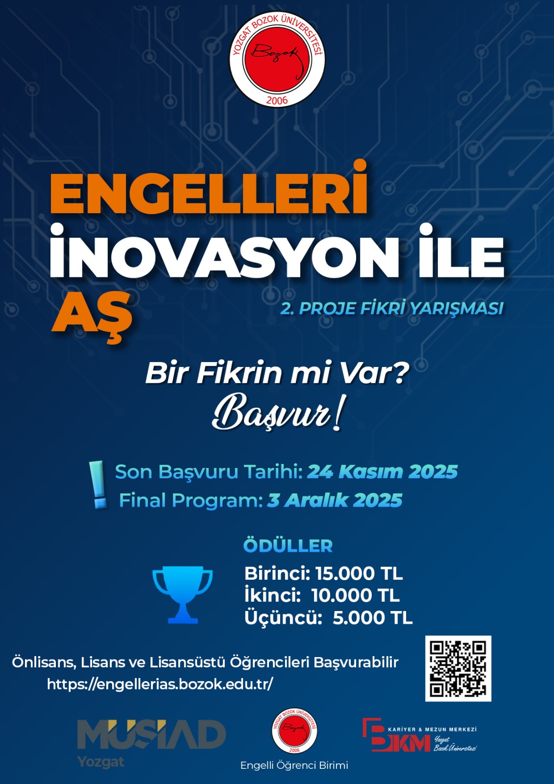 Başvuru Sistemi: https://engellerias.bozok.edu.tr/Home/Index