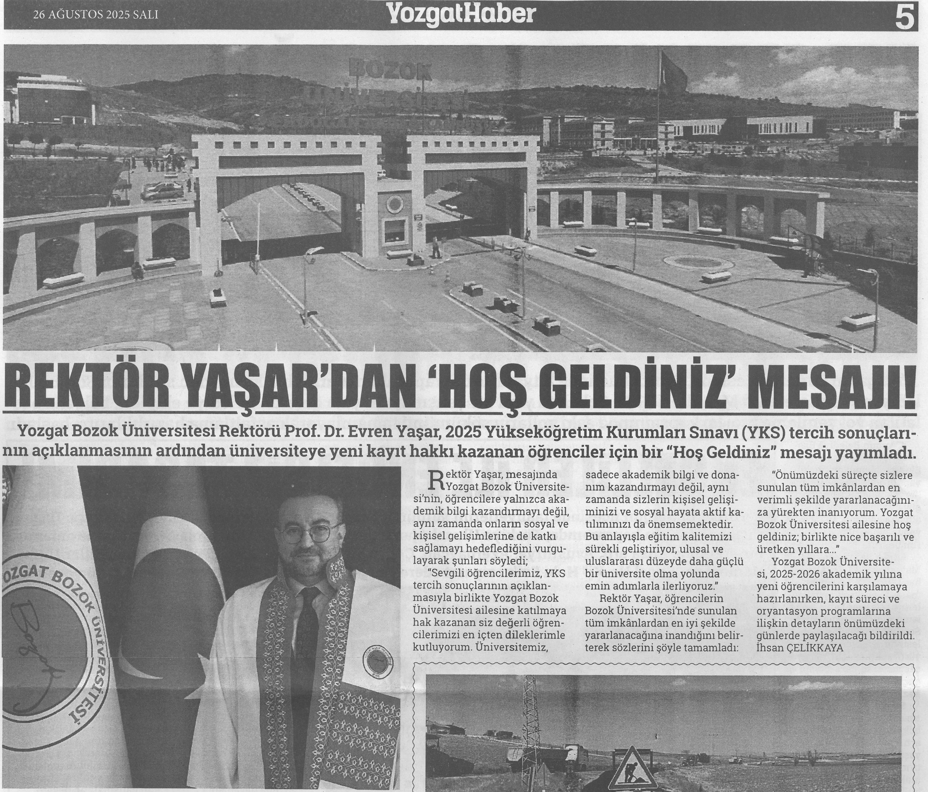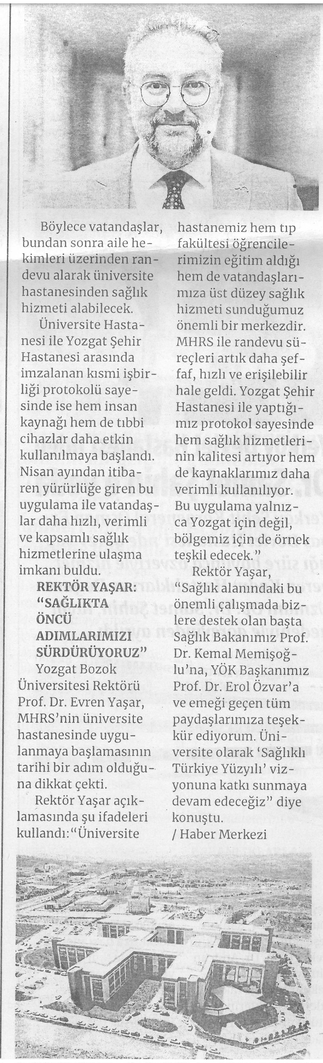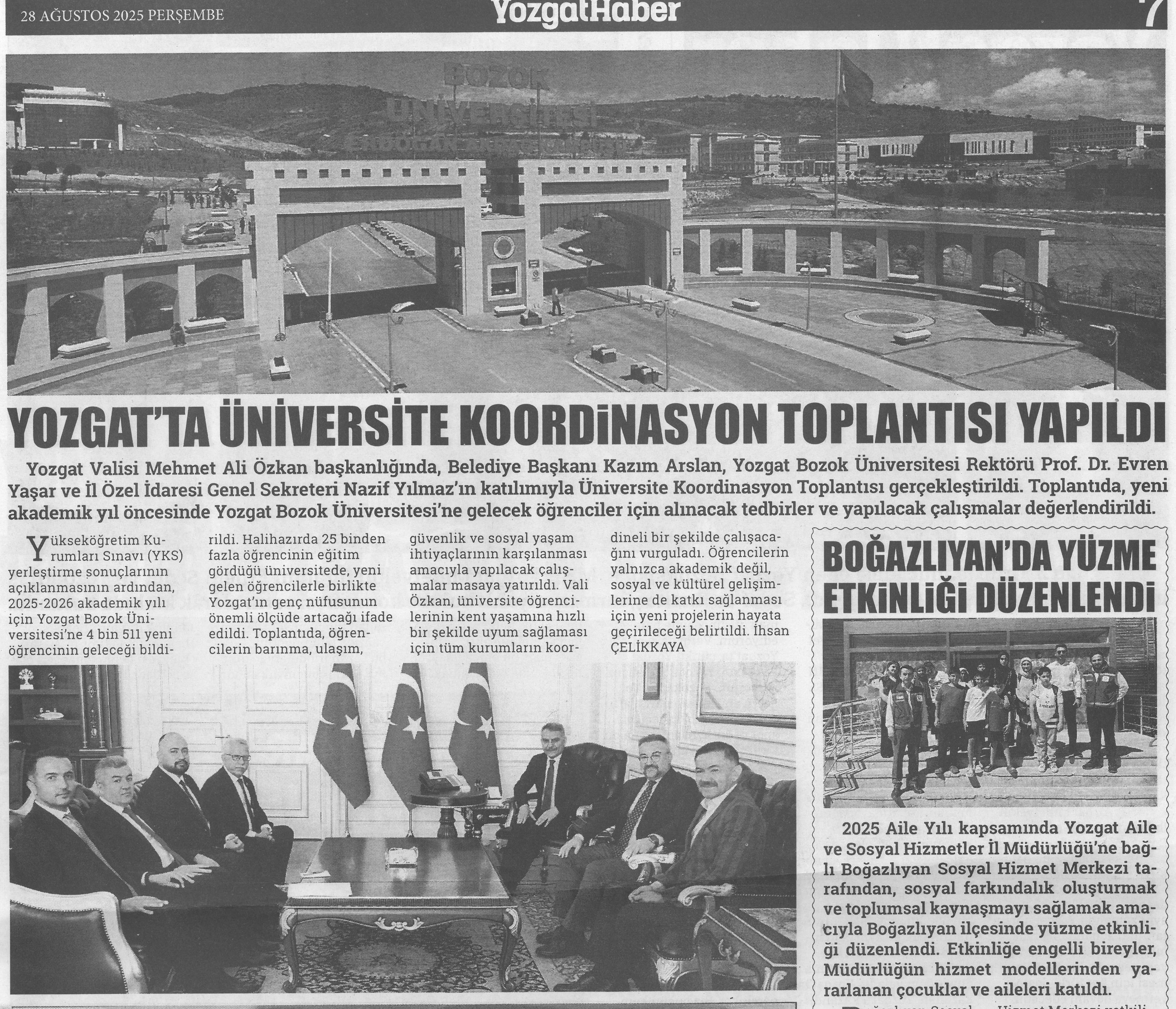 Rektör Prof. Dr. YAŞAR'dan Yozgat'a Müjde Yozgat Merkez Olacak! |