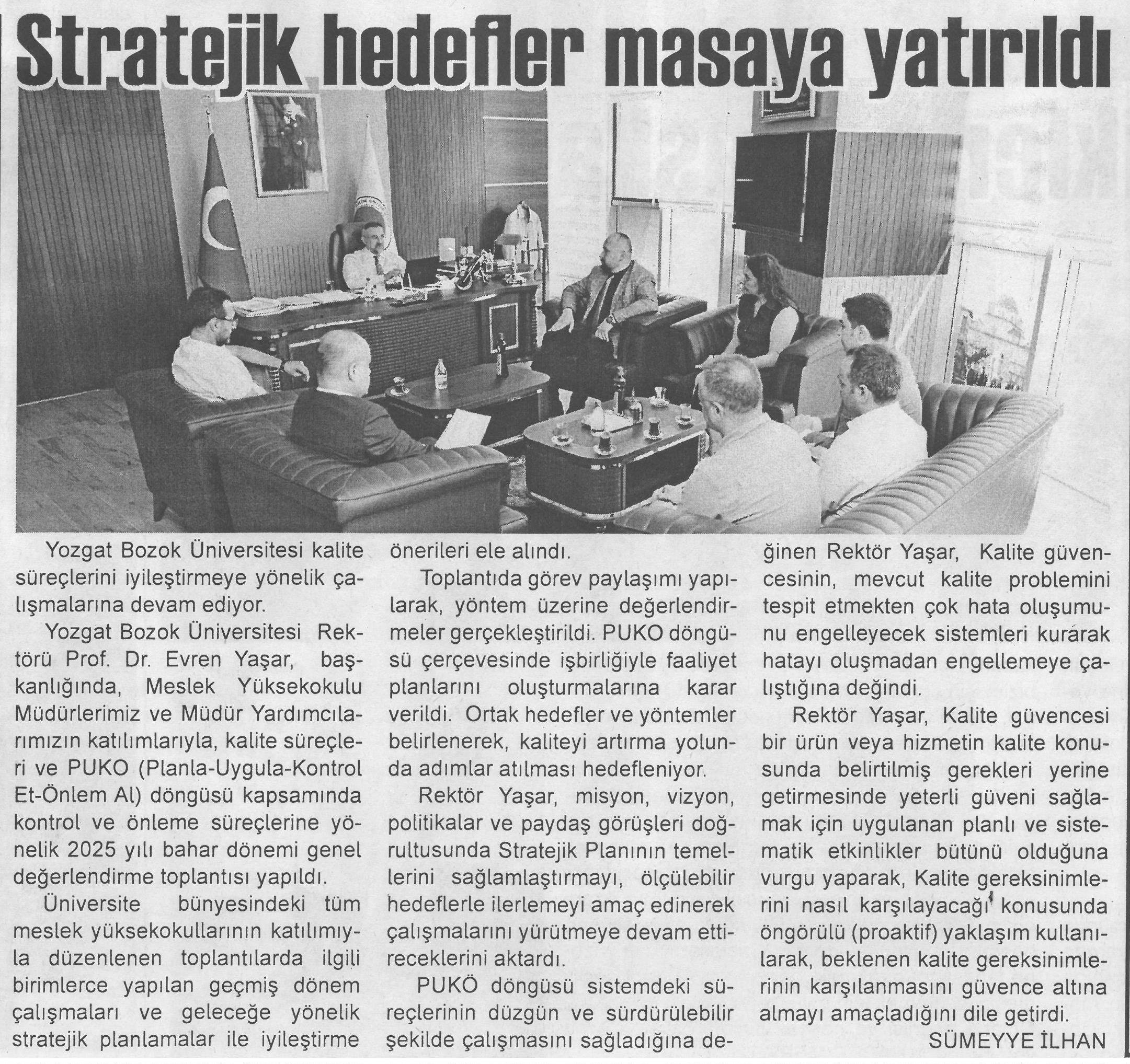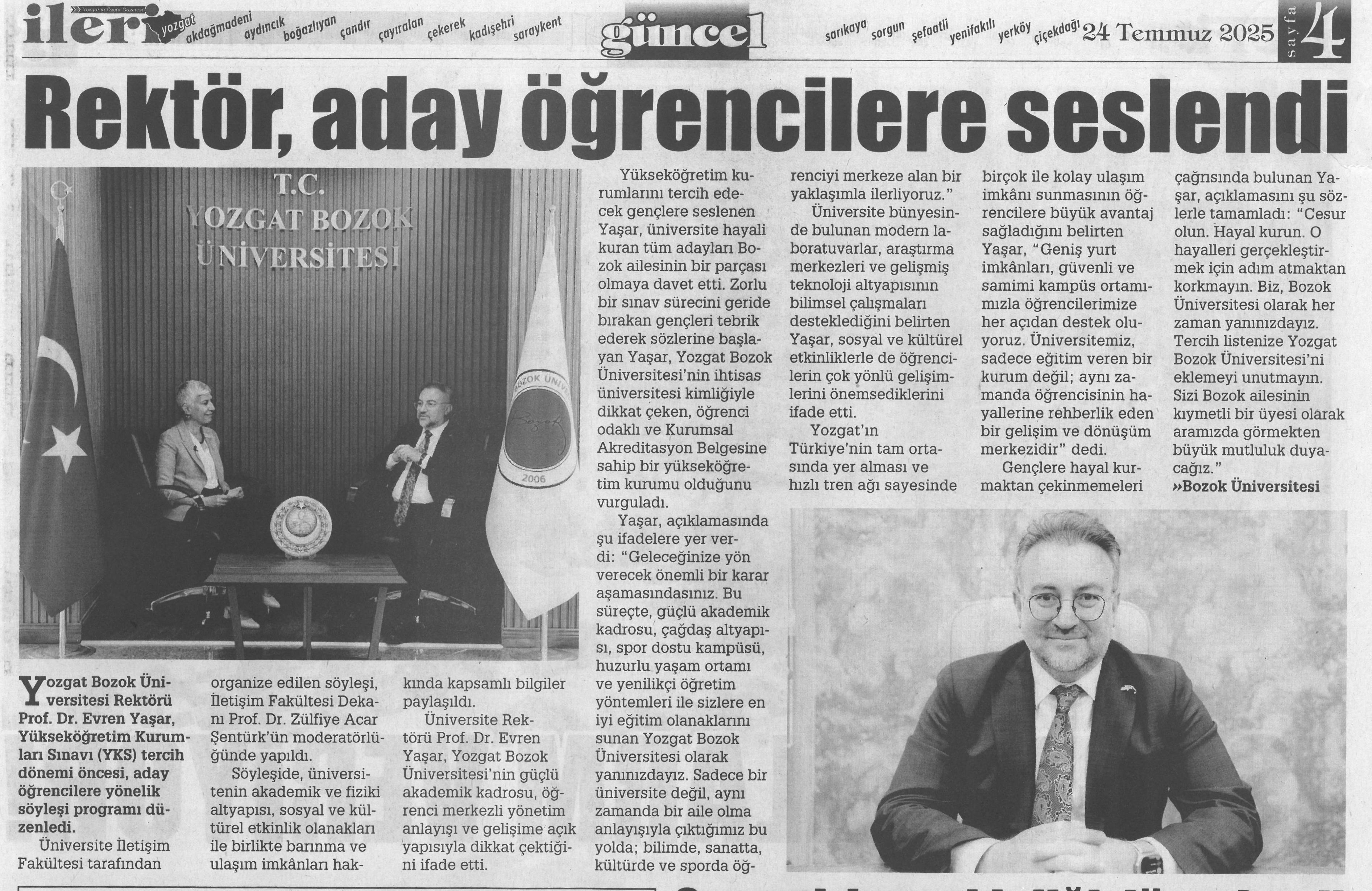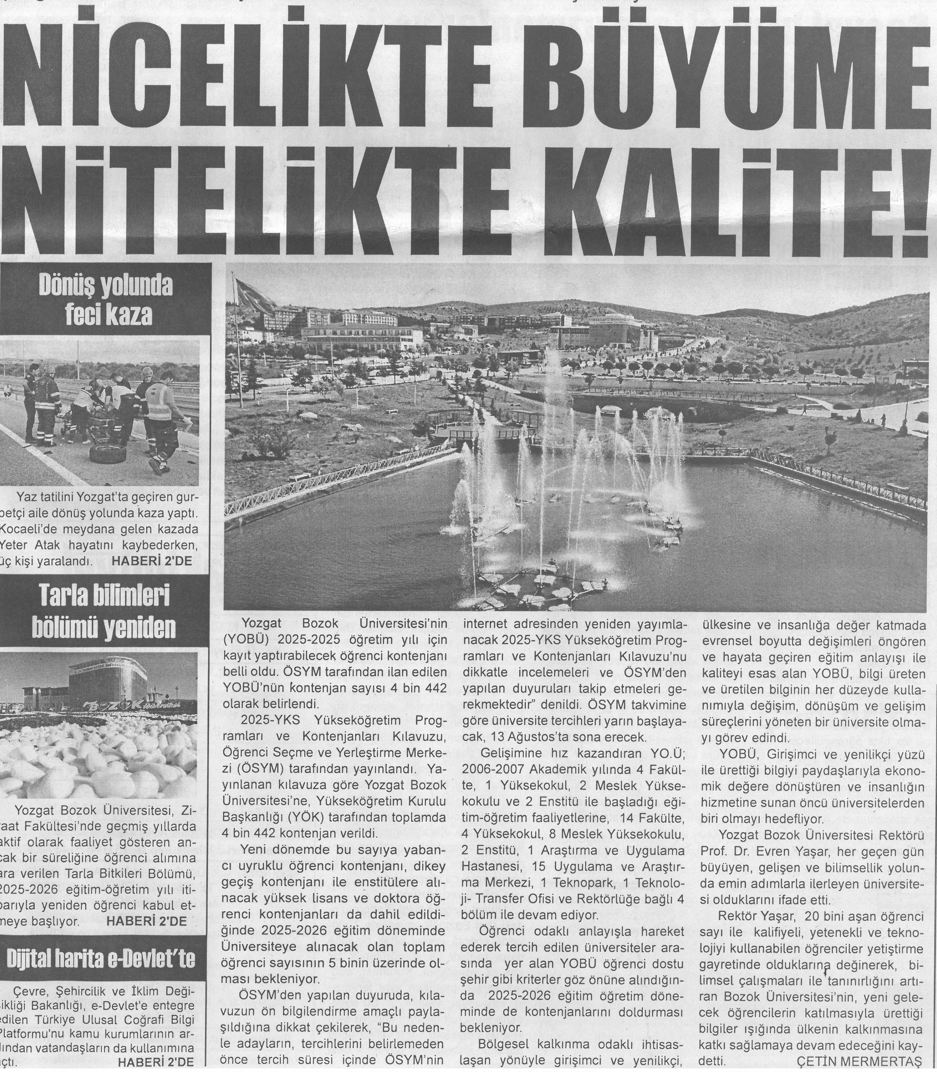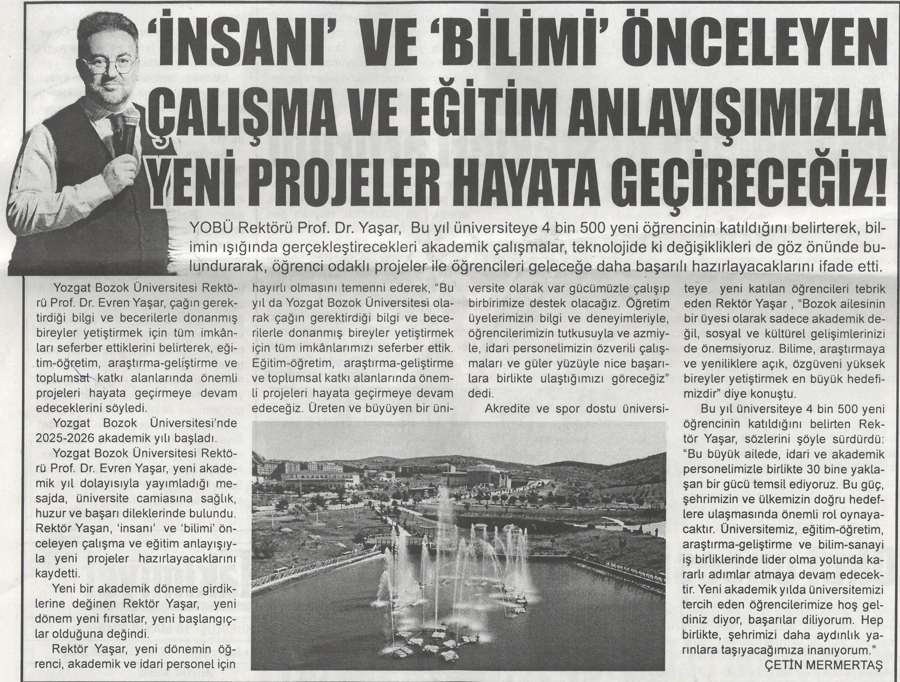 Rektör Prof. Dr. YAŞAR'dan Yozgat'a Müjde Yozgat Merkez Olacak! |