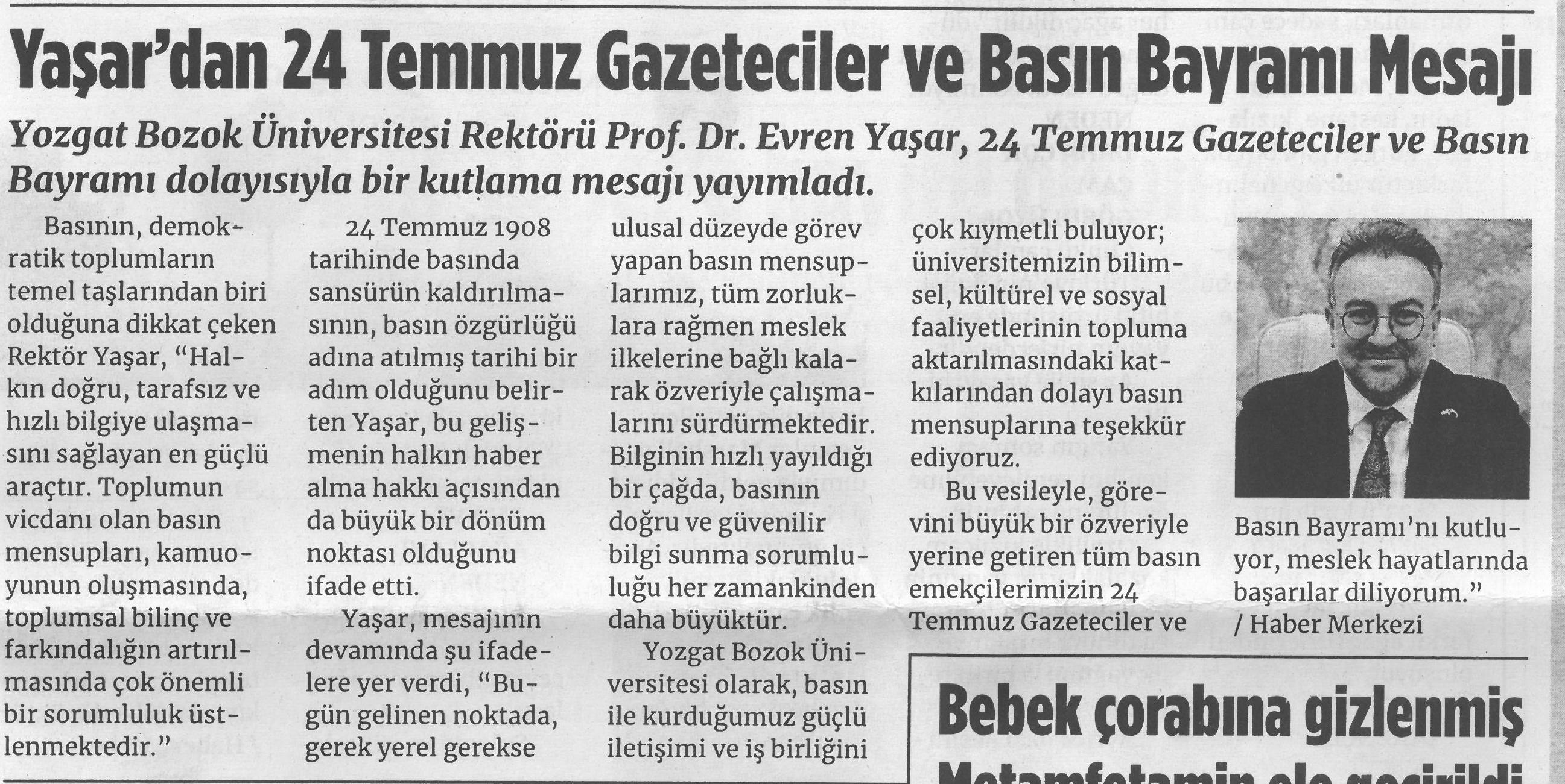 Yaşar'dan 24 Temmuz Gazeteciler ve Basın Bayramı Mesajı |