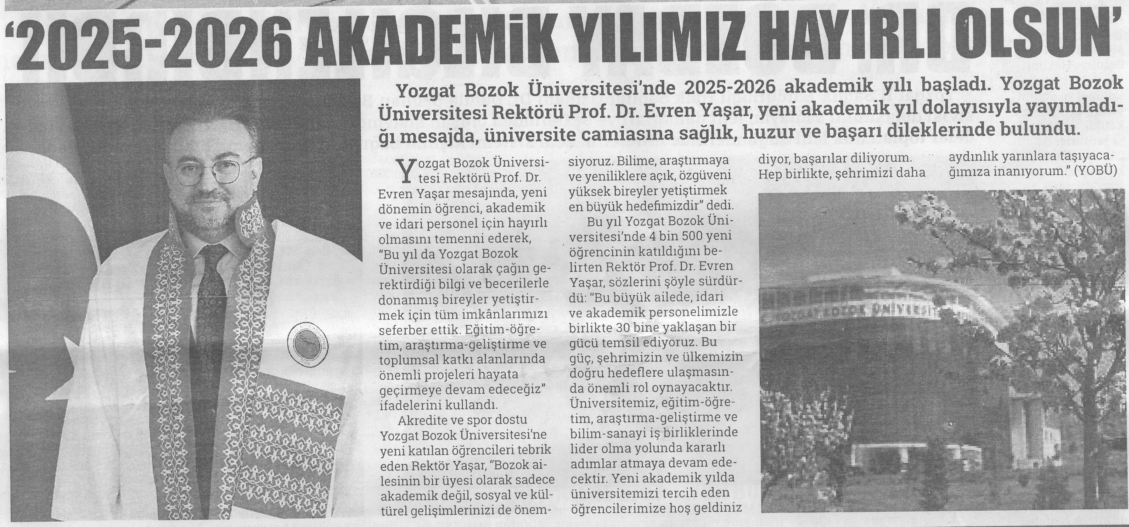 '2025-2026 Akademik Yılımız Hayırlı Olsun' |