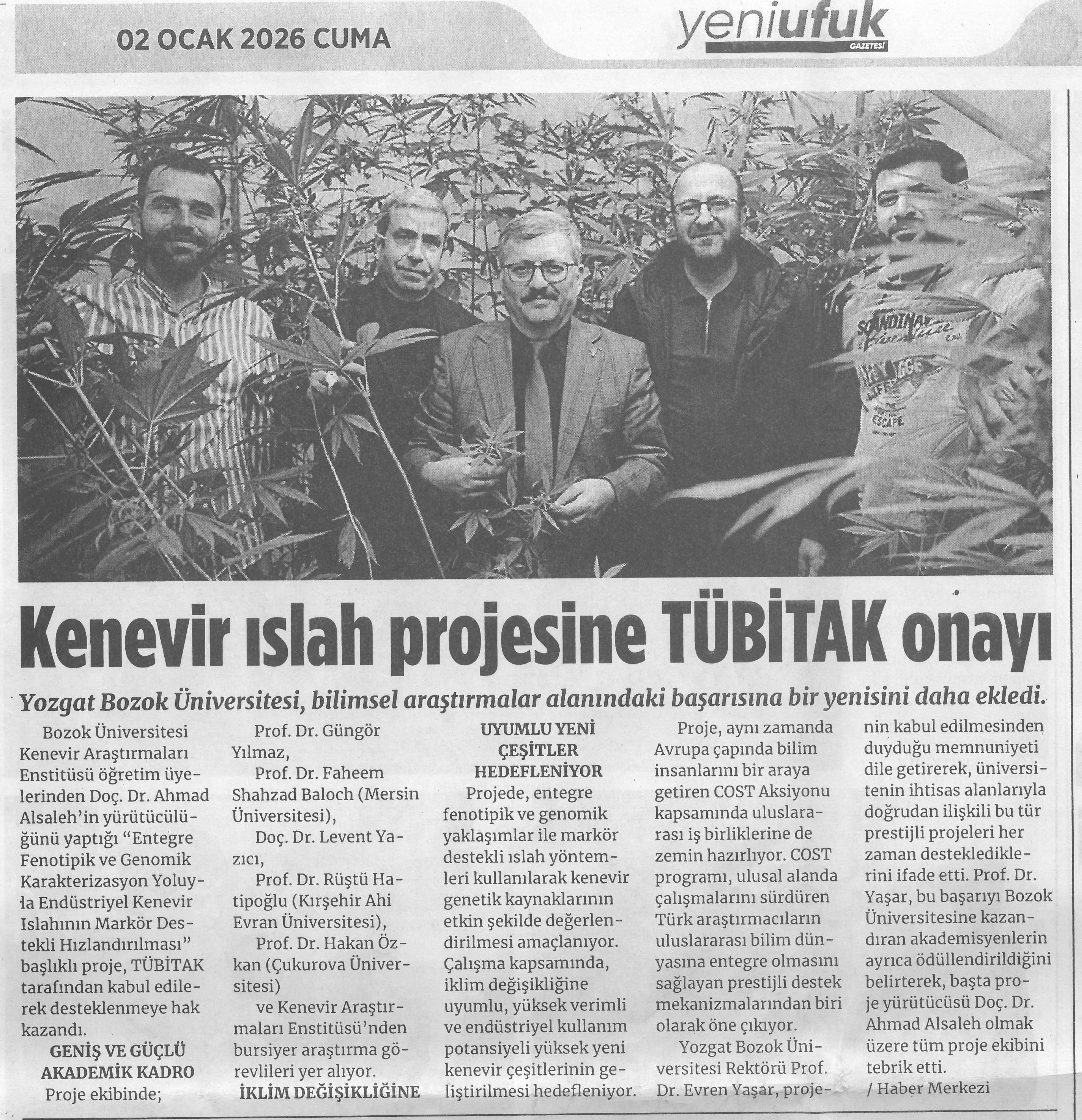 Kenevir Islah Projesine Tübitak Onayı