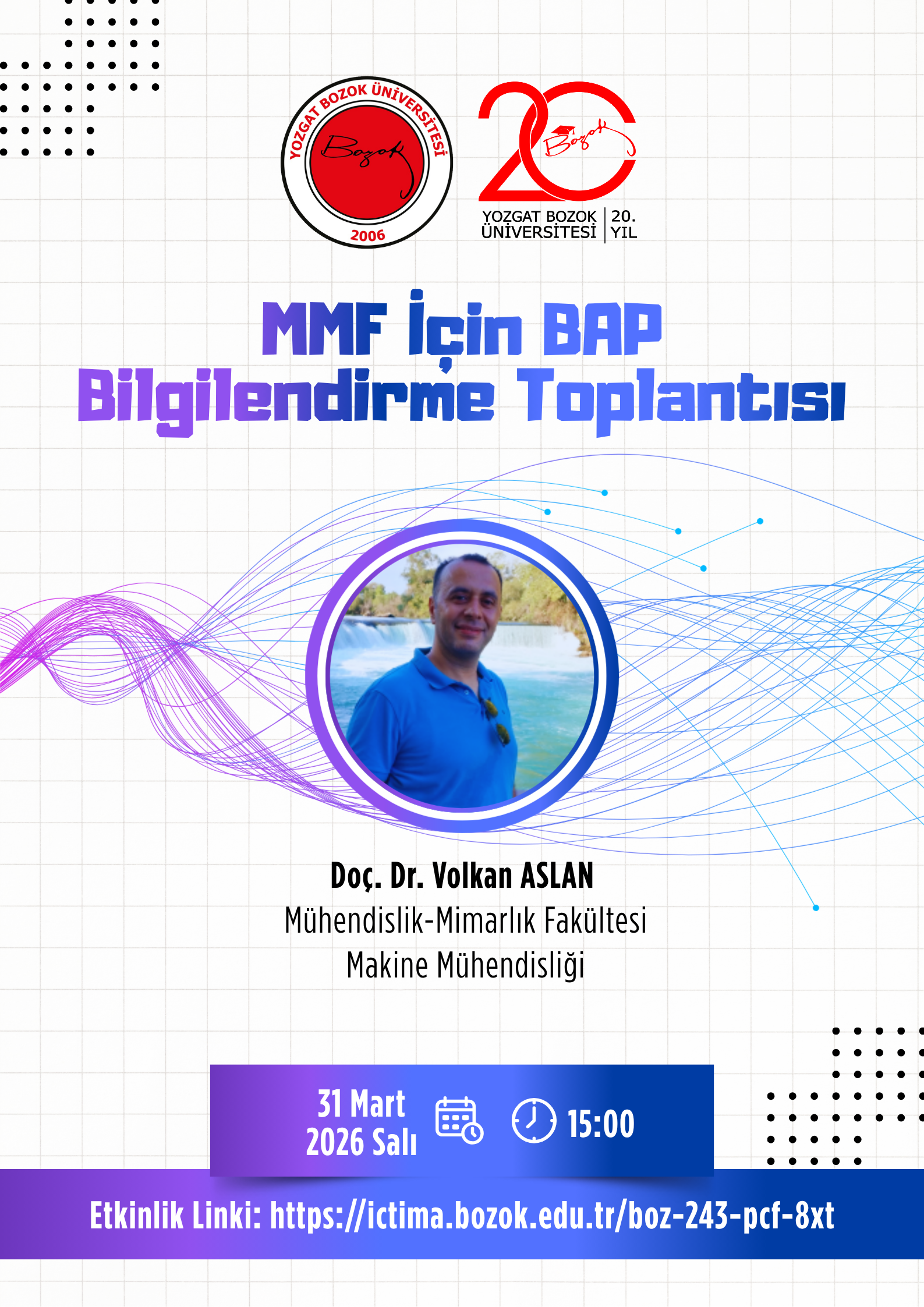 MÜHENDİSLİK MİMARLIK FAKÜLTESİ İÇİN 31.03.2026 TARİHİNDE DÜZENLENECEK OLAN BAP PROJE EĞİTİMİ İCTİMA EĞİTİM LİNKİ İÇİN TIKLAYINIZ.