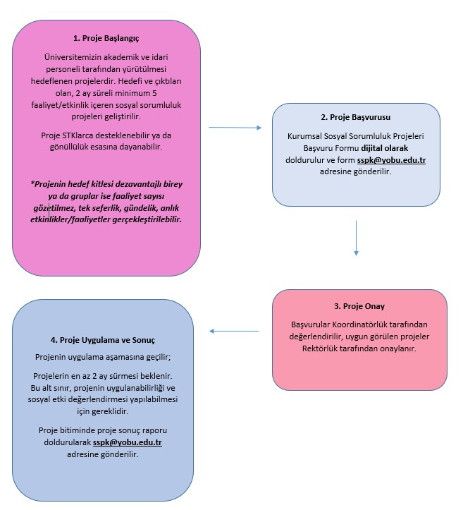 Üniversitenin kurumsal bilgi birikimini ve uzmanlığını doğrudan topluma aktarmayı hedefleyen, akademisyenler ve idari personel tarafından yürütülen planlı ve raporlanabilir projeleri içerir. Aşamaları izleyerek başvuru yapabilirsiniz. Başvuru formuna ulaşmak için tıklayınız. Sonuç formuna ulaşmak için tıklayınız.