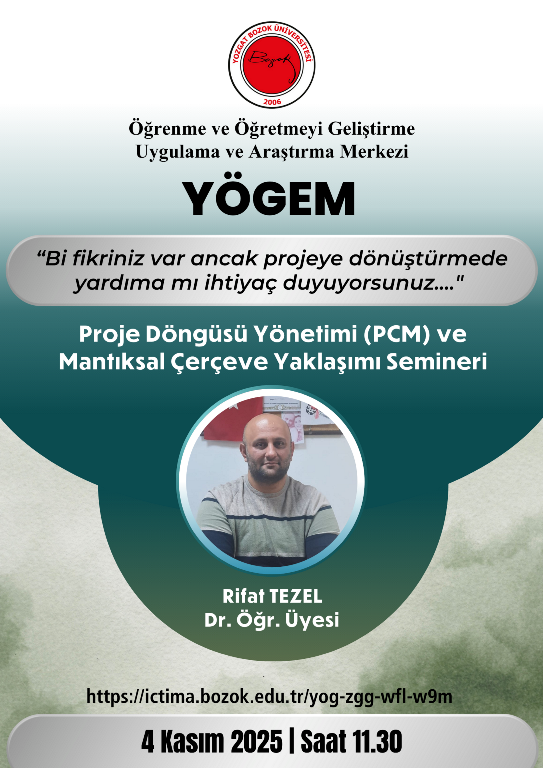Proje Döngüsü Yönetimi (PCM) ve Mantıksal Çerçeve Yaklaşımı kapsamında "Bi fikriniz var ancak projeye dönüştürmede yardıma mı ihtiyaç duyuyorsunuz?" konulu seminer tamamlanmıştır. Semineri yeniden izlemek için TIKLAYINIZ
