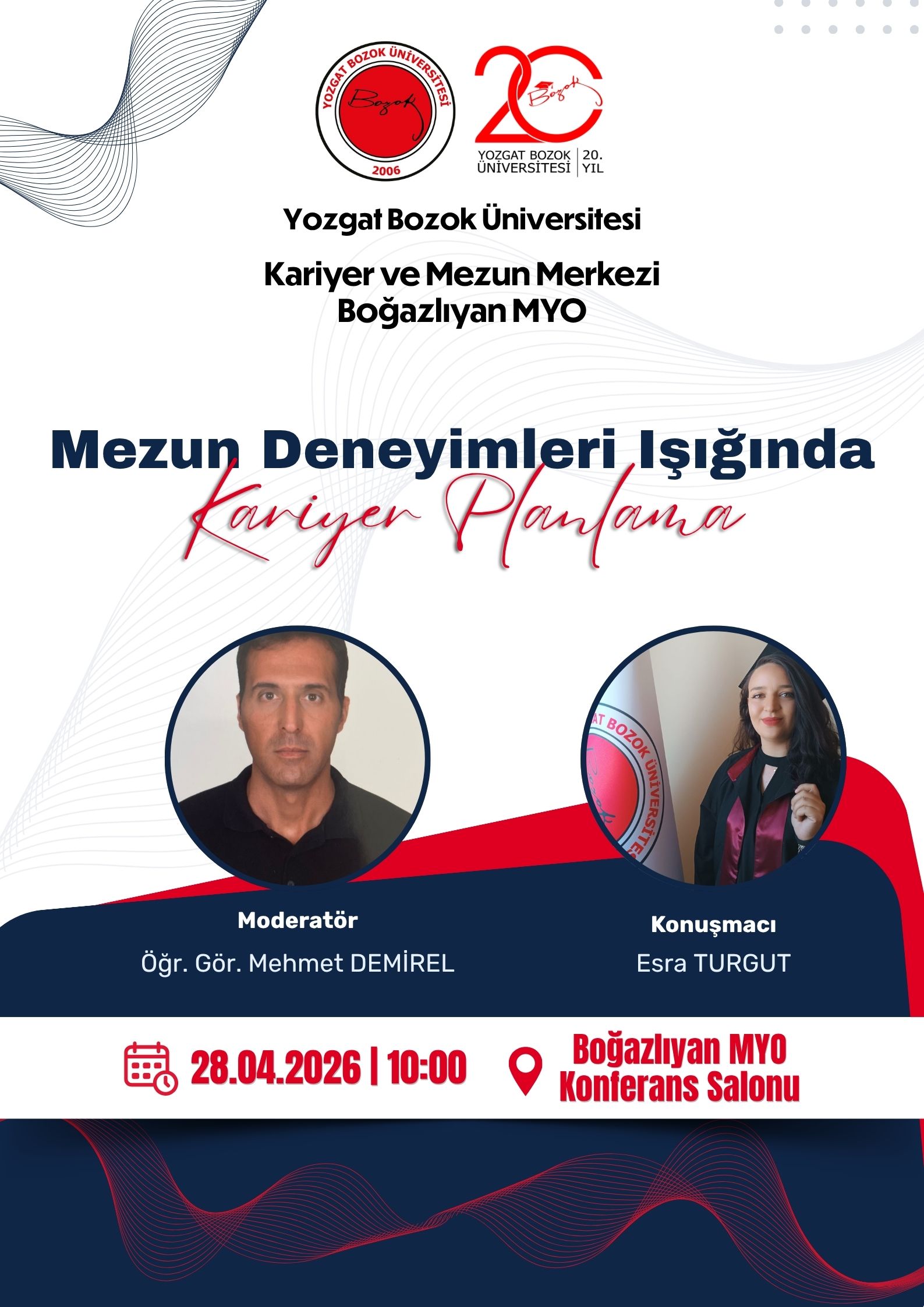 Etkinlik Detayı 28 Nisan Boğazlıyan MYO Mezun Buluşmaları: Mezun Deneyimleri Işığında Kariyer Planlama
