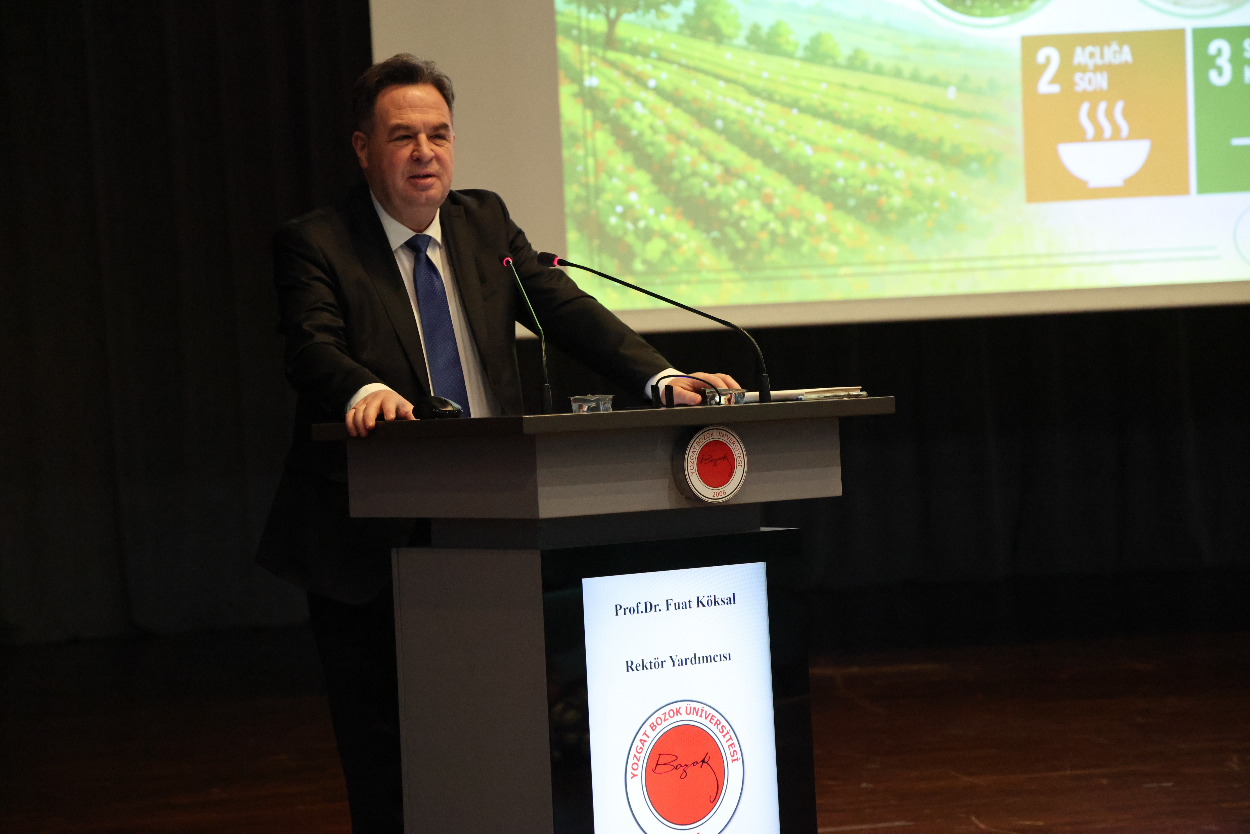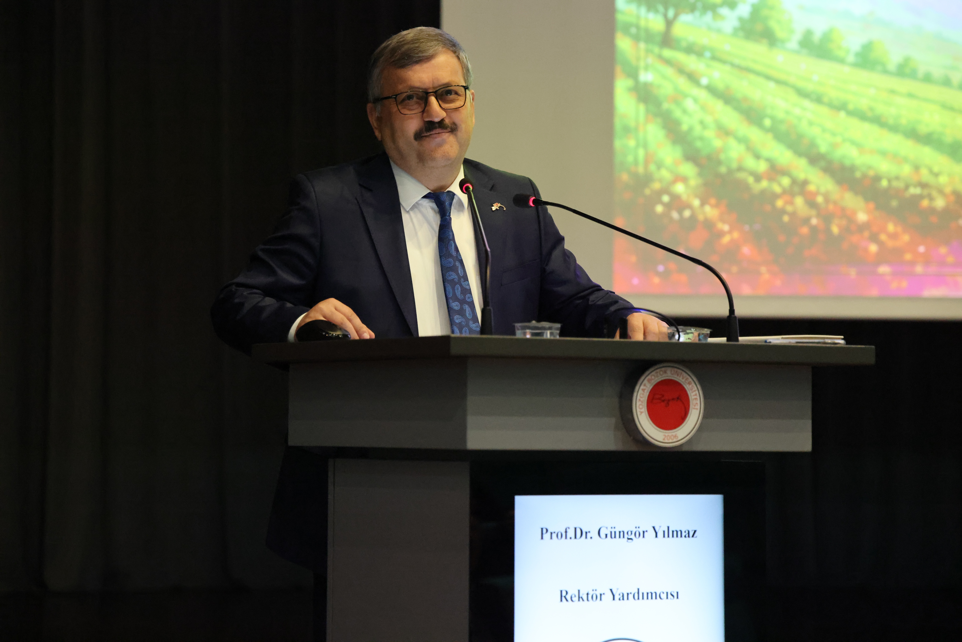 Üniversitemiz Rektör Yardımcısı Prof. Dr. Güngör Yılmaz, Sürdürülebilir Tarım Çalıştayı’nda yaptığı konuşmada, sürdürülebilirliğin günümüzün en önemli konularından biri olduğunu vurguladı. Prof. Dr. Yılmaz, sürdürülebilirlik bilincinin topluma kazandırılmasının büyük önem taşıdığını belirterek, bu alanda yapılacak bilimsel araştırmalar ve veri üretiminin politika yapıcılara yol gösterici olacağını ifade etti.