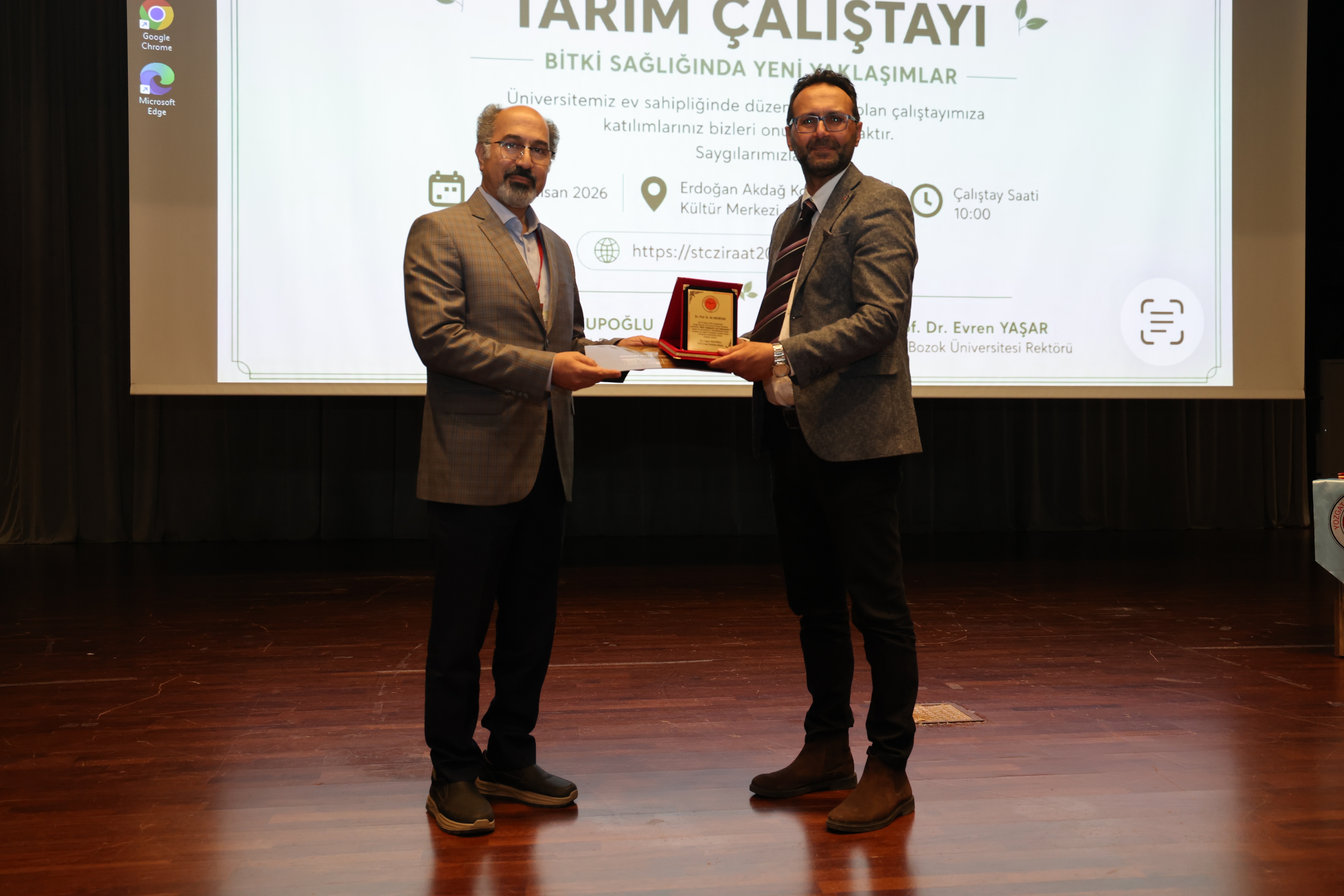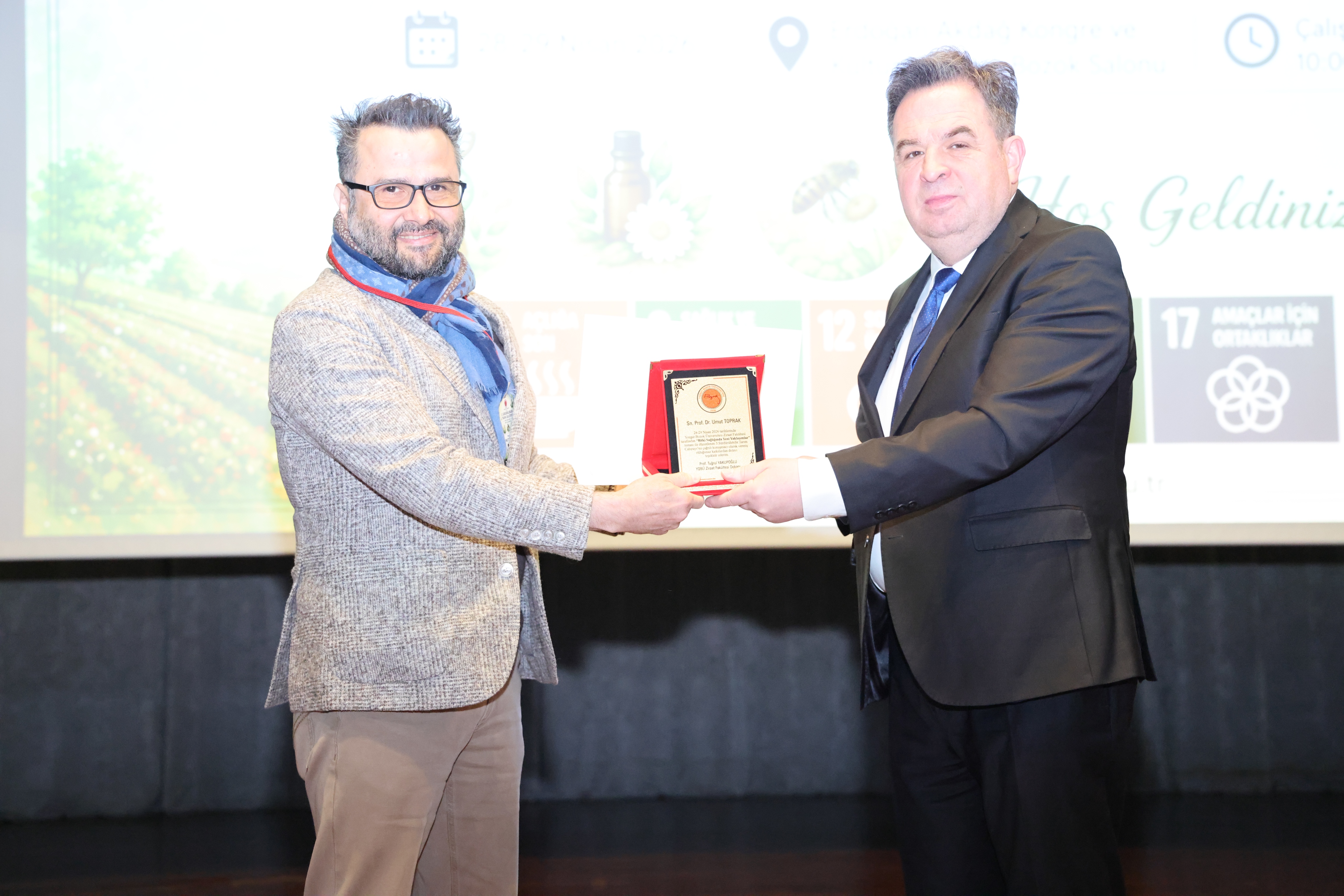 Üniversitemiz Rektör Vekili Prof. Dr. Fuat Köksal ise konuşmasında, tarımın yalnızca gıda üretimi değil, aynı zamanda ekonomik kalkınmayı destekleyen ve çevresel dengeyi koruyan stratejik bir alan olduğunu belirtti. Bitki sağlığının tarımsal üretimin temel unsurlarından biri olduğunu vurgulayan Prof. Dr. Köksal, üretim yöntemlerinin de en az üretim miktarı kadar önemli olduğunu ifade ederek, “Sağlıklı toprak ve sağlıklı gıda, sağlıklı toplum demektir.” dedi.
