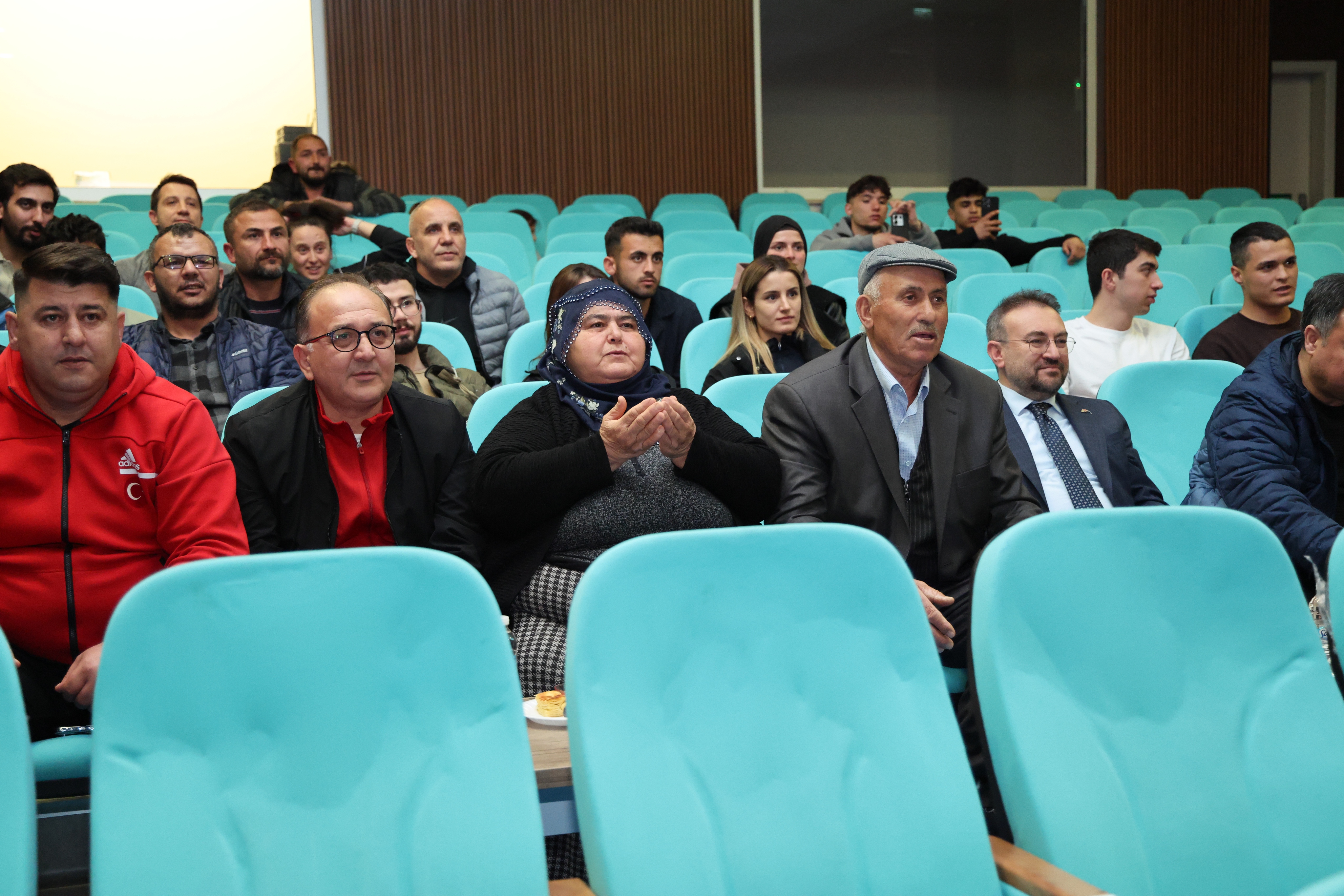 Türkiye Yüzyılı Konferans Salonu’ndaki final heyecanını, Üniversitemiz Rektörü Prof. Dr. Evren Yaşar, Yozgat il protokolü, Milli Güreşçimizin annesi Sevgi Kayaalp, babası Kelami Kayaalp, abisi Serdar Kayaalp, akademisyenler, idari personel ve öğrenciler heyecanla takip etti.