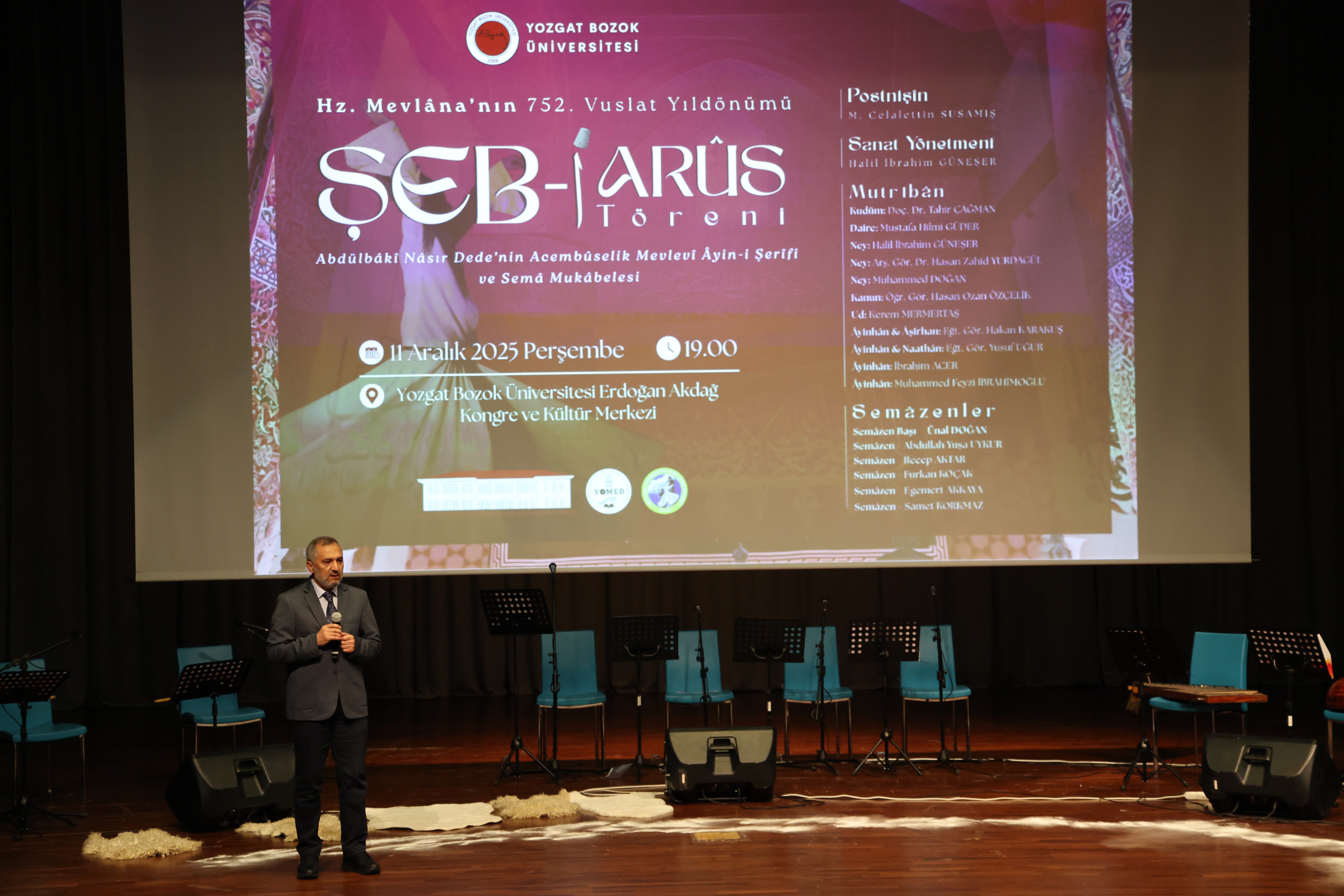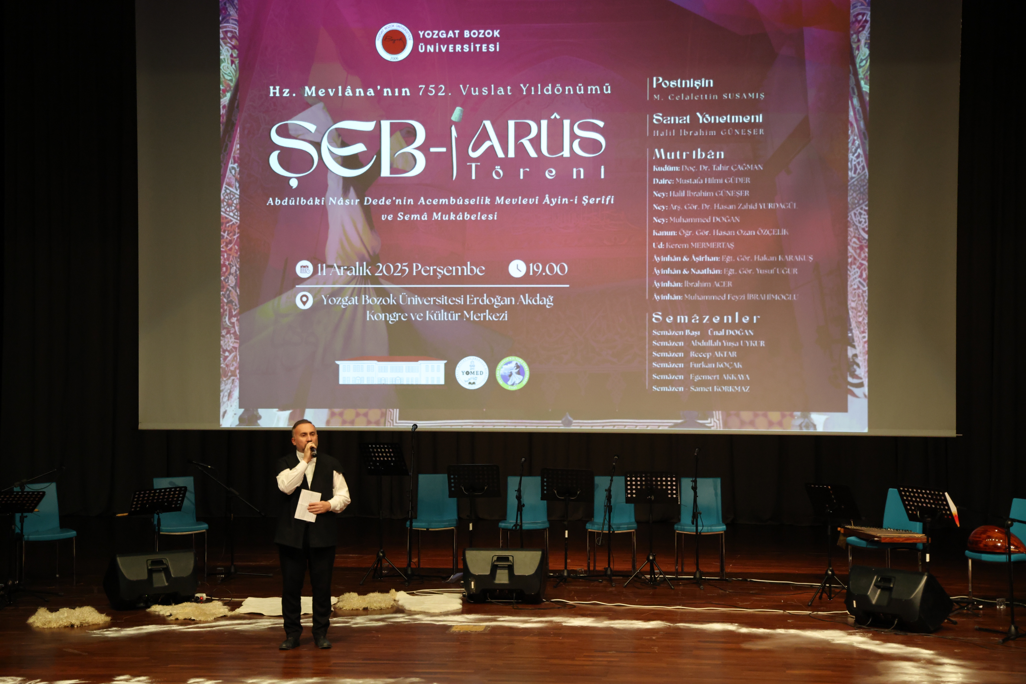 Üniversitemiz Ekmeleddin İhsanoğlu Tarih ve Kültür Uygulama ve Araştırma Merkezi (EKİTKAM), Yozgat Musiki ve Edebiyat Derneği (YOMED) ile Sivas Mevlana Tasavvuf Kültürü ve Sema Derneği iş birliğinde Hz. Mevlana’nın 752. Vuslat Yıldönümü dolayısıyla Şeb-i Arûs Töreni düzenlendi.
