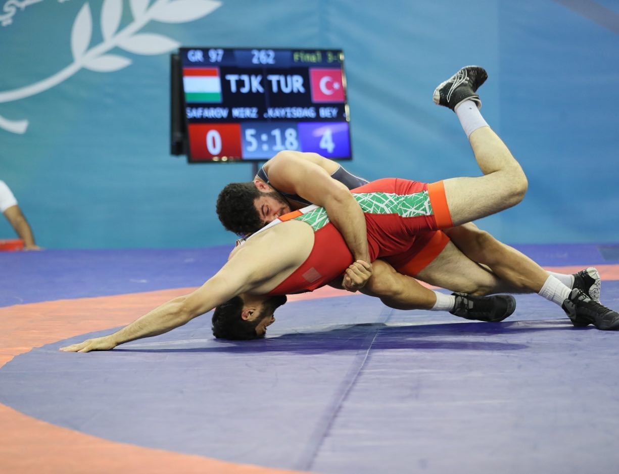 Grekoromen güreş kategorisinde düzenlenen yarışmalarda ise 97 kilogramda mindere çıkan Üniversitemiz Spor Bilimleri Fakültesi Öğrencisi, milli sporcu Beytullah Kayışdağ, Tacikistanlı rakibi Safarov Mirzoamin’i (8-0) yenerek bronz madalyanın sahibi oldu.