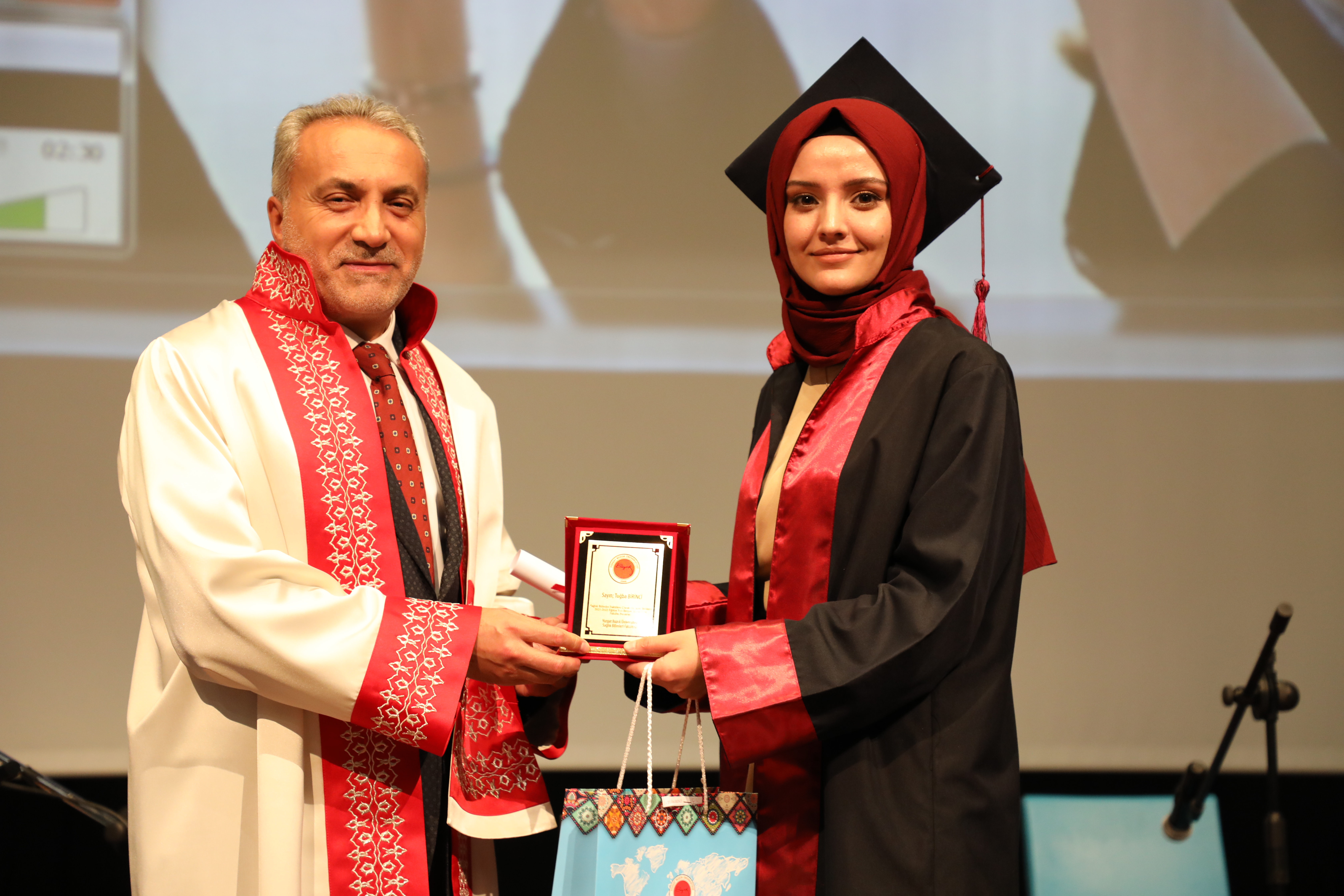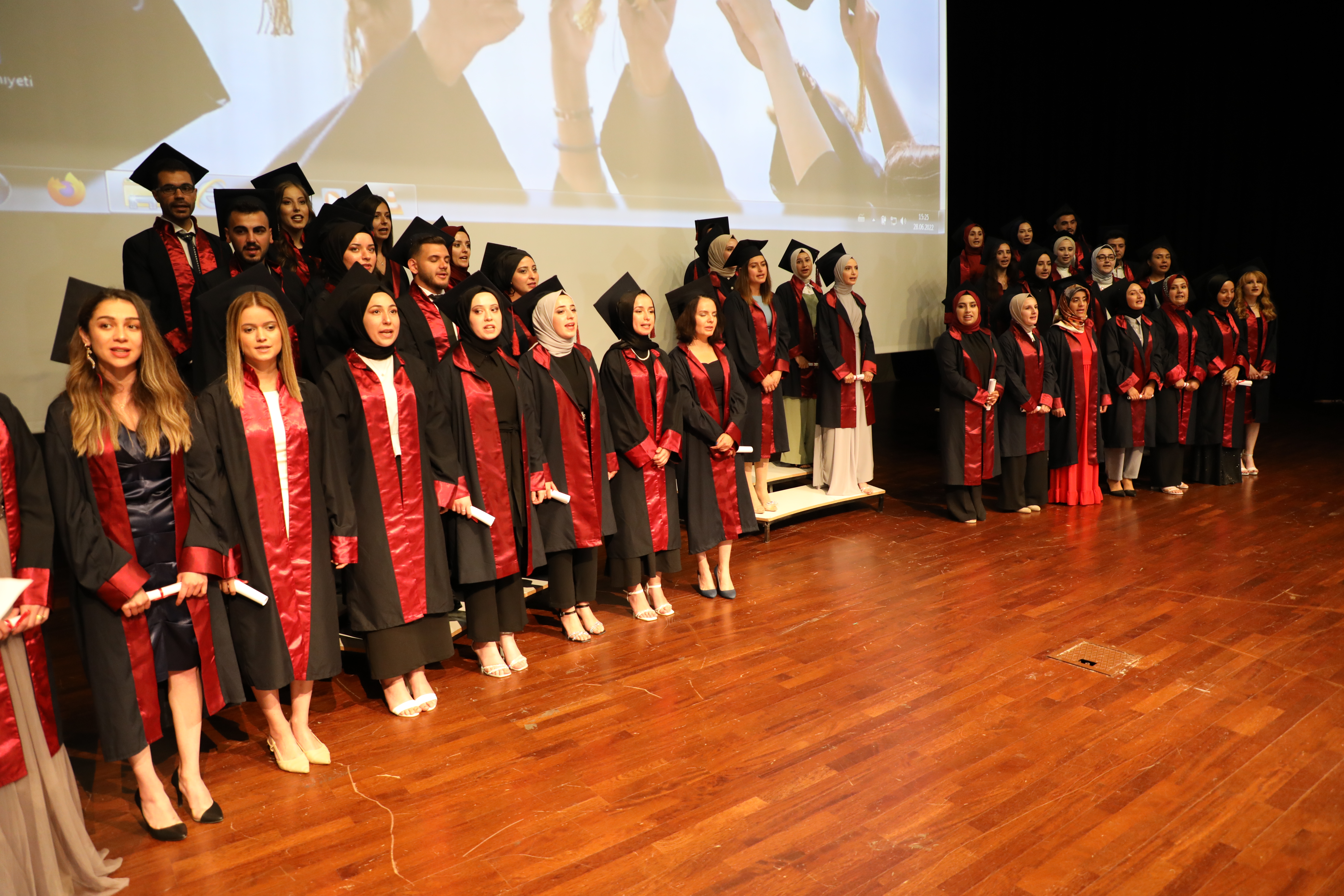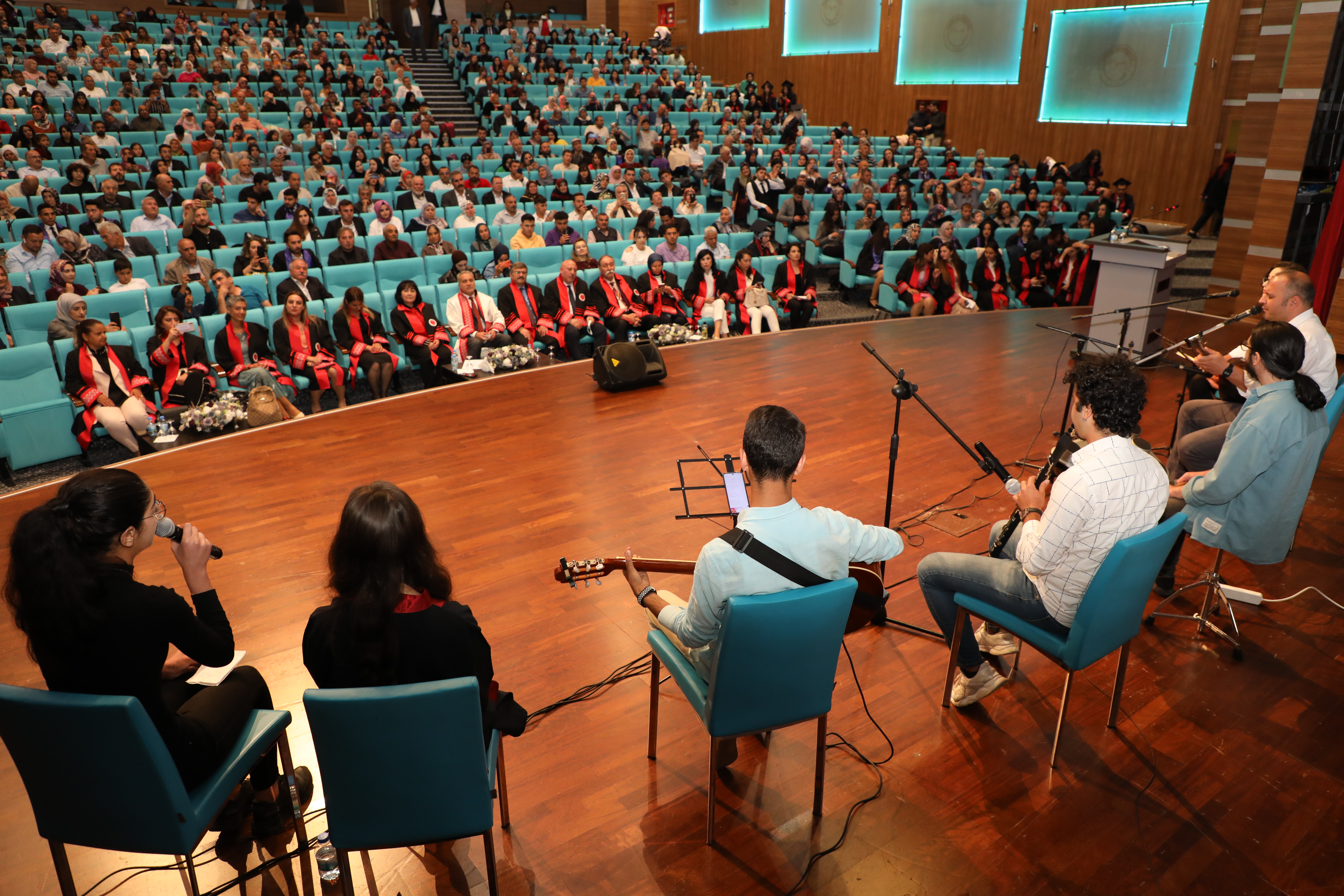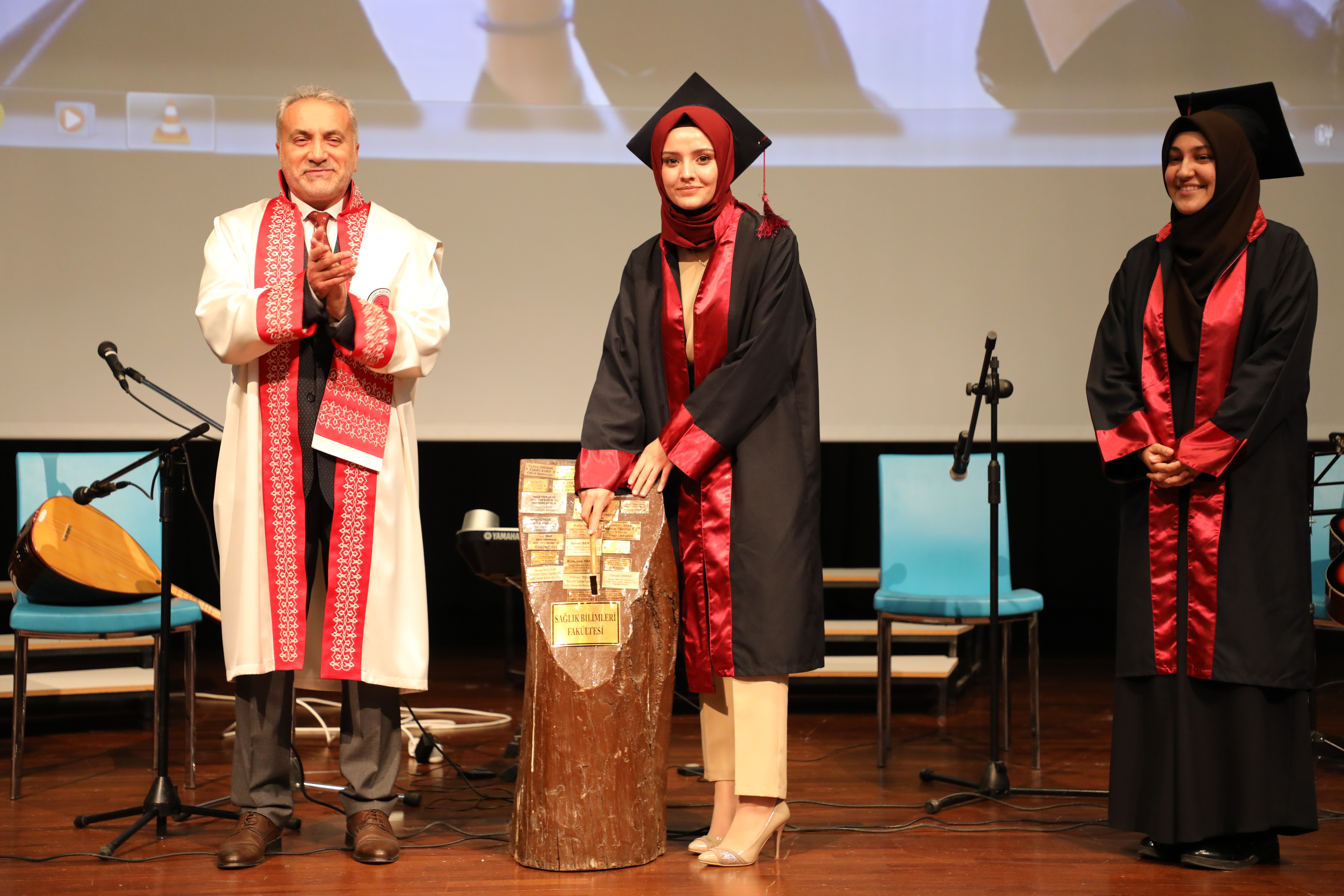 Saygı duruşu ve İstiklal Marşı ile başlayan mezuniyet töreni, Fakülte birincileri Tuğba Birinci ve Hatice Kevser Çankaya’nın mezun öğrenciler adına yaptığı konuşma ile devam etti.