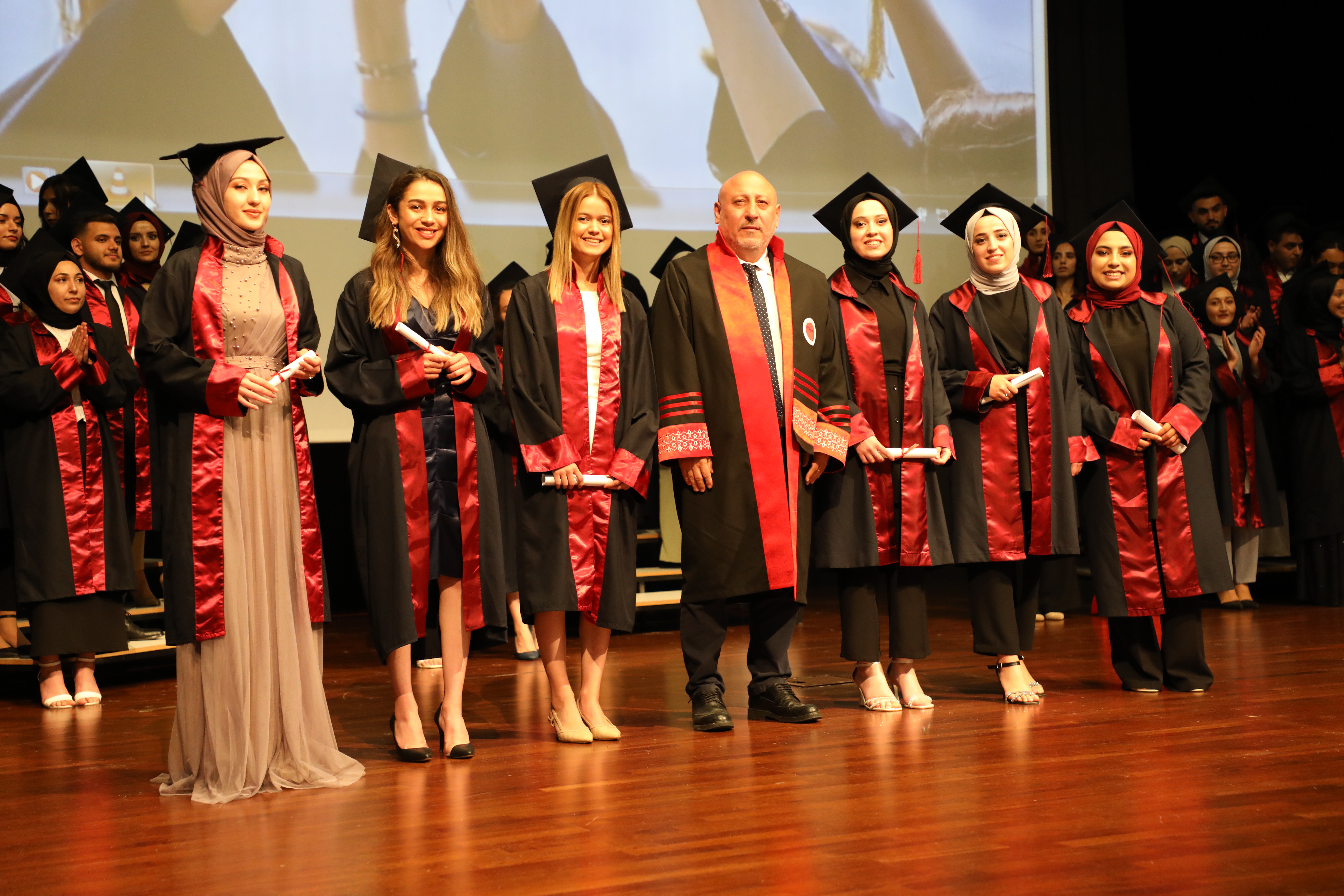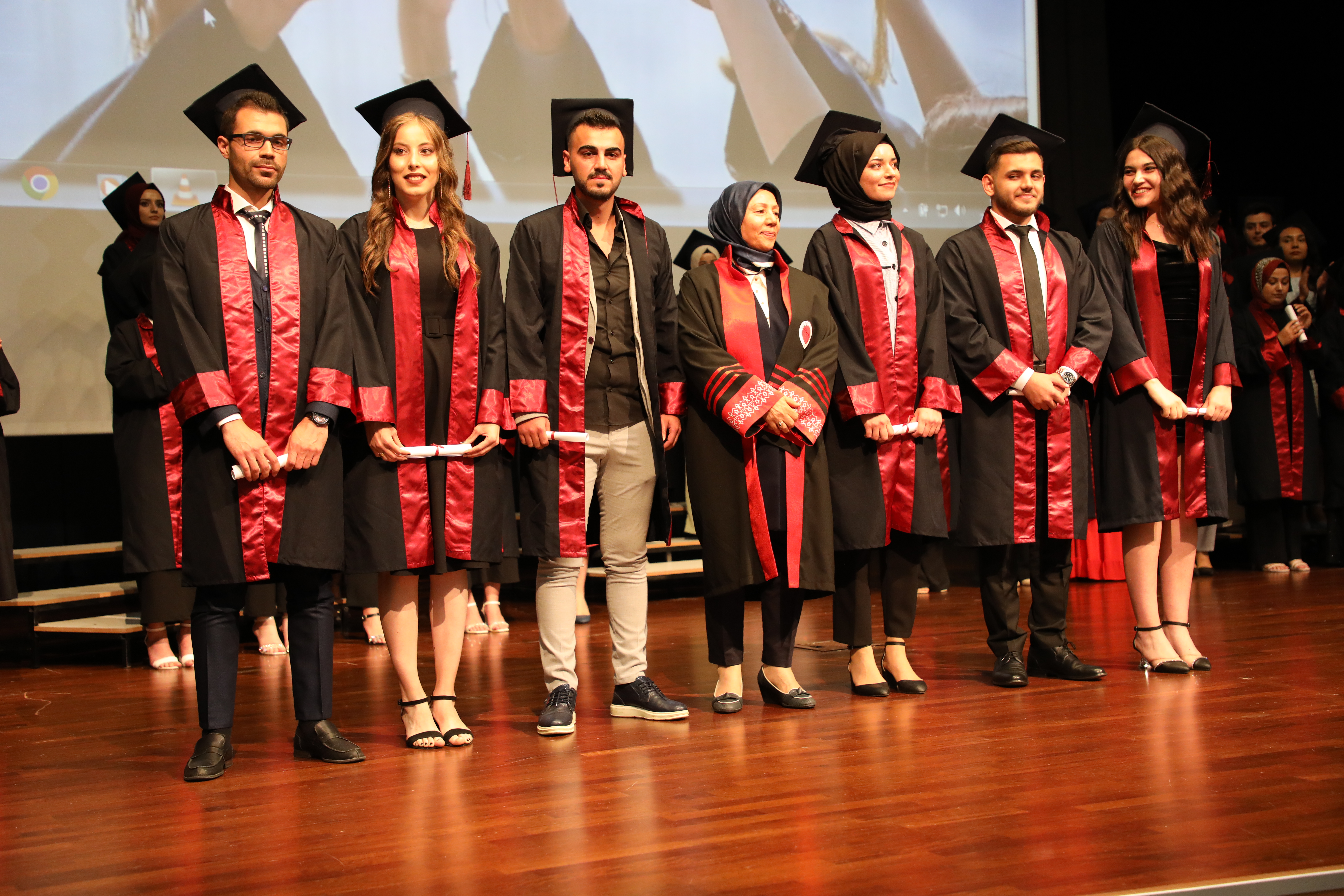 Konuşmaların ardından dereceye giren öğrencilere ödüllerinin verilmesinden sonra mezun öğrenciler kep fırlatarak mezuniyetlerini coşkuyla kutladı.