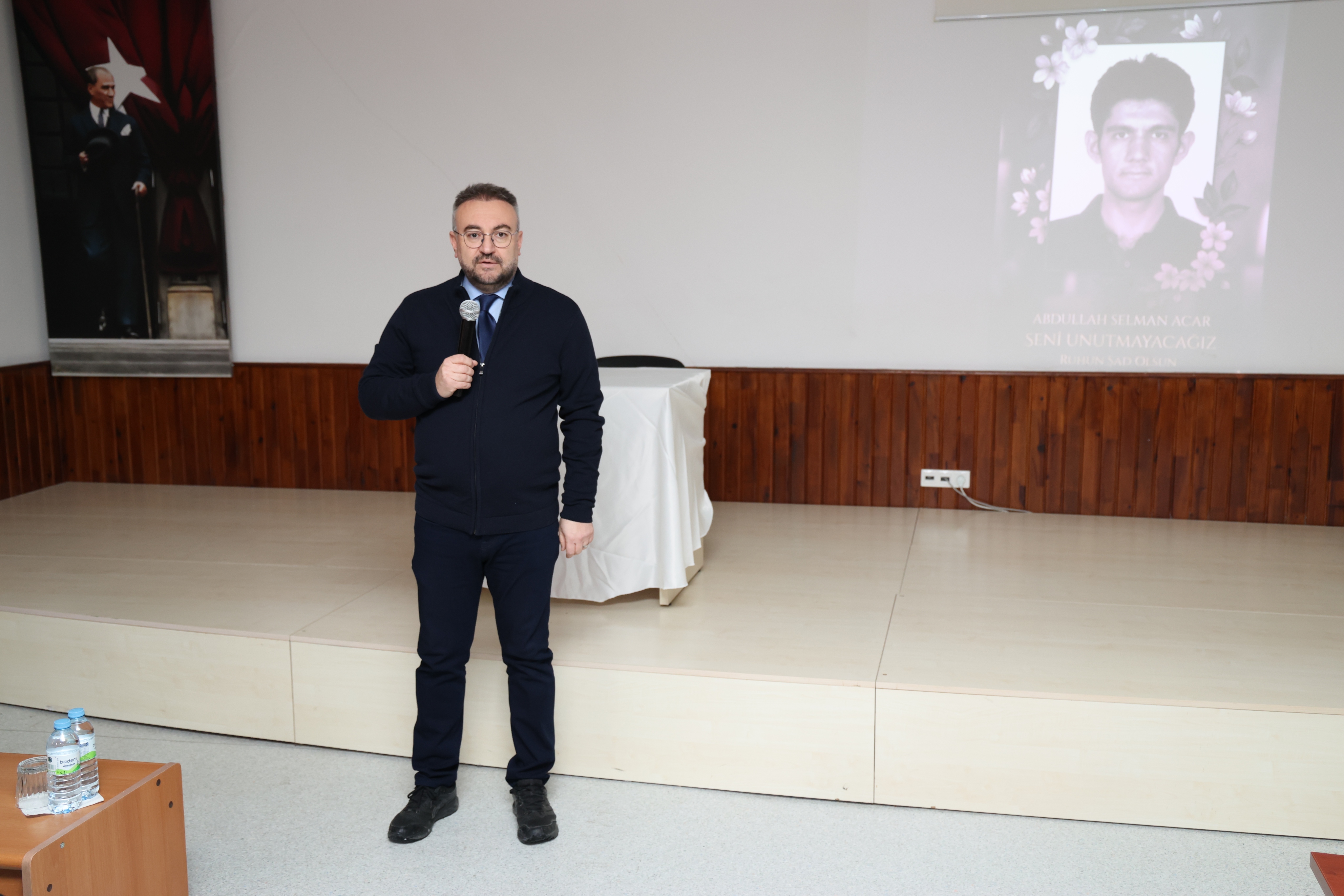 Programda konuşan Üniversitemiz Rektörü Prof. Dr. Evren Yaşar, öğrencimiz Abdullah Selman Acar’ın vefatından duydukları derin üzüntüyü dile getirerek, “Öğrencimize Allah’tan rahmet, ailesine, sevenlerine ve üniversitemiz camiasına başsağlığı diliyorum. Öğrencimizi hiçbir zaman unutmayacağız ve anısını Eğitim Fakültemizde yaşatacağız.” ifadelerini kullandı.