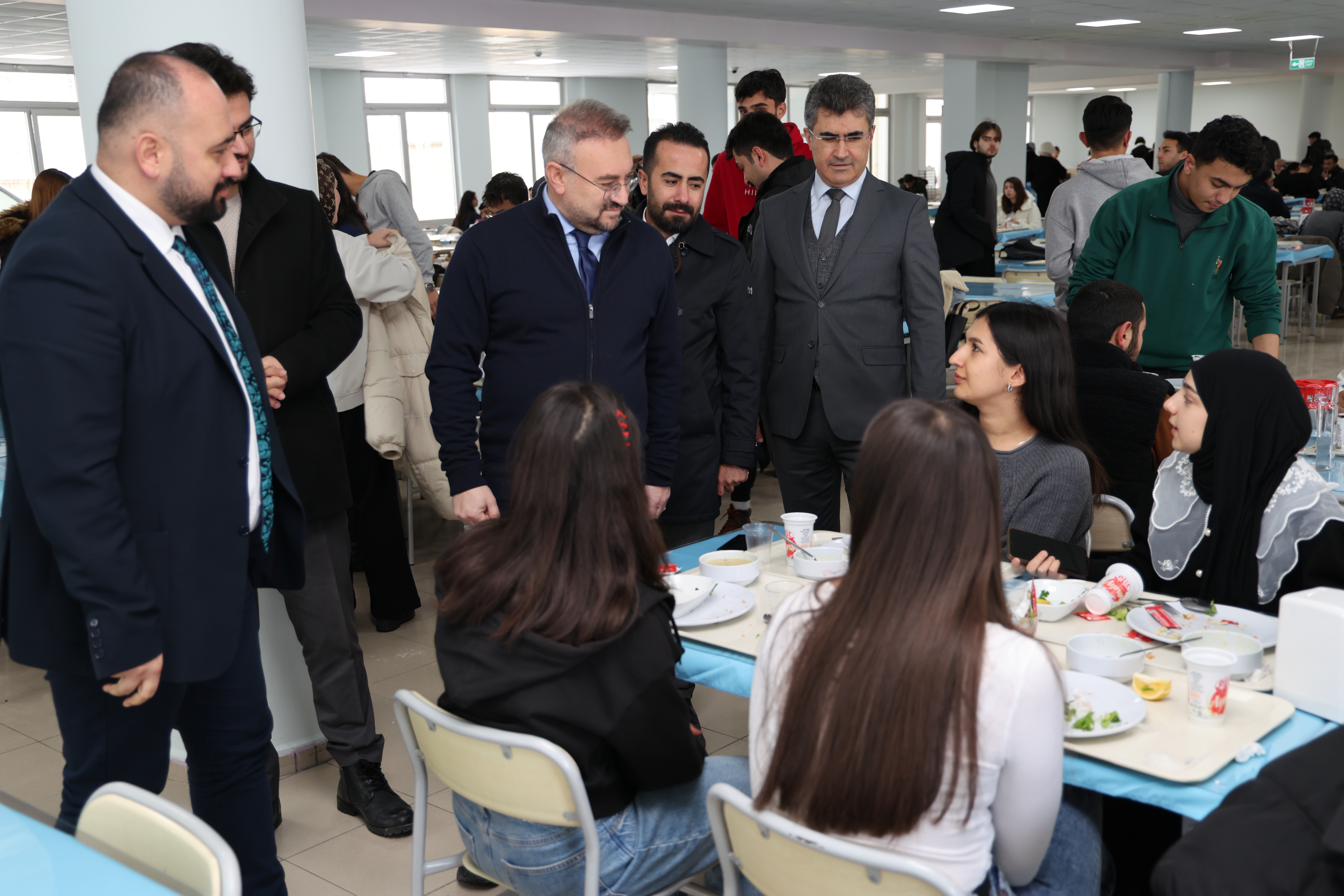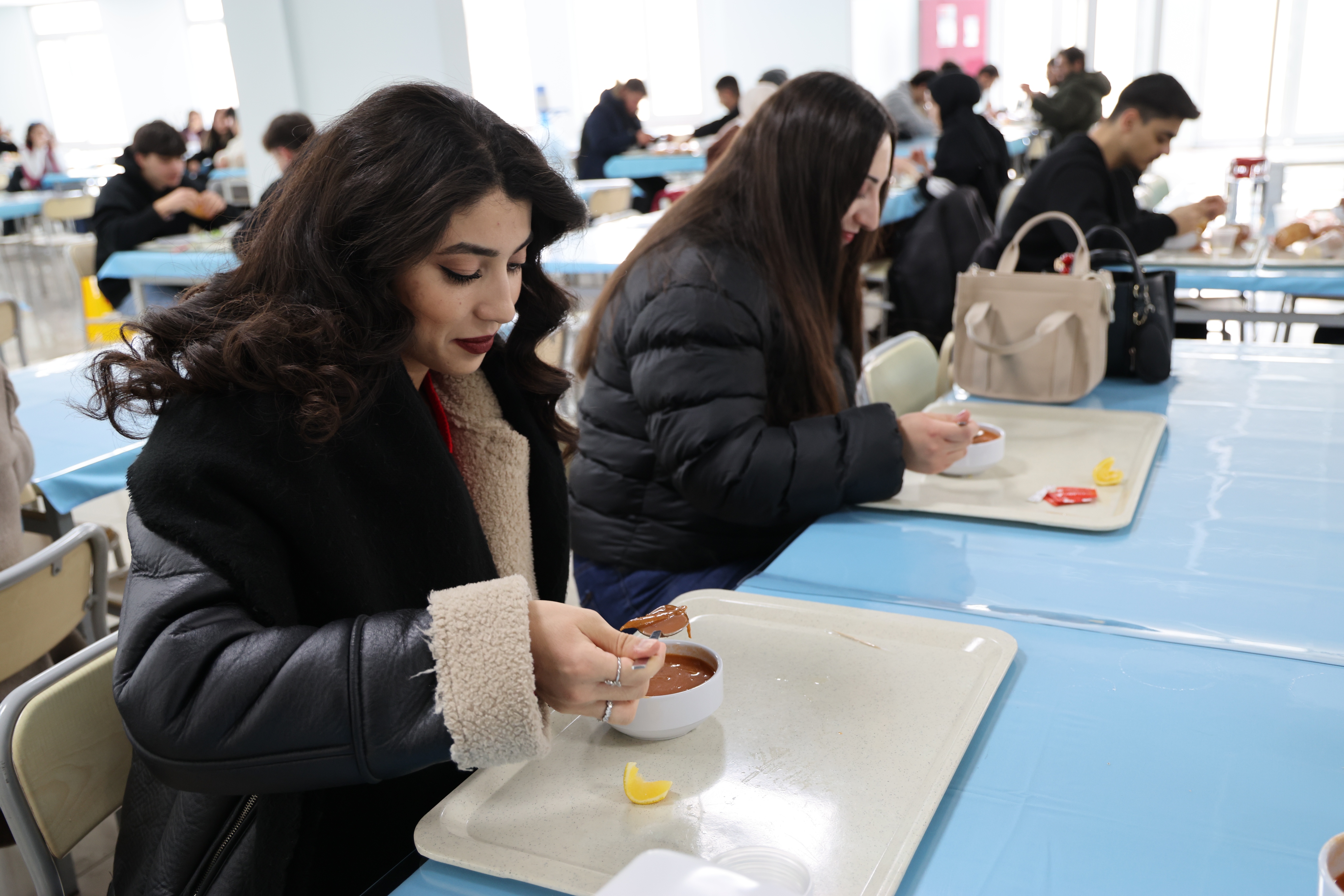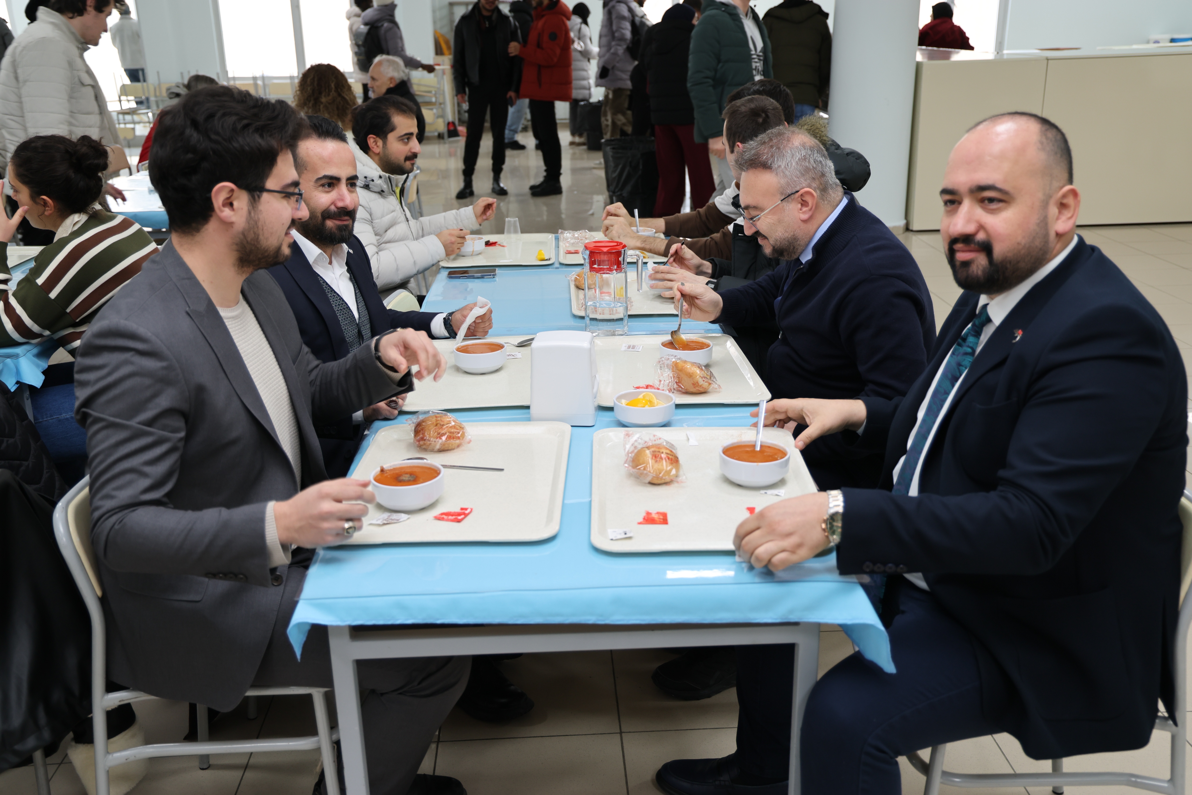 Merkezi Yemekhane’de gerçekleştirilen etkinlikte Üniversitemiz Rektörü Prof. Dr. Evren Yaşar ve Genel Sekreterimiz Doç. Dr. Mustafa Kocakaya, öğrencilerle bir araya geldi. Öğrencilerle sohbet edip çorba içen Rektörümüz, final sınavları sürecinde öğrencilere başarılar diledi.