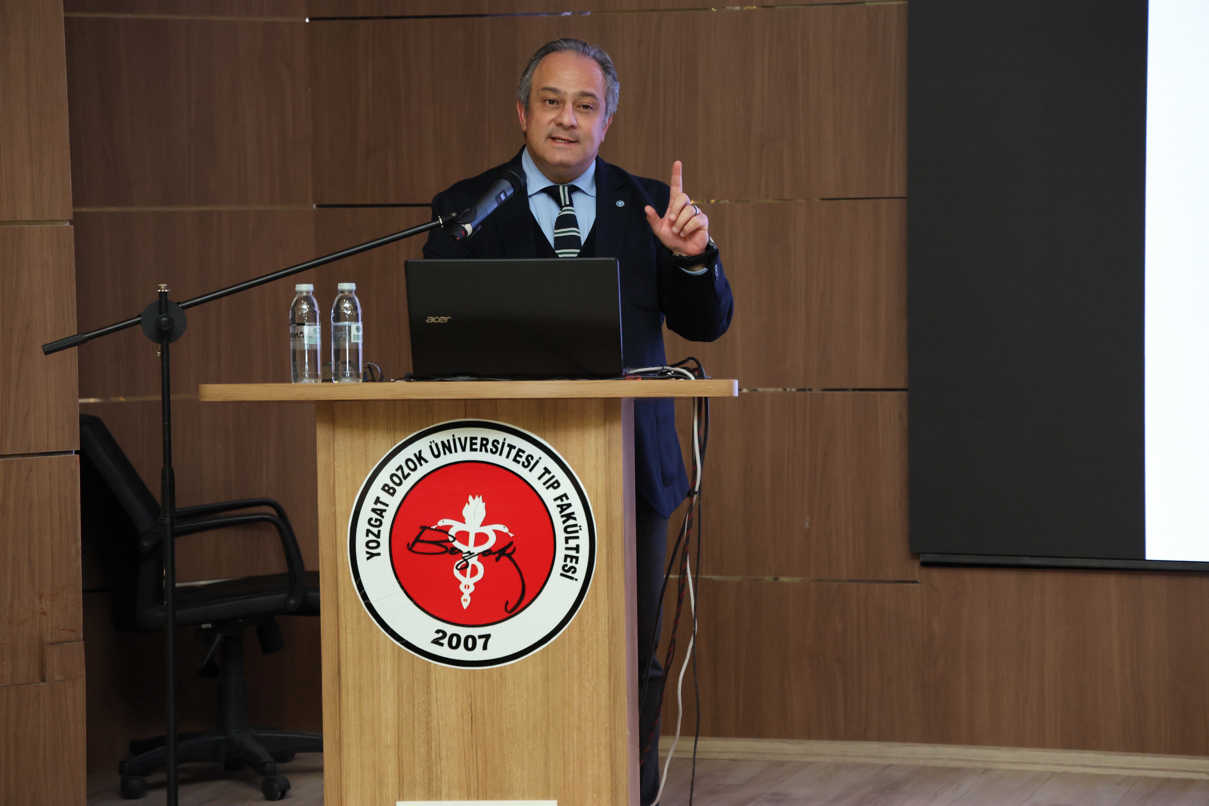 Üniversitemiz Tıp Fakültesi Konferans Salonu’nda gerçekleştirilen programa, Üniversitemiz Rektörü Prof. Dr. Evren Yaşar, Rektör Yardımcısı Prof. Dr. Yusuf Hıdır, Üniversitemiz Tıp Fakültesi Dekanı Prof. Dr. Mustafa Fatih Erkoç, Üniversitemiz Genel Sekreteri Doç. Dr. Mustafa Kocakaya, akademisyenler ve öğrenciler katıldı.