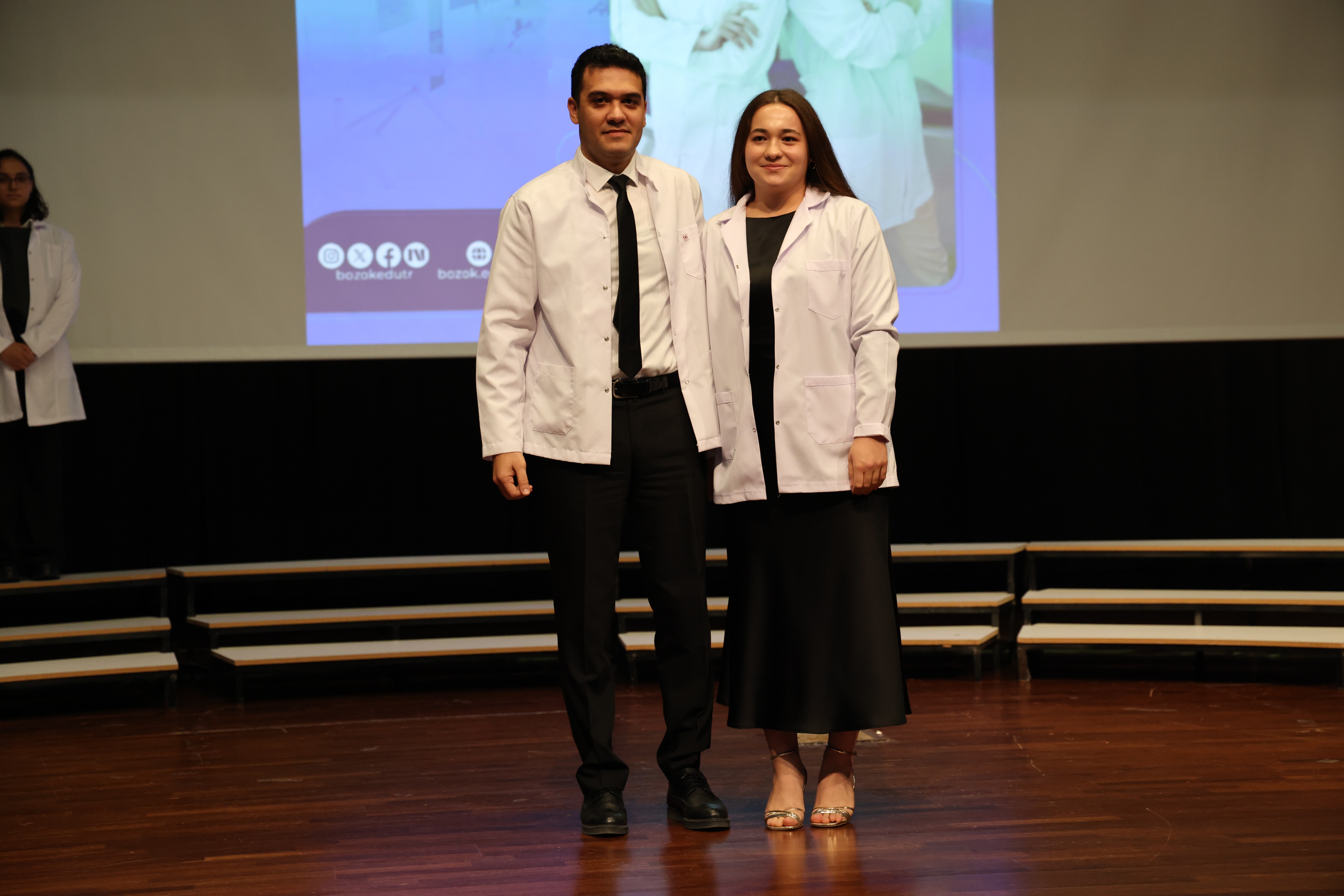 2025-2026 eğitim-öğretim yılında üniversitemiz Diş Hekimliği Fakültesi’ne başlayan 57 hekim adayı için “Beyaz Önlük Giyme Töreni” düzenlendi. Törende, hekimliğe ilk adımlarını atan Diş Hekimliği Fakültesi birinci sınıf öğrencileri, mesleki yaşamlarının simgesi olan beyaz önlüklerini giymenin heyecan ve gururunu yaşadı.