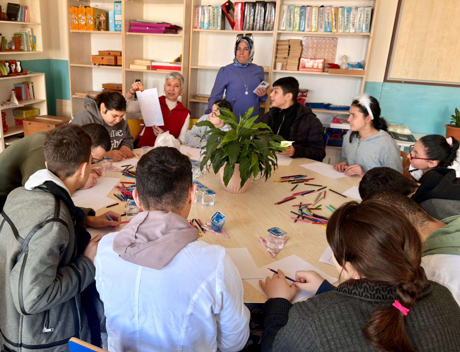 Kanuni Sultan Süleyman Özel Eğitim Meslek Okulu’nda düzenlenen etkinlikte, Üniversitemiz İletişim Fakültesi Dekanı Prof. Dr. Zülfiye Acar Şentürk rehberliğinde öğrencilerle birlikte gündelik iletişim pratikleri uygulamalarının yanında resim ve boyama çalışması yapıldı. Çalışma kapsamında öğrenciler, renkler aracılığıyla duygu ve düşüncelerini çizerek yansıtma fırsatı buldu.