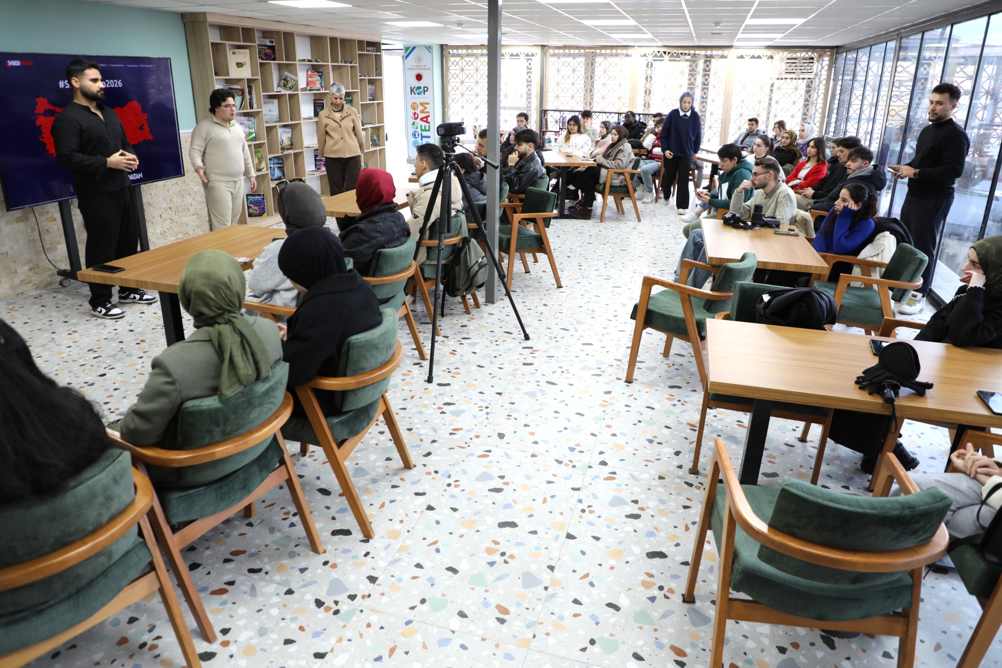Üniversitemiz Bilim İletişimi Ofisi tarafından, Siber Vatan Programı’nın içeriği, işleyişi ve gençlere sunduğu imkânlar hakkında bilgilendirme yapmak amacıyla “Gençler Siber Vatan’ı Anlatıyor” temalı Bilim Kafe etkinliği düzenlendi.