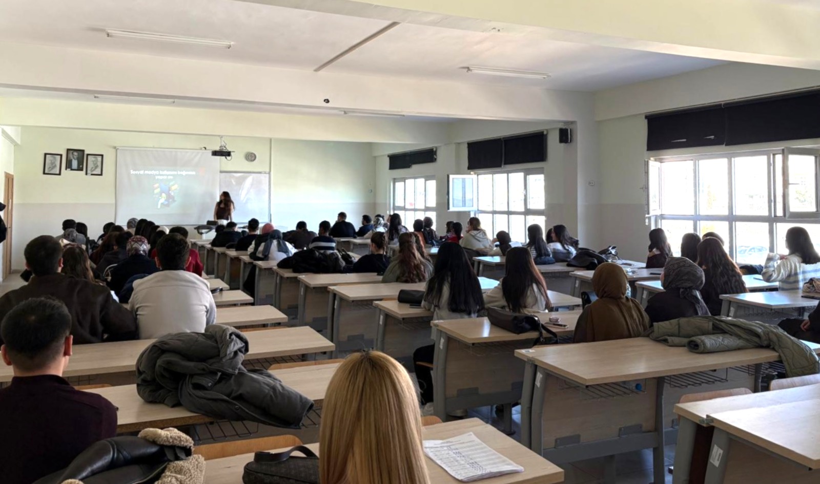 Sağlık Bilimleri Fakültesi’nde düzenlenen etkinlikte, Çekerek Fuat Oktay Sağlık Hizmetleri Meslek Yüksekokulu Öğr. Gör. Gurbet Bozkurt, dijital çağın bireylerin ruh sağlığı üzerindeki etkilerine değinerek sosyal medyanın bilinçli kullanımının önemine dikkat çekti. Öğr. Gör. Bozkurt, özellikle sosyal medya kullanımının yalnızlık hissi, aidiyet duygusu ve gerçek yaşam ilişkileri üzerindeki etkilerini ele alarak katılımcılara konuya ilişkin bilimsel bilgiler paylaştı.