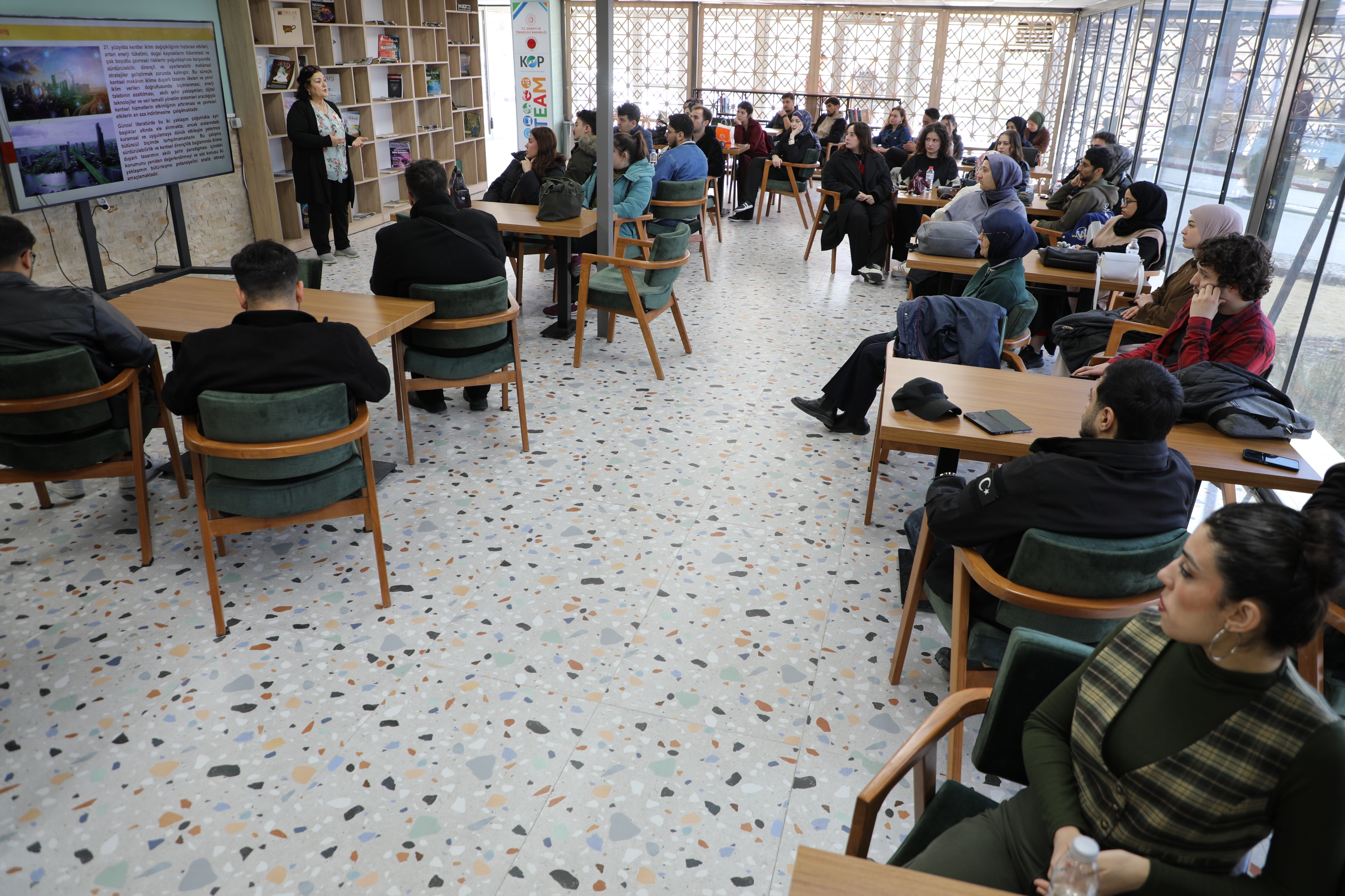 Üniversitemiz İklim Değişikliği ve Sıfır Atık Topluluğu tarafından “Sürdürülebilirlik ve Kentsel Dirençlilik Bağlamında İklime Duyarlı Tasarım ve Akıllı Şehirler” temalı Bilim Kafe etkinliği düzenlendi.