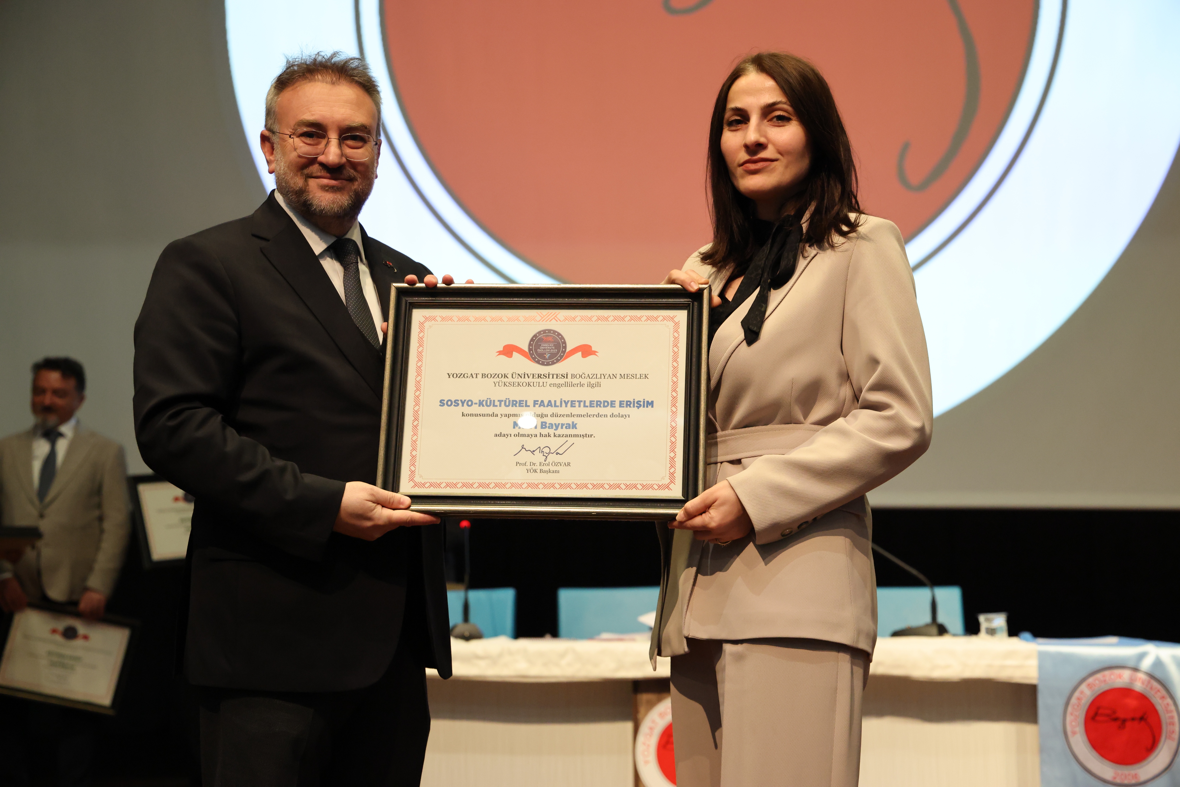 Sosyo-Kültürel Faaliyetlerde Erişilebilirlik kategorisinde aday gösterilen Mühendislik Mimarlık Fakültesi ile Boğazlıyan Meslek Yüksekokuluna da ödül belgeleri takdim edildi.