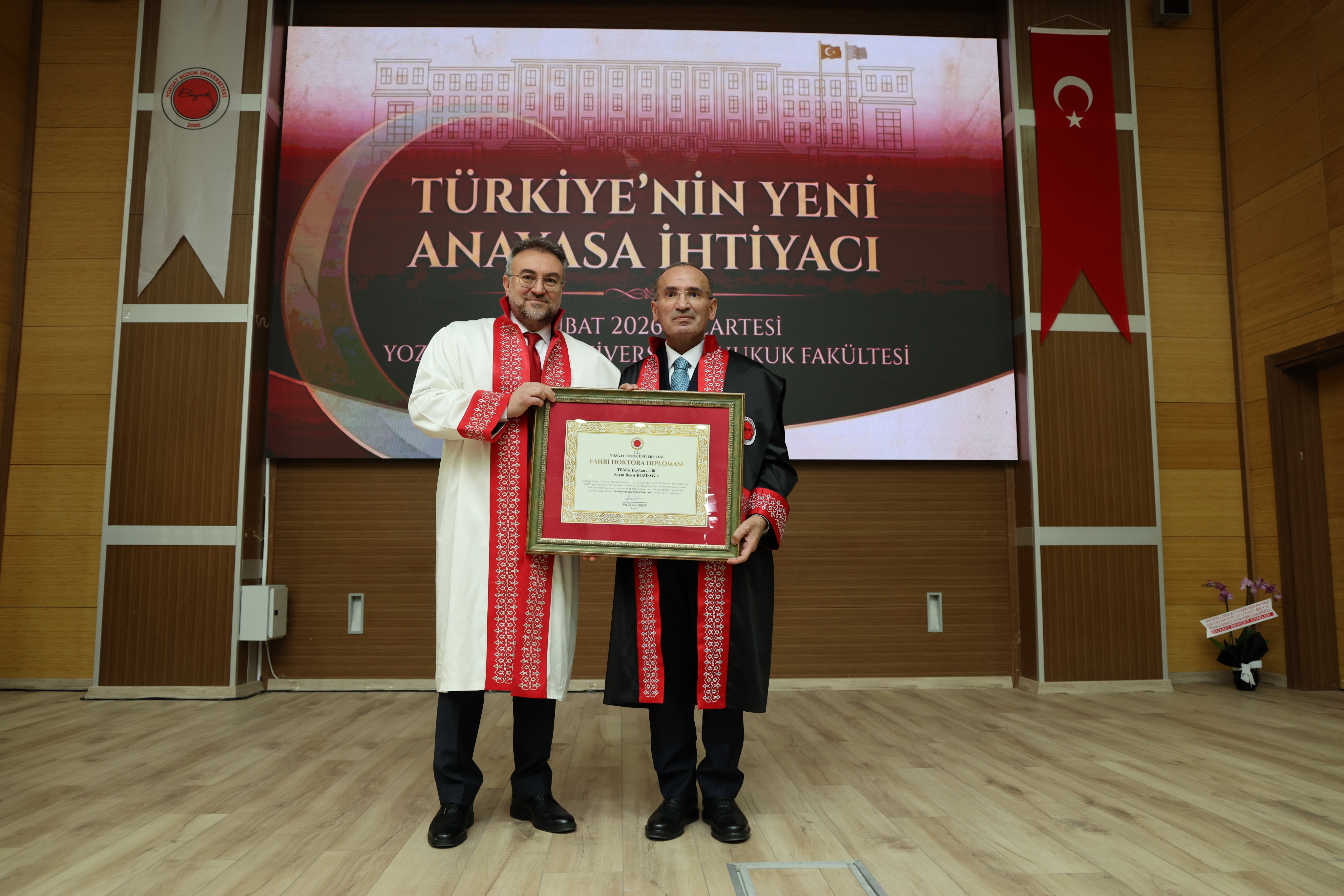 Üniversitemizde, TBMM Başkanvekili ve Önceki Dönem Adalet Bakanı Bekir Bozdağ’ın teşrifleriyle “Türkiye Yüzyılı ve Yeni Anayasa” konulu konferans ile Fahri Doktora Ünvanı Tevcih Töreni düzenlendi.