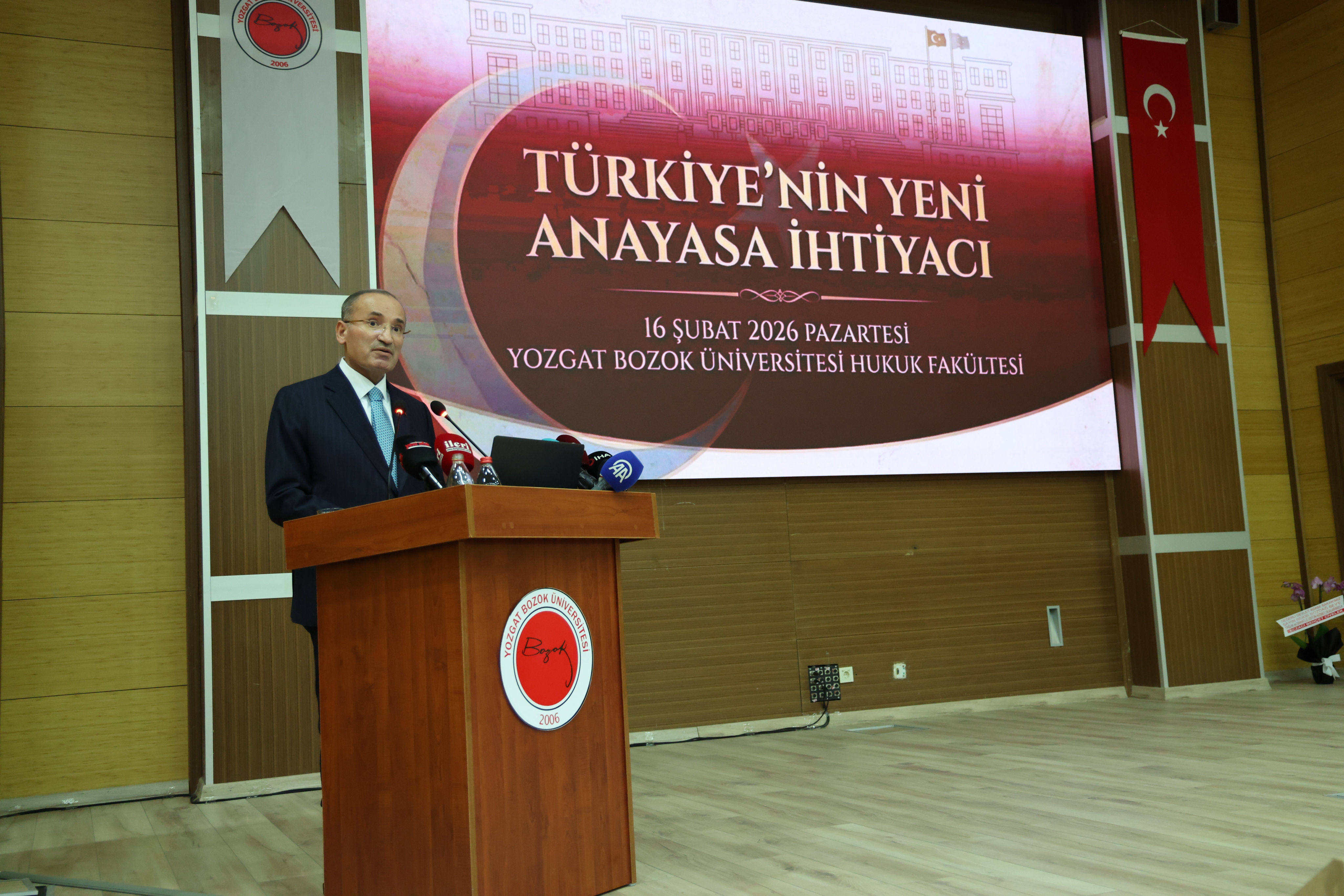 Konferansta konuşan TBMM Başkanvekili Bekir Bozdağ, yeni anayasanın Türkiye’nin değişmez ve değiştirilmesi teklif edilemez ana gündemi olduğunun altını çizerek, Türkiye’de herkesin ve her kesimin yeni anayasa ihtiyacı olduğu konusunda mutabık olduğunu söyledi.