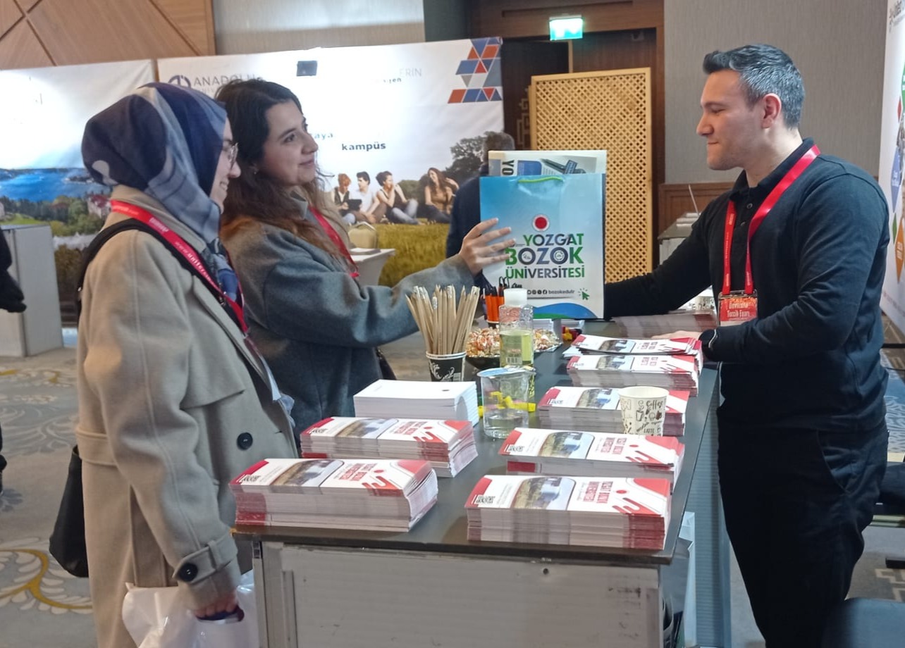 Katılımın yoğun olduğu yükseköğretim tanıtım fuarında Üniversitemiz tanıtım ekibi aday öğrencilere üniversitemizin eğitim-öğretim faaliyetleri, bölüm ve programlar, bilimsel, sosyal, kültürel ve sportif faaliyetler, barınma ve ulaşım imkânları ile Yozgat’a ilişkin bilgi vererek tanıtım materyalleri dağıttı.