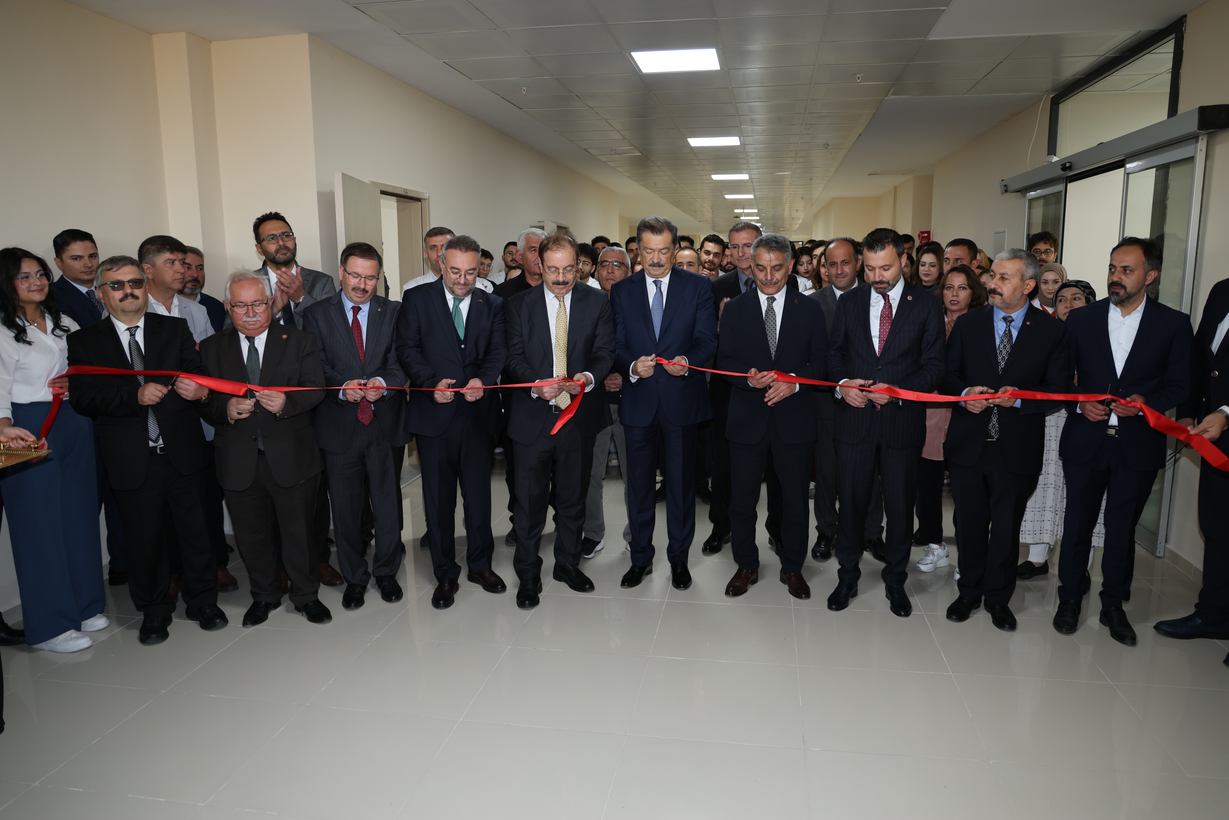 Açılış töreni ilk olarak Üniversitemiz Bilal Şahin Batı Kampüsü’nde, Veteriner Fakültesi bünyesinde kurulan Hayvan Hastanesi’nin kurdele kesimiyle başladı.