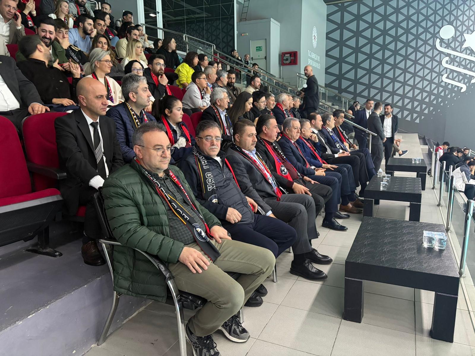 Üniversitemiz Rektörü Prof. Dr. Evren Yaşar da karşılaşmayı yerinde takip ederek takımın heyecanına ortak oldu.