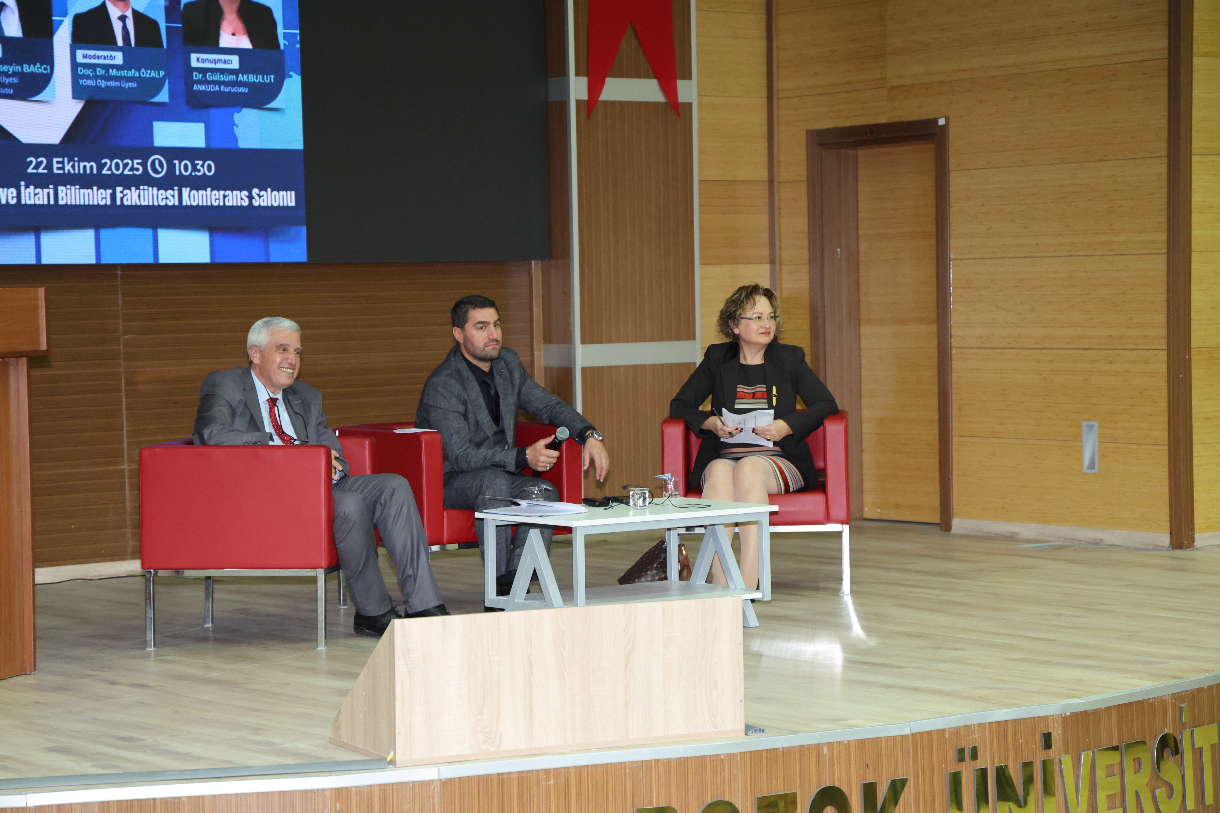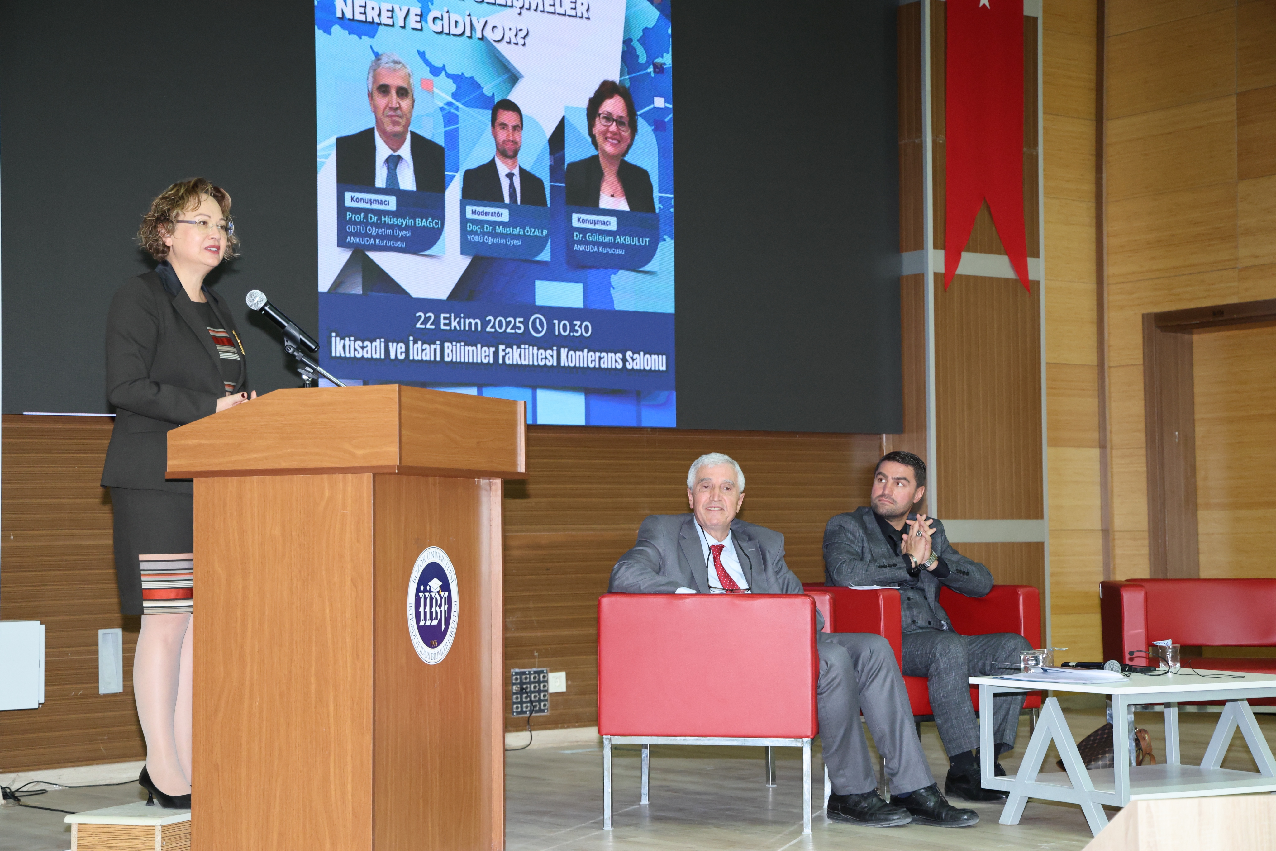 Üniversitemiz İktisadi ve İdari Bilimler Fakültesi Öğretim Üyesi Doç. Dr. Mustafa Özalp’in moderatörlüğünü yaptığı panelde, Orta Doğu Teknik Üniversitesi (ODTÜ) Öğretim Üyesi ve Ankara Küresel Danışmanlık Grubu (ANKUDA) kurucusu Prof. Dr. Hüseyin Bağcı ile ANKUDA Kurucusu Dr. Gülsüm Akbulut panelist olarak yer aldı.