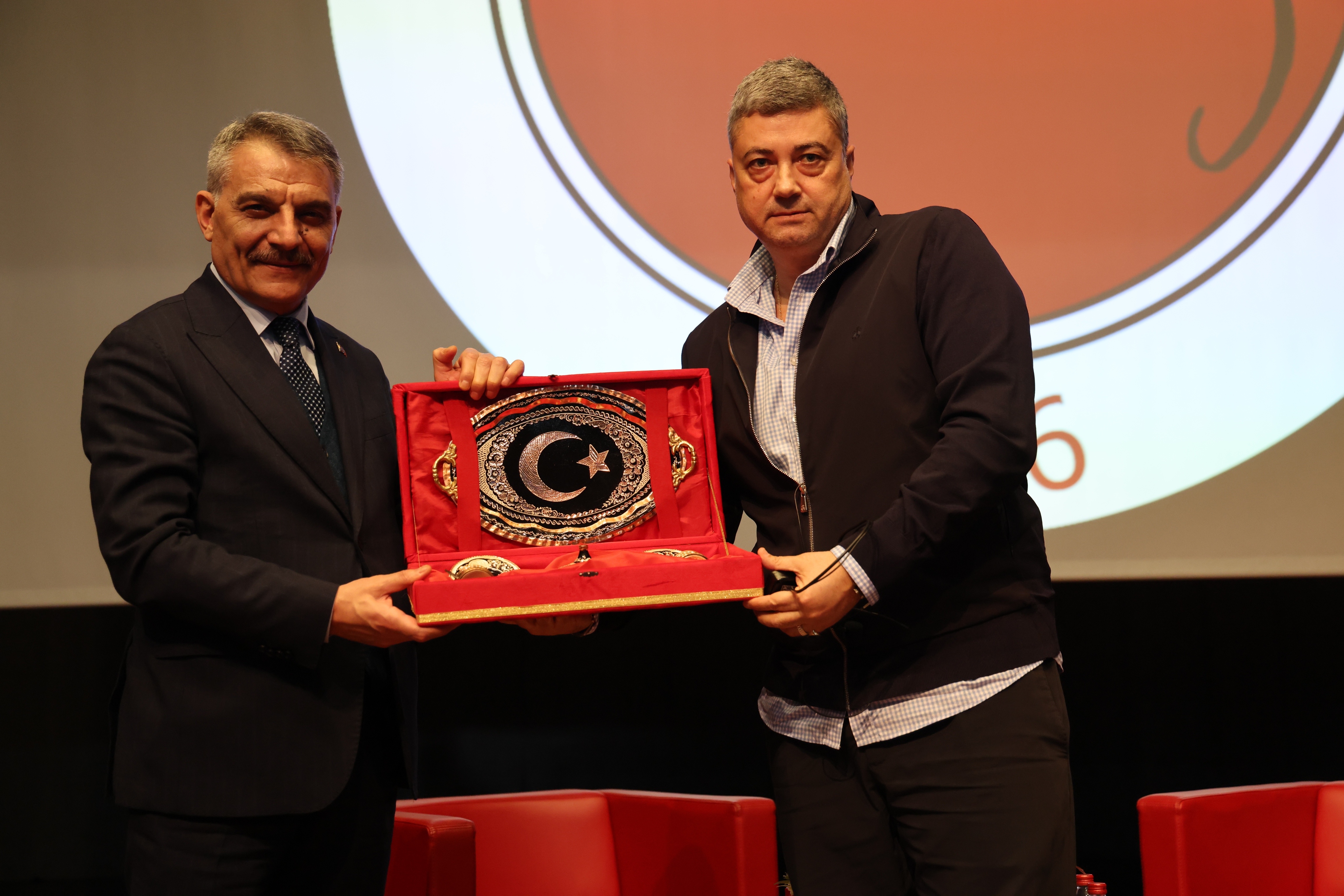Program sonunda, Yozgat Valisi Mehmet Ali Özkan ile Üniversitemiz Rektörü Prof. Dr. Evren Yaşar tarafından Şahin’e hediye takdim edildi.