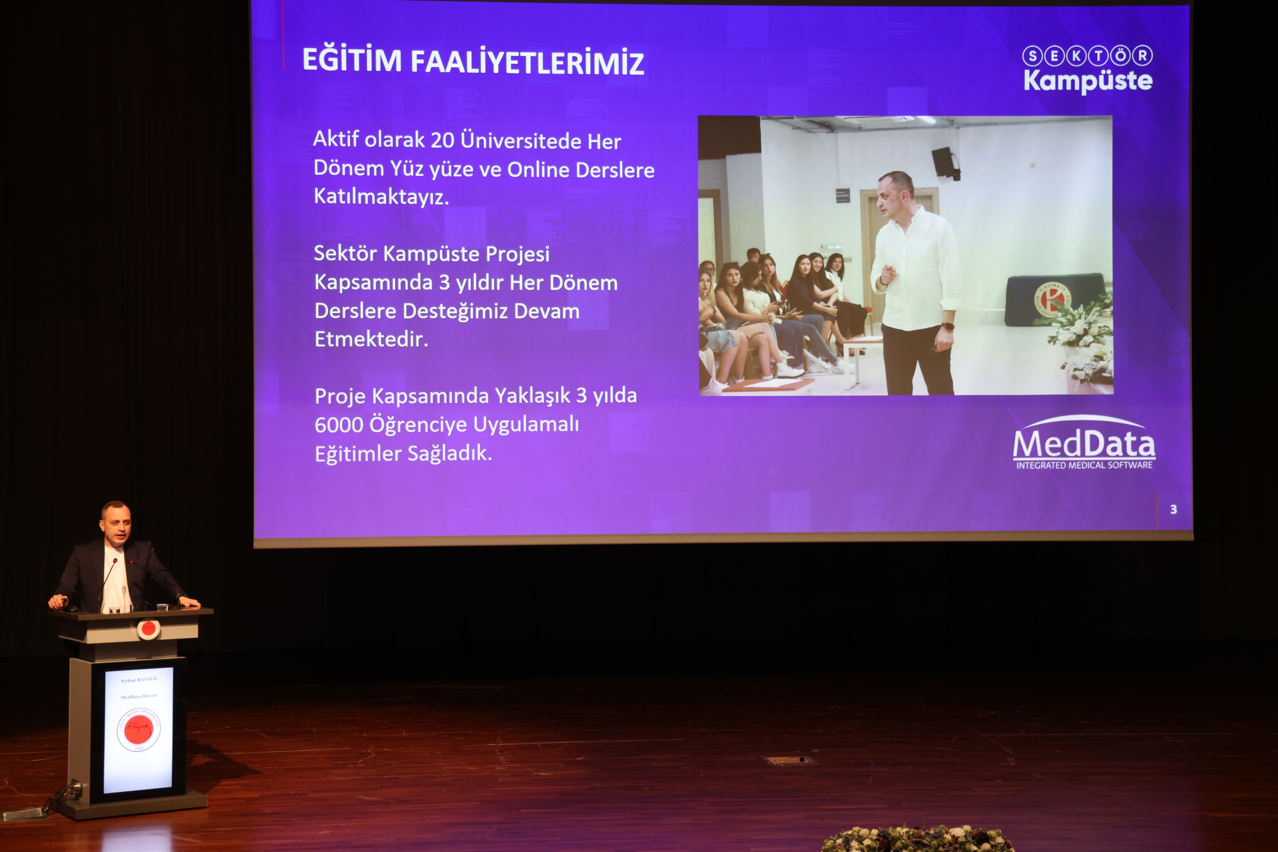 Açılış konuşmalarının ardından Teknoloji Eğitimleri Dairesi Başkanı Dr. Fatma Nur Akın tarafından Sektör Kampüste Programı Tanıtım Sunumu yapıldı. Dr. Akın sunumunda, Sektör Kampüste uygulamasının öğrencilere sunduğu fırsatlar, üniversite–sektör iş birliğinin sağladığı kazanımlar ve programın kariyer gelişimine katkıları üzerine değerlendirmelerde bulundu. Öğrencilerin eğitim sürecinde sektörle doğrudan temas kurmalarının önemine dikkat çeken Dr. Akın, bu tür uygulamaların mezuniyet sonrası istihdama önemli katkılar sağladığını ifade etti.