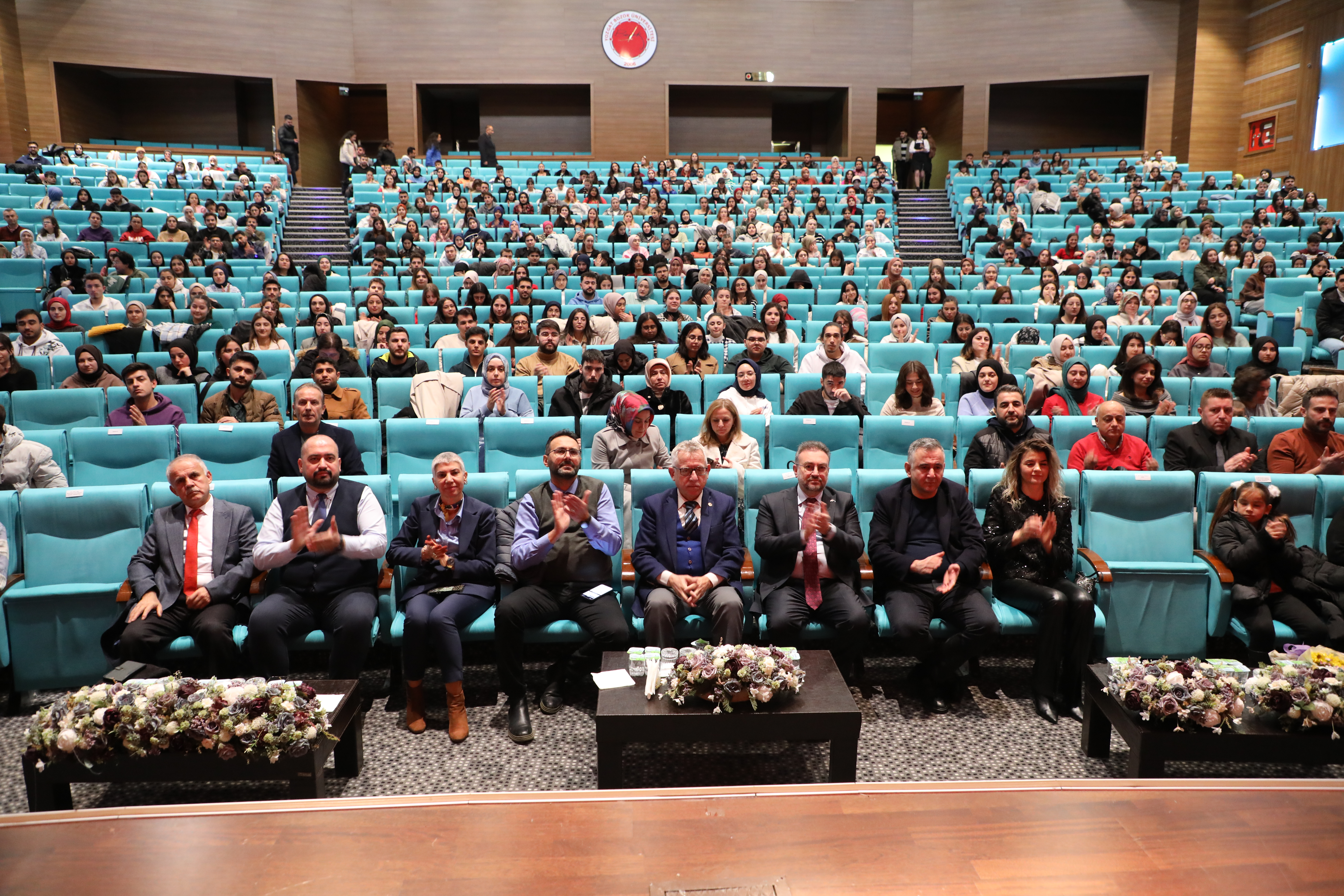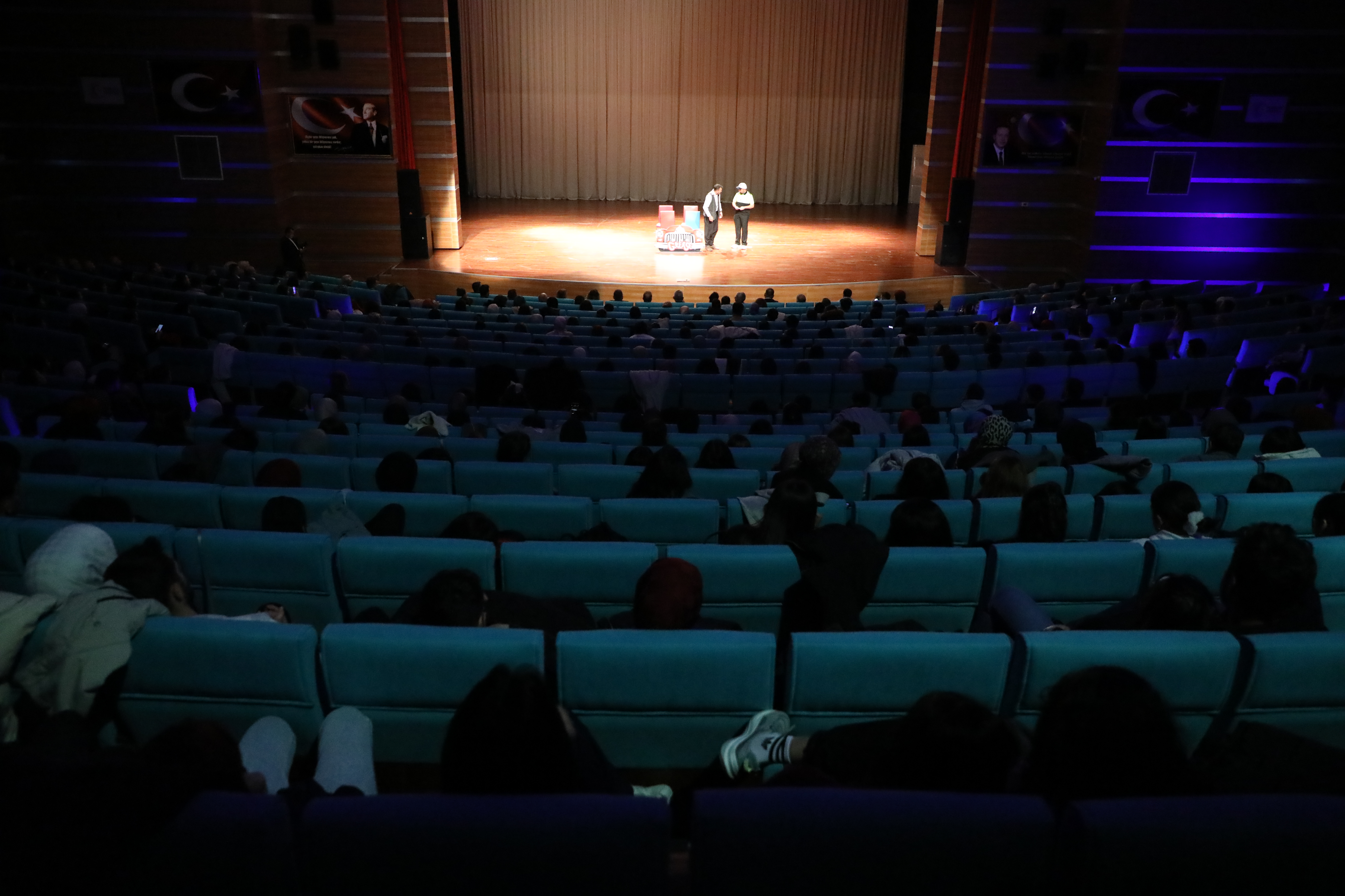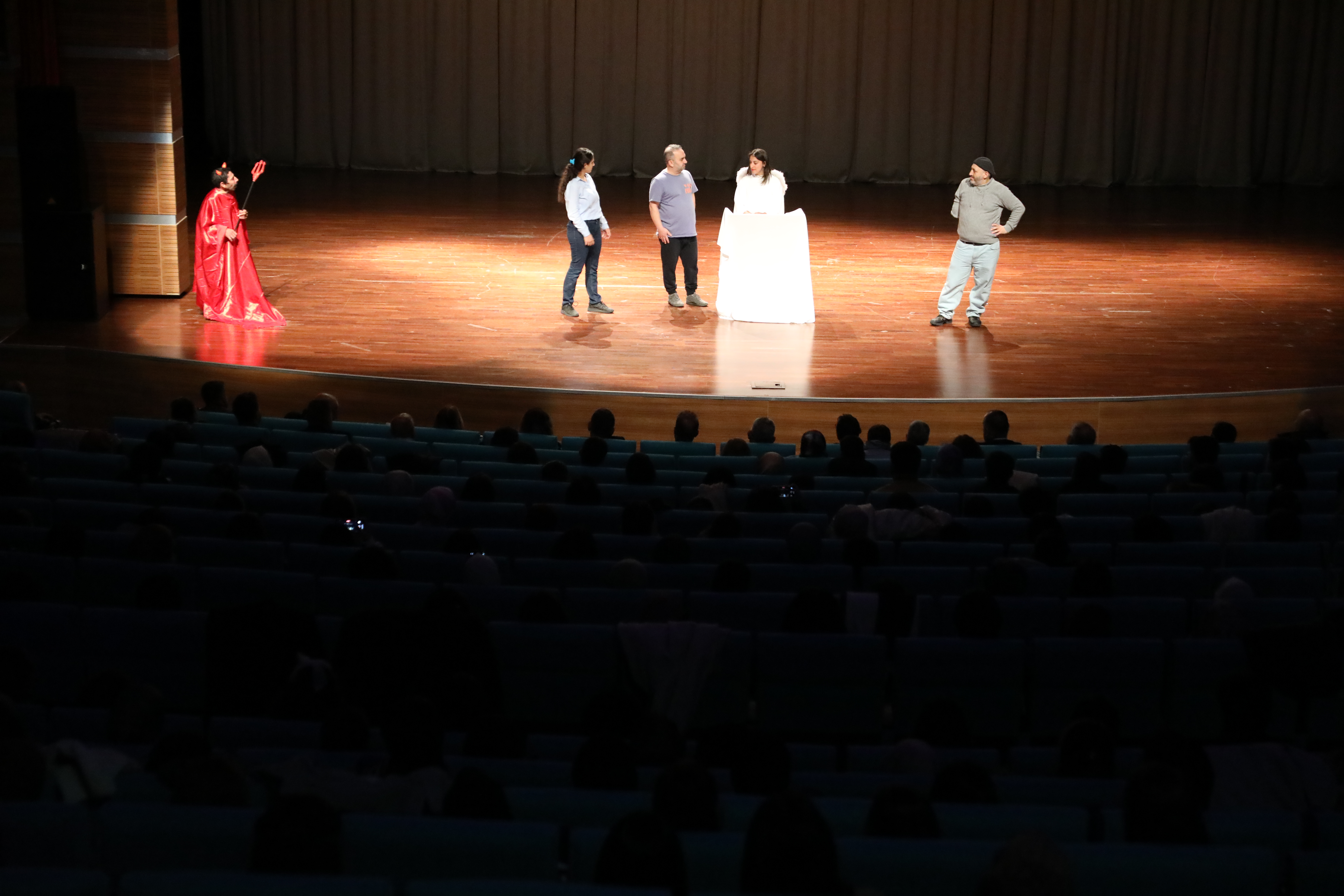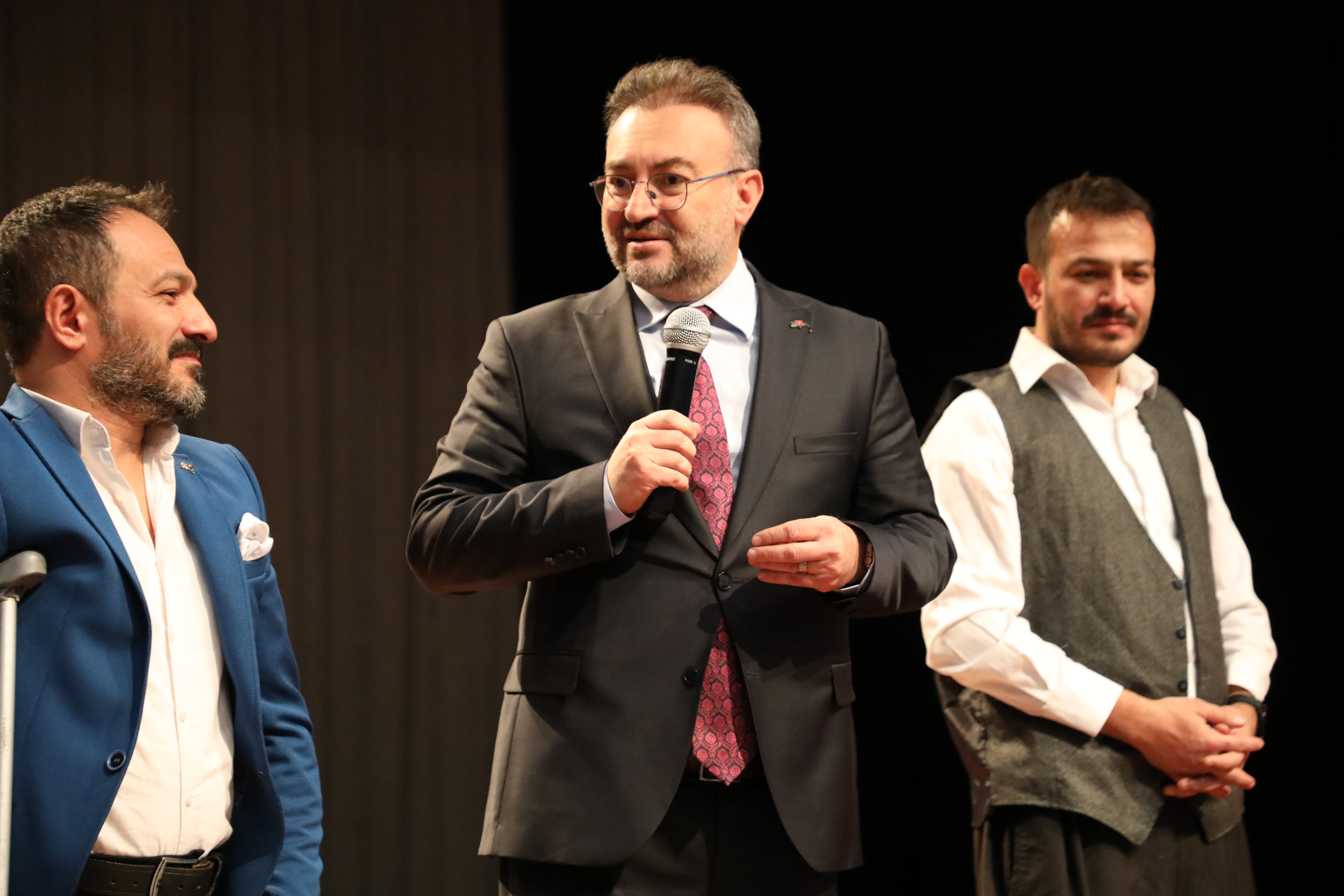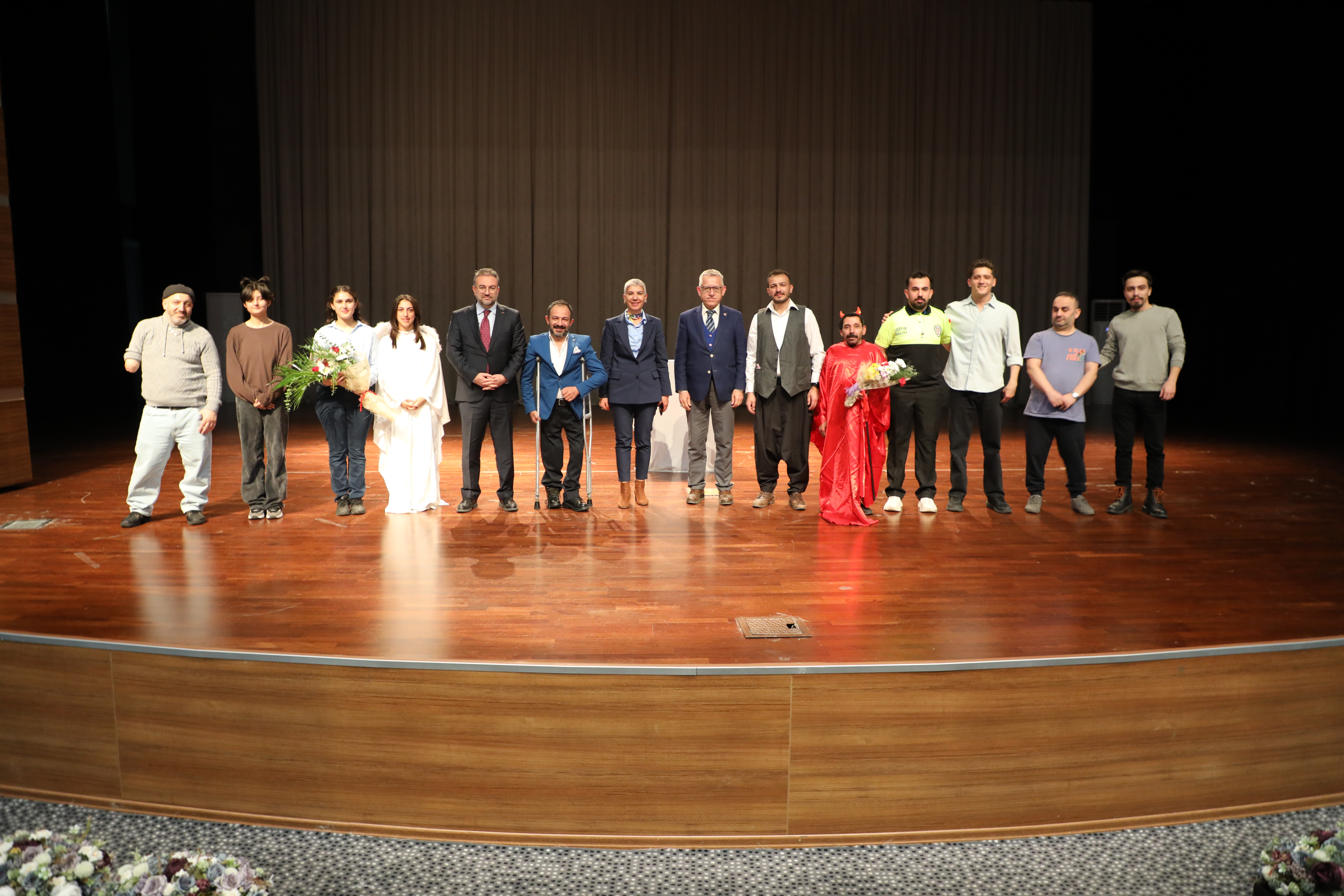 Erdoğan Akdağ Kongre ve Kültür Merkezi’nde sergilenen ve engelsiz sanatçıların sahne aldığı tiyatro oyununa Yozgat Belediye Başkanı Dr. Kazım Arslan, Üniversitemiz Rektörü Prof. Dr. Evren Yaşar, Yozgat İdare Mahkemesi Başkanı Şener Alpaslan Zarıçlar, Rektör Yardımcıları Prof. Dr. Güngör Yılmaz, Prof. Dr. Tansel Hacıhasanoğlu, Üniversitemiz Genel Sekreteri Doç. Dr. Mustafa Kocakaya, Pozitif Engelsizler Sanat Topluluğu (PEKSEM) Genel Müdürü Seyfettin Işık, fakülte dekanları, öğretim elemanları ve öğrenciler katıldı.