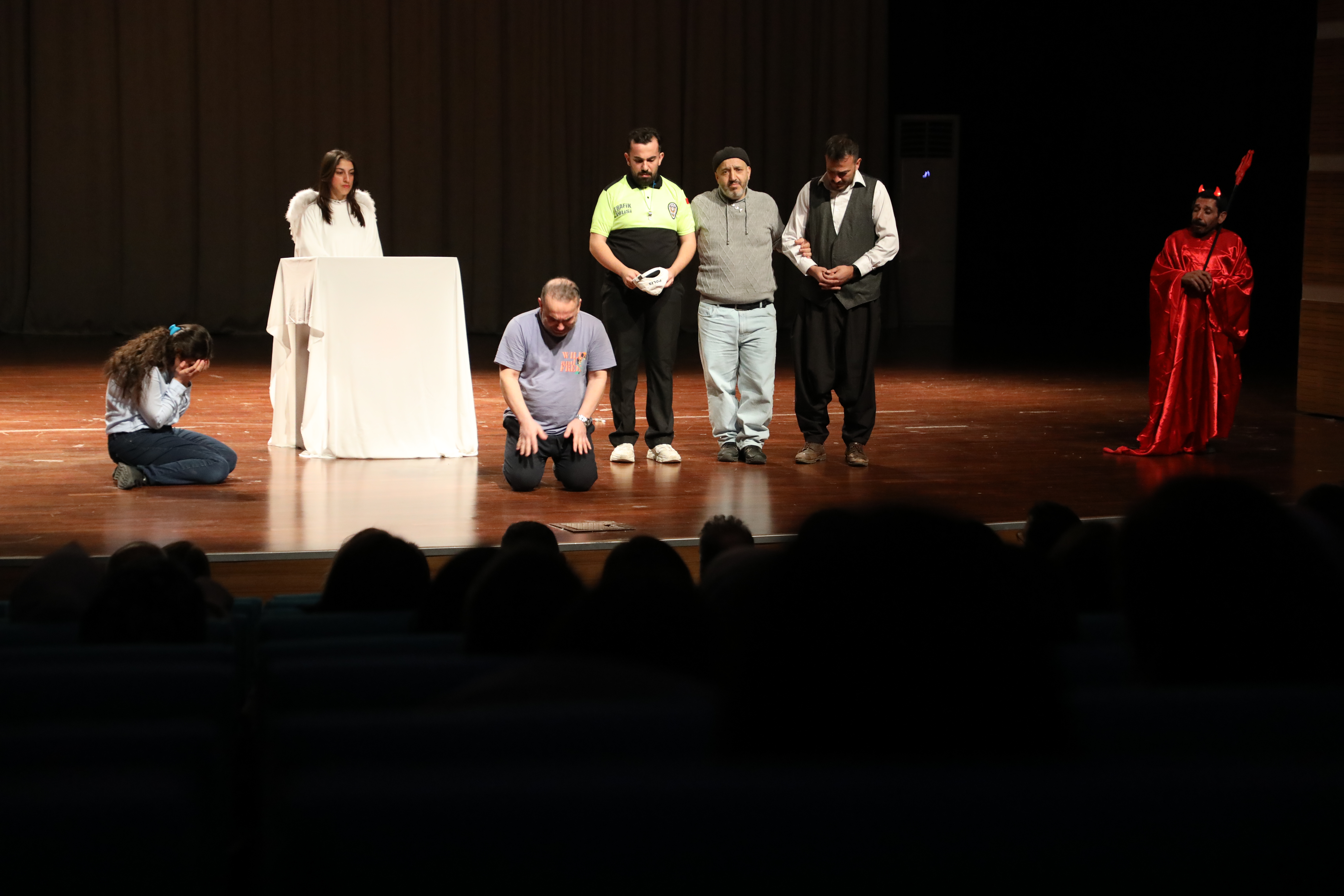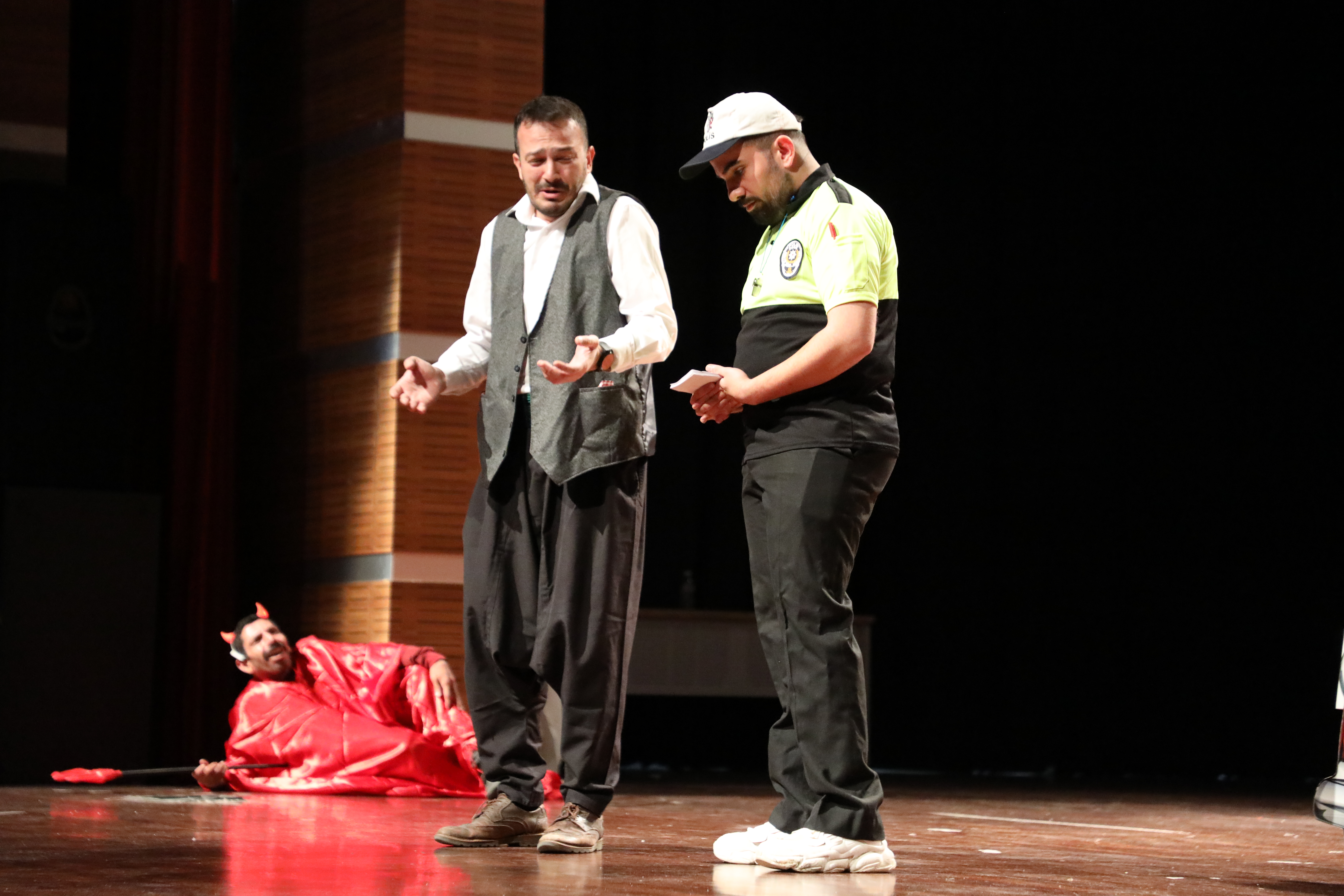 Kadrosu engelli oyunculardan oluşan iki perdelik oyunu ülkemizdeki trafik kazalarına dikkat çekmek ve bu konudaki toplumsal bilinci artırmayı amaçlıyor. Toplumsal mesajlar içeren güldürü oyunun izleyenler tarafından beğeni topladı.