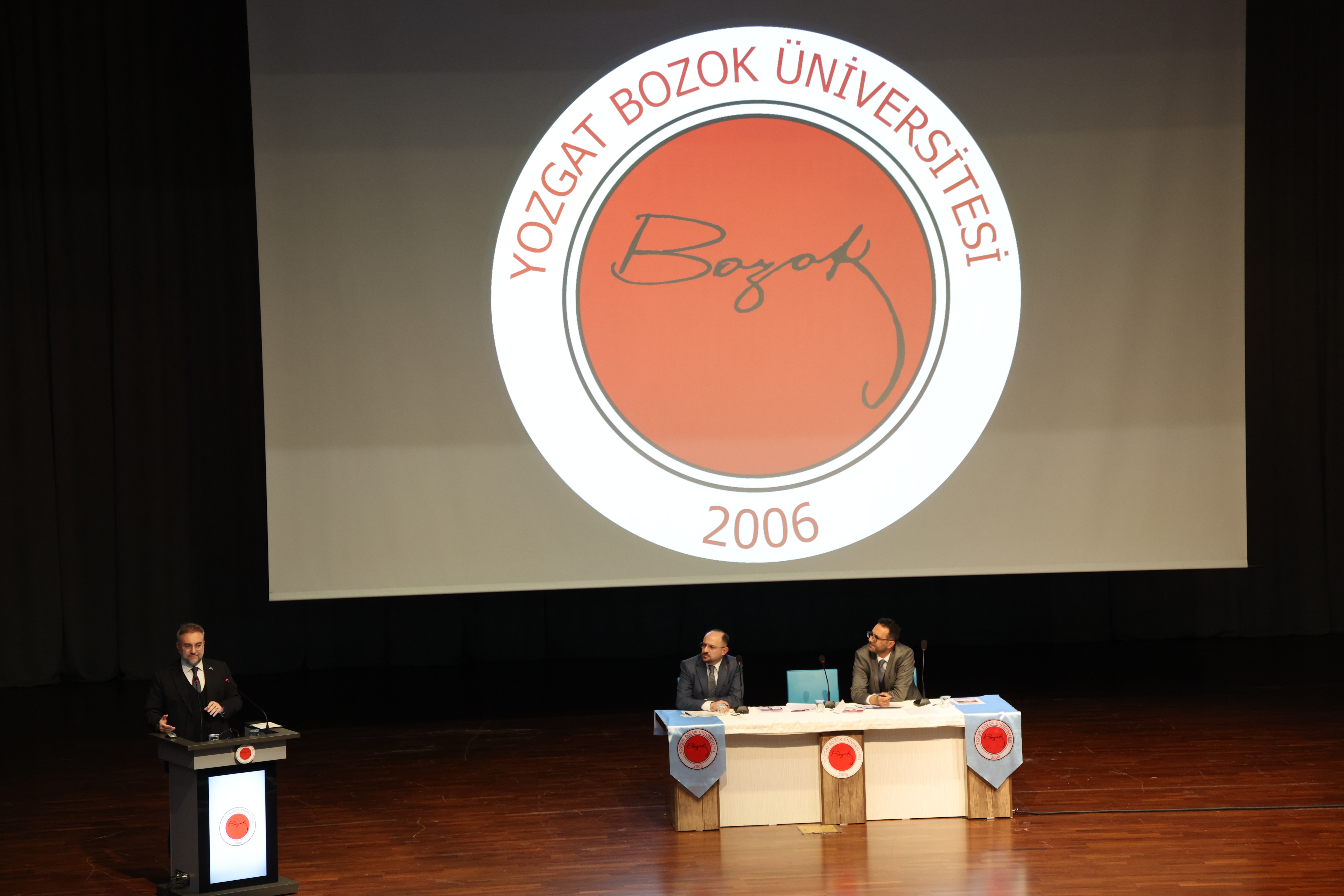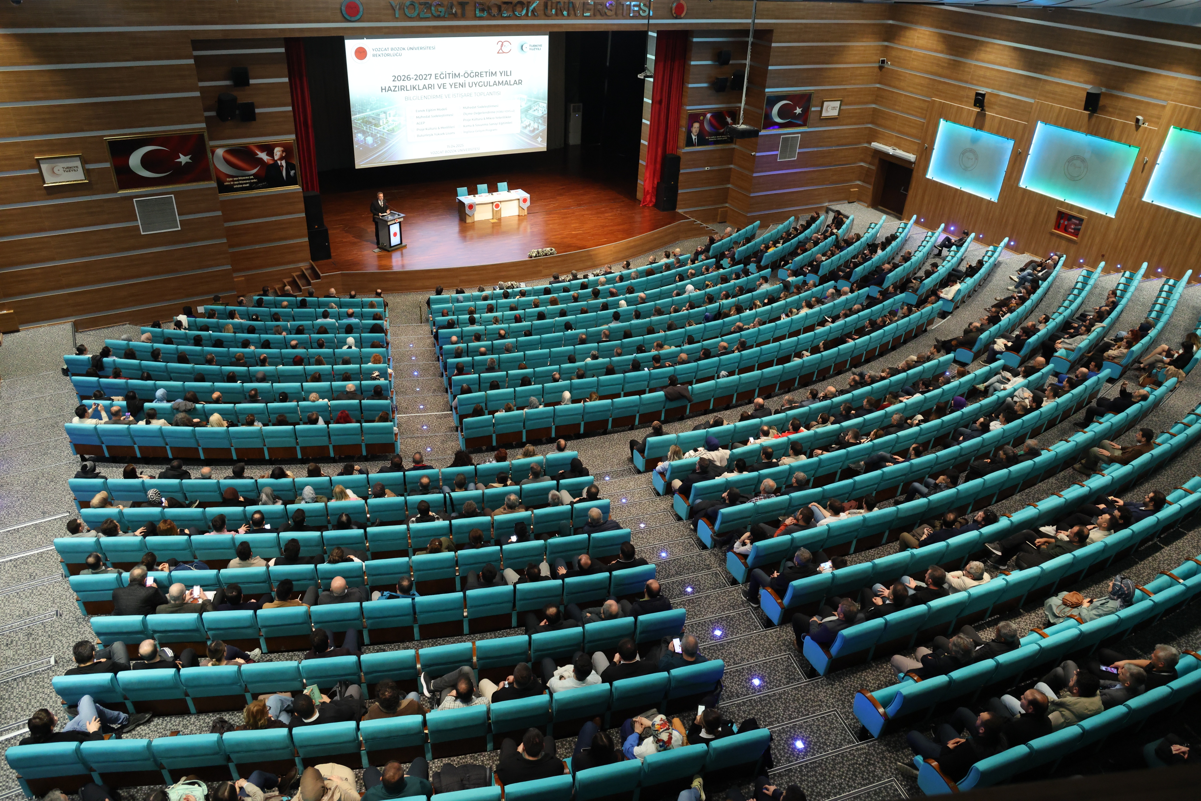 Üniversitemiz Erdoğan Akdağ Kongre ve Kültür Merkezi’nde düzenlenen toplantıya; Rektör Yardımcılarımız Prof. Dr. Güngör Yılmaz, Prof. Dr. Fuat Köksal, Prof. Dr. Tansel Hacıhasanoğlu, Genel Sekreterimiz Doç. Dr. Mustafa Kocakaya, dekanlar, dekan yardımcıları, müdürler ve müdür yardımcıları ile bölüm ve program başkanları katıldı.