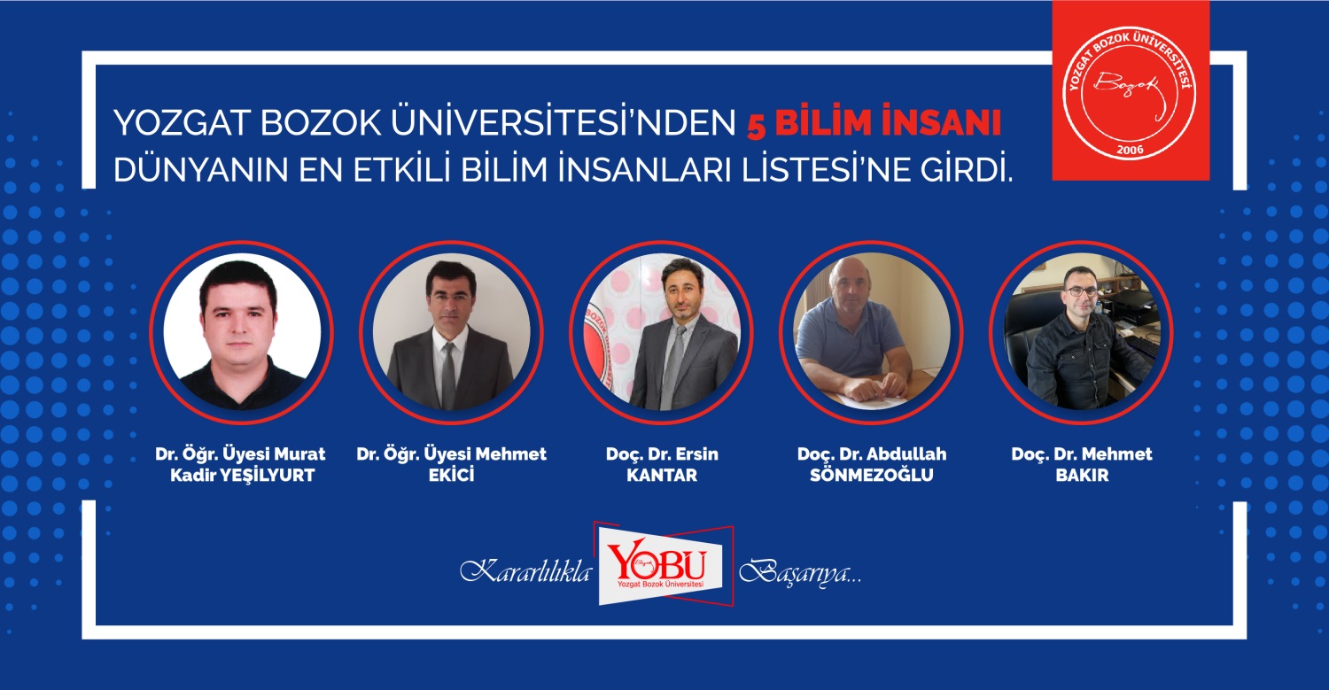 Bu listenin güncel 2021 yılı versiyonunda üniversitemizden 6 akademisyen listeye girmeyi başardı. Üniversitemiz Fen-Edebiyat Fakültesi’nden Doç. Dr. Abdullah Sönmezoğlu, Dr. Öğr. Üyesi Mehmet Ekici, Mühendislik-Mimarlık Fakültesi’nden Prof.Dr. Murat Uzam, Doç. Dr. Murat Kadir Yeşilyurt ve Doç. Dr. Mehmet Bakır, Sorgun Meslek Yüksekokulu’ndan Doç. Dr. Ersin Kantar, dünyanın en etkili bilim insanlarının sıralandığı listede yer aldı.