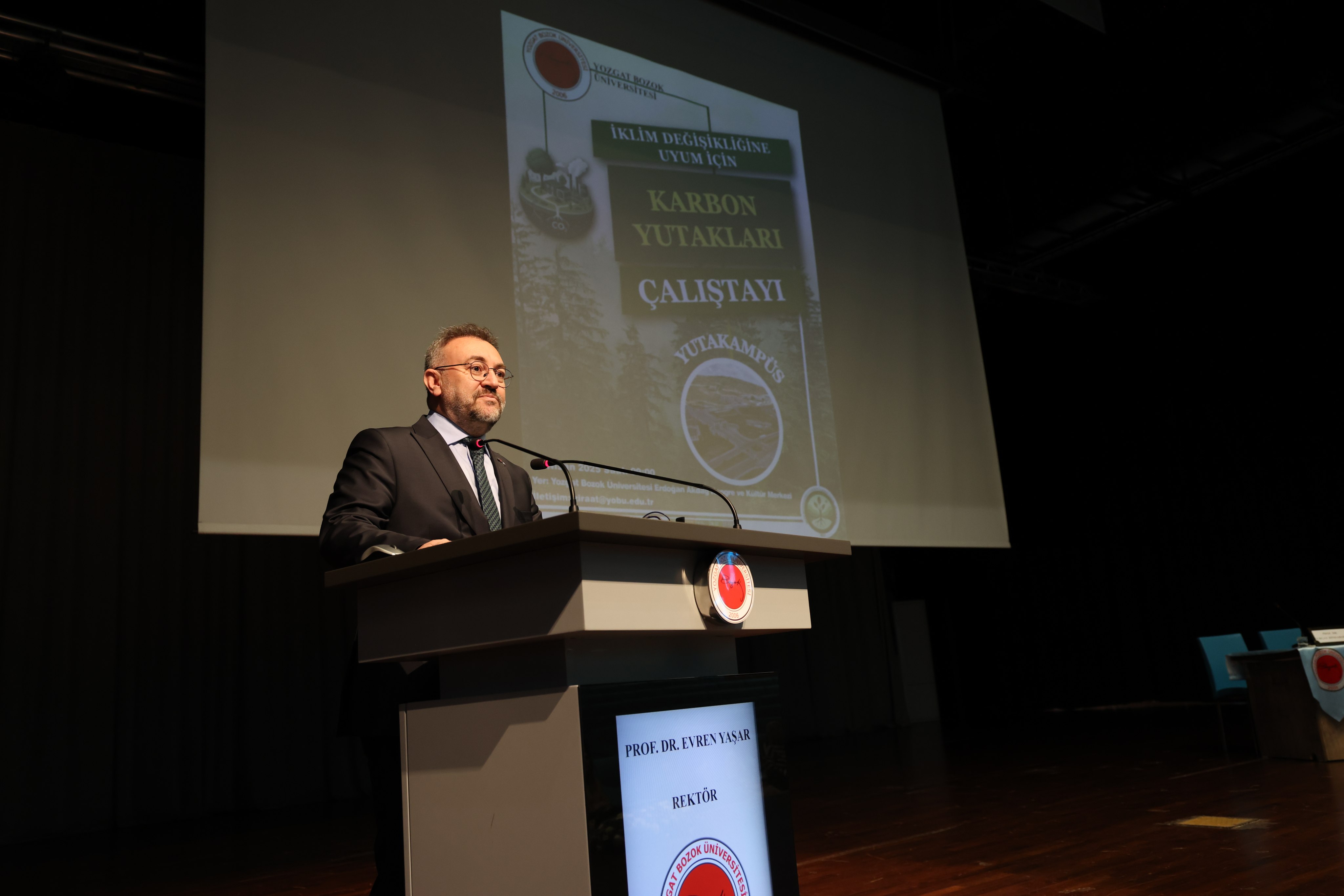 Çalıştayda konuşan Çölleşme ve Erozyonla Mücadele Genel Müdürü Prof. Dr. Kasım Yenigün, karbon yutak alanlarının korunması ve artırılmasının, iklim değişikliğiyle mücadelede en etkili doğa temelli çözümlerden biri olduğunu söyledi. Prof. Dr. Yenigün konuşmasının devamında: “Küresel ölçekte yaşadığımız iklim değişikliği; sadece çevresel değil, aynı zamanda sosyal, ekonomik ve politik yönleriyle de insanlığın karşı karşıya kaldığı en büyük tehditlerden biri haline geldi. Bu bağlamda; ormanlar, sulak alanlar, çayırlar, tarım arazileri ve sürdürülebilir peyzaj alanları gibi doğal sistemler, atmosferdeki karbon döngüsünün dengelenmesinde yaşamsal rol oynuyor. Yozgat Bozok Üniversitesi'nin bu çalıştay aracılığıyla ortaya koyduğu vizyon, bu anlamda son derece önem taşıyor. Kampüs ölçeğinde karbon yutak alanlarının planlanmasına yönelik önerilerin, üniversitenin sürdürülebilirlik politikalarına katkı sağlayarak diğer üniversitelerimize de örnek teşkil edeceğine inanıyorum. Bu tür çok paydaşlı ve disiplinler arası etkinlikler, iklim değişikliği ile mücadelenin yerelden başlayarak ulusal politikalara entegre edilmesinde önemli rol oynuyor” ifadelerini kullandı.
