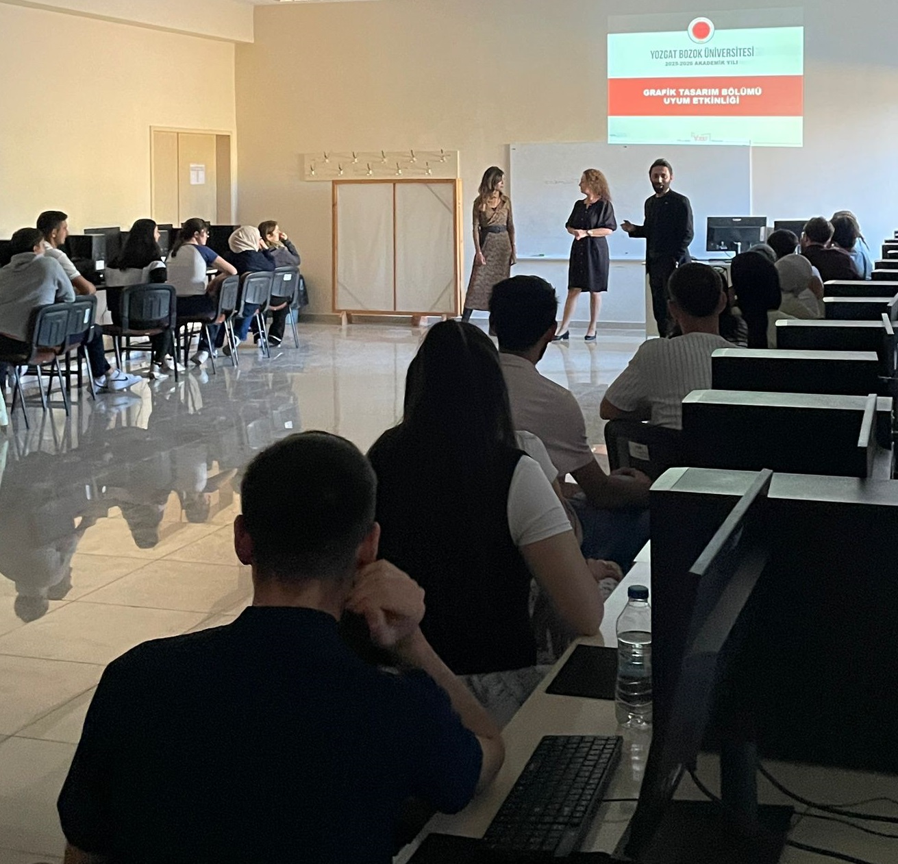 Grafik Tasarımı Programı öğrencilerine yönelik gerçekleştirilen 23 Eylül 2025 tarihli oryantasyon eğitimi, genel olarak amacına ulaşmış ve öğrencilerden yüksek düzeyde memnuniyet almıştır. Program süresince verilen içerikler anlaşılır, düzenli ve yol gösterici bulunmuş; ders müfredatına ilişkin aktarılan bilgiler yeterli ve faydalı görülmüştür. Staj sürecine dair yapılan bilgilendirmeler öğrencilerin en çok ilgi duyduğu konular arasında yer almış ve büyük ölçüde olumlu değerlendirilmiştir. Eğitim-öğretim süreçlerine ilişkin mevzuatın (devam, sınav yönetmelikleri vb.) açık bir biçimde aktarılması, öğrencilerin akademik hayata daha bilinçli başlamalarına katkı sağlamıştır. Sınav süreçlerine yönelik yapılan açıklamalar, öğrencilerin belirsizliklerini gidererek güven duymalarını sağlamıştır. Ayrıca ikinci sınıf öğrencileriyle birlikte gerçekleştirilen etkinlikler, iletişim ve deneyim paylaşımını destekleyerek uyum sürecini kolaylaştırmıştır. Genel olarak değerlendirildiğinde, öğrenciler oryantasyon programını bilgilendirici, düzenli ve faydalı bulmuş; küçük bir grubun dile getirdiği geliştirme önerileri ise gelecekte programın daha da etkili hale gelmesine ışık tutacak nitelikte olmuştur.