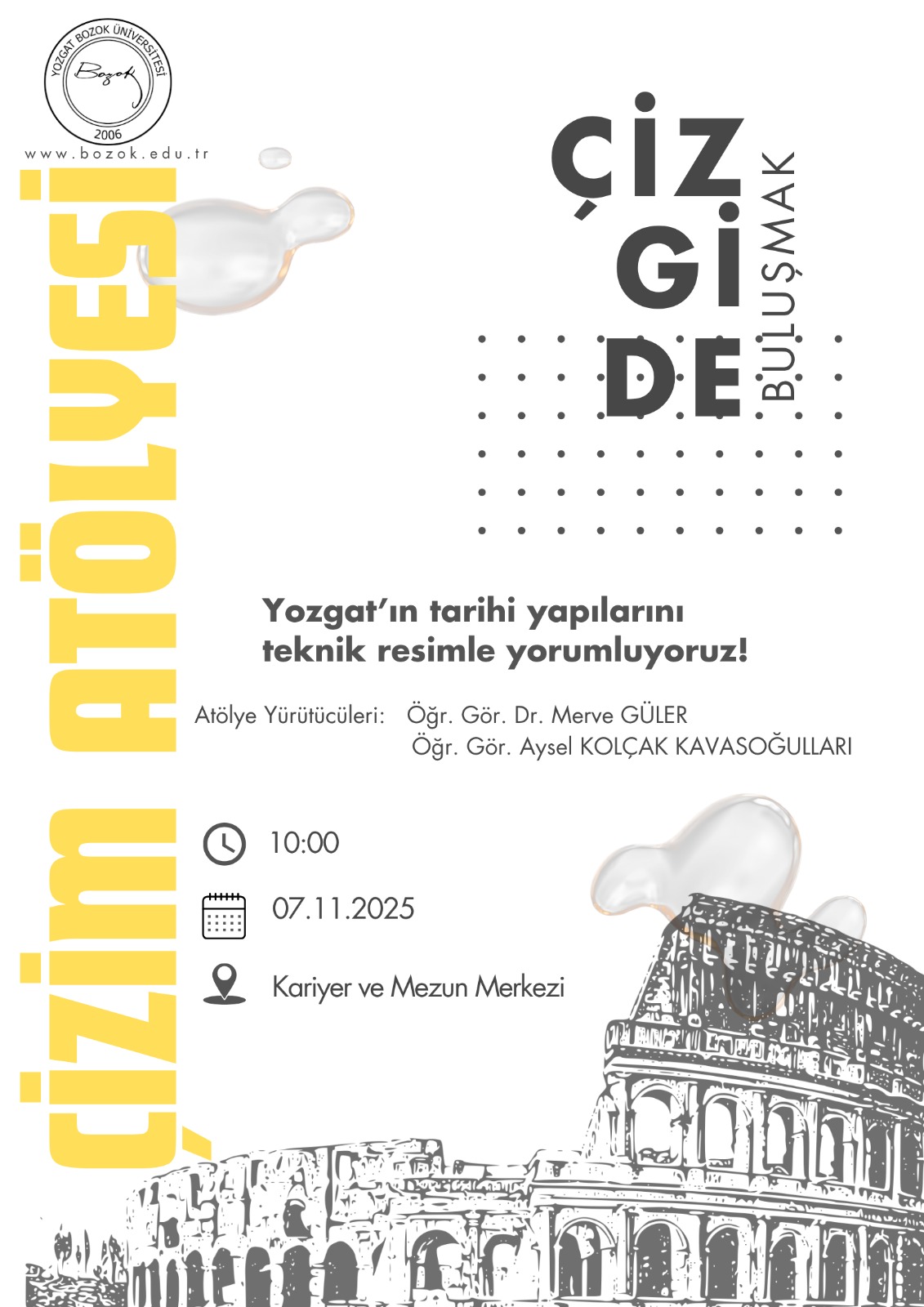 Atölye yürütücüleri Öğr. Gör. Dr. Merve Güler ve Öğr. Gör. Aysel Kolçak Kavasoğulları tarafından, kültürel mirasın korunması yaklaşımı çerçevesinde Yozgat’ın tarihi yapıları hakkında bilgiler paylaşıldı. Etkinlik kapsamında öğrenciler, tarihi yapıların çizim çalışmalarını gerçekleştirdiler. Atölye, öğrencilerin kültürel mirasa olan duyarlılıklarını artırmayı, çizim becerilerini geliştirmeyi ve bölgesel mimari değerleri tanımalarını amaçladı. Etkinlik, katılımcılara katılım belgelerinin takdim edilmesiyle sona erdi.