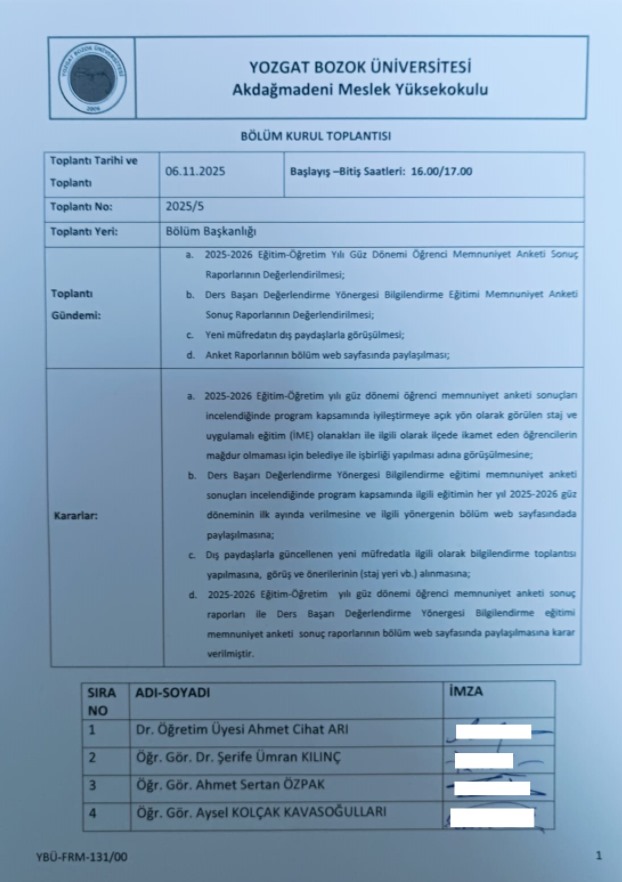 06.11.2025 tarihli 2025/5 nolu Bölüm Kurul Kararı için