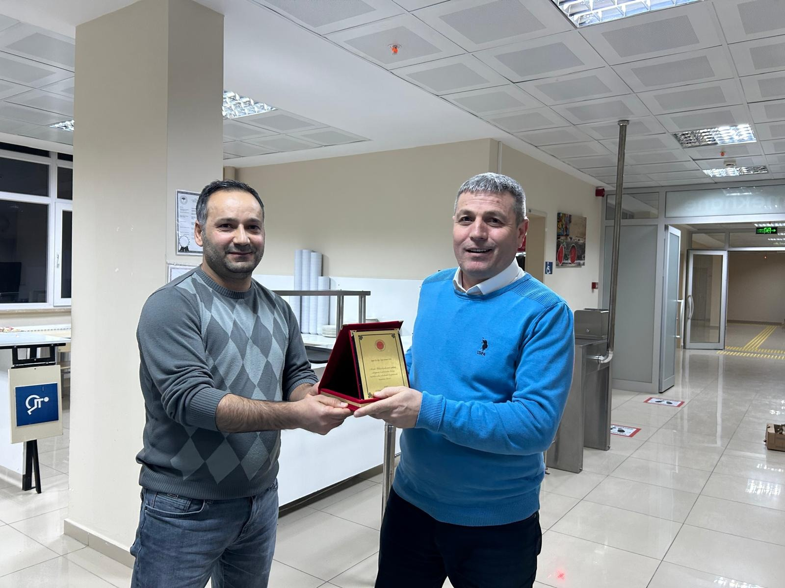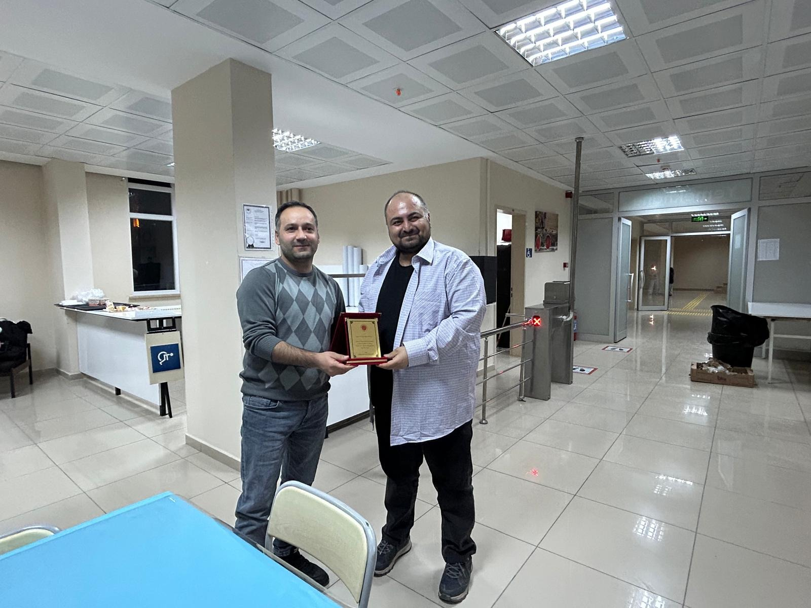 Akdağmadeni Meslek Yüksekokulu’nda, başka bir üniversitede göreve başlayan akademik personelimiz Dr. Öğr. Üyesi Hasan UZEL ve Dr. Öğr. Üyesi Feyyaz ALPSALAZ için 06.01.2026 tarihinde veda yemeği düzenlenmiştir. Samimi ve nezih bir ortamda gerçekleşen, çok sayıda akademik ve idari personelimizin katılım sağladığı programda hoş sohbetlerin ardından hocalarımız için pasta kesilmiştir. Program kapsamında, okulumuzda görev yaptıkları süre boyunca sundukları değerli katkılardan dolayı Müdürümüz Dr. Öğr. Üyesi Güven Demirtaş tarafından teşekkür plaketi takdim edilmiştir. Kıymetli hocalarımıza kurumumuza verdikleri emek ve hizmetler için teşekkür eder, akademik kariyerlerine devam edecekleri üniversitede başarılarla dolu bir çalışma hayatı temenni ederiz.