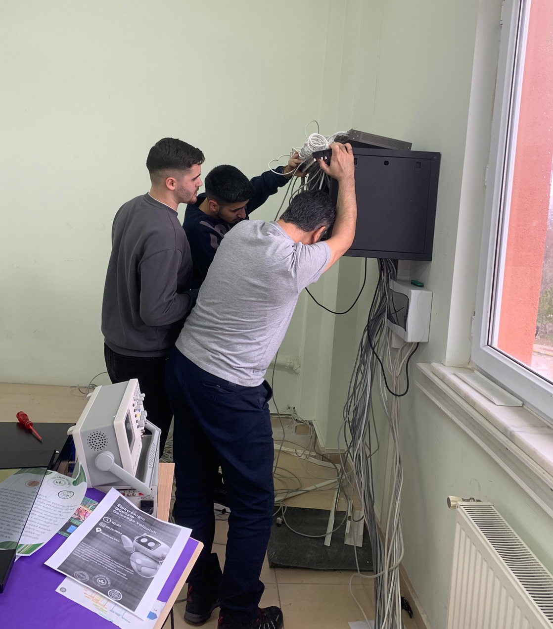 Yapılan düzenlemeler doğrultusunda kablo kanalı döşeme ve montaj işlemleri, öğretim elemanlarımızın rehberliğinde öğrencilerimizin aktif katılımıyla yürütülmektedir. Böylece öğrencilerimiz yalnızca teorik bilgi değil, aynı zamanda gerçek uygulama ortamında deneyim kazanma fırsatı elde etmektedir.
