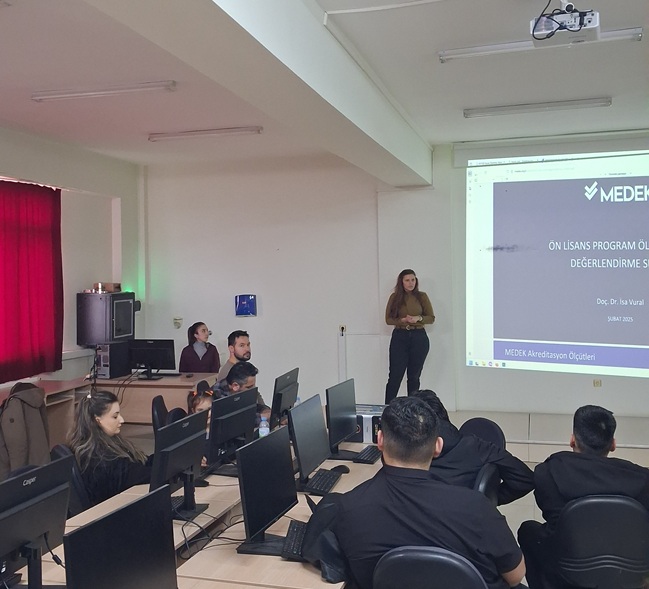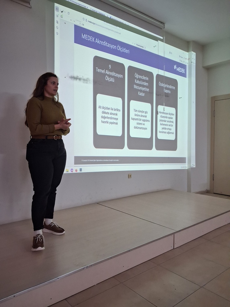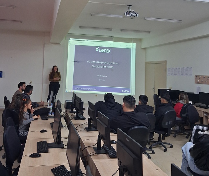 Toplantıda, MEDEK akreditasyon süreci hakkında kapsamlı bilgilendirmeler yapılarak kalite güvencesi, sürekli iyileştirme çalışmaları ve program çıktılarının önemi üzerinde duruldu. Sürecin programımıza sağlayacağı akademik ve kurumsal katkılar katılımcılarla paylaşıldı.