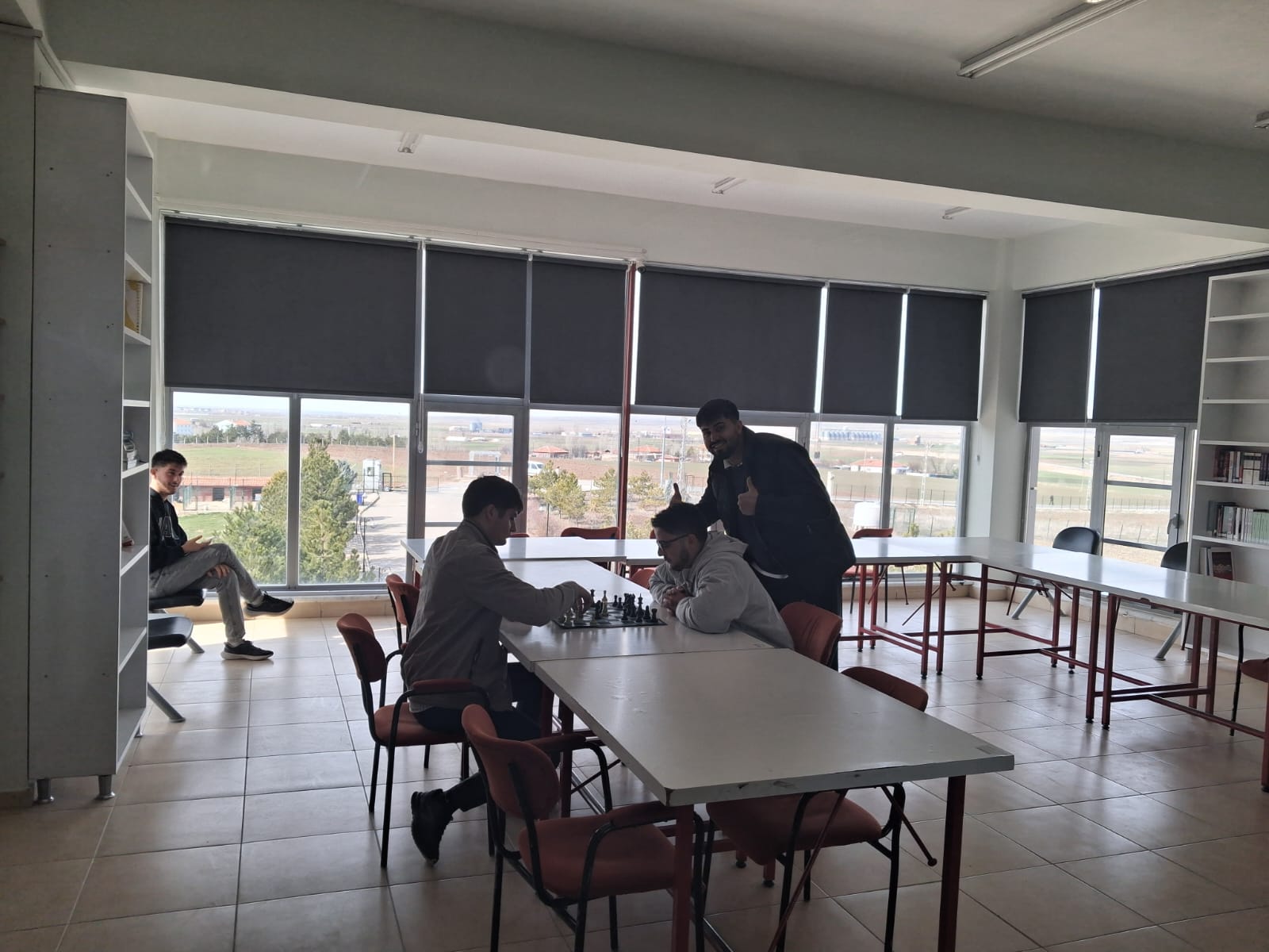 Satranç oyunu; analitik düşünme, planlama, öngörü ve karar verme becerilerini destekleyen önemli bir zihinsel aktivite olup, öğrencilerin mesleki yeterliliklerine de dolaylı katkı sağlamaktadır. Kütüphane ortamında gerçekleştirilen bu etkinlikler, aynı zamanda disiplinli çalışma alışkanlıklarının pekişmesine ve öğrenciler arasında sosyal etkileşimin artmasına olanak tanımaktadır.