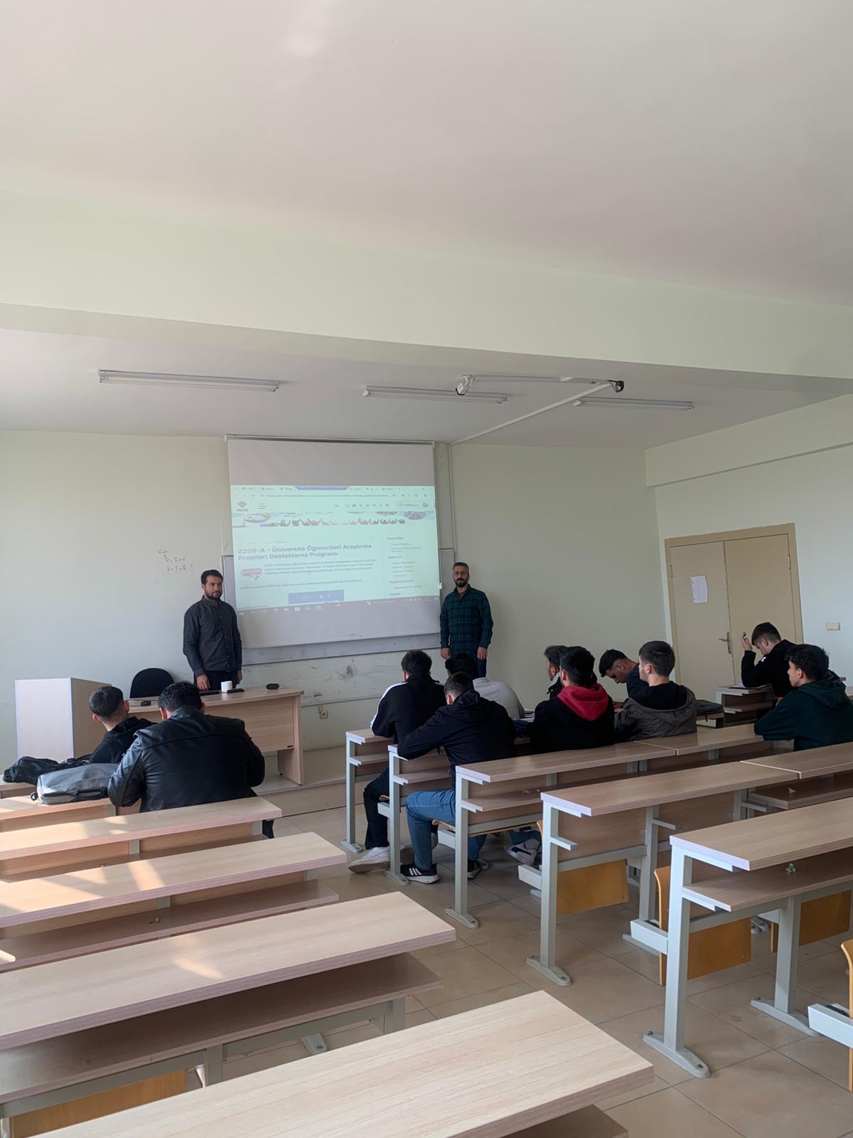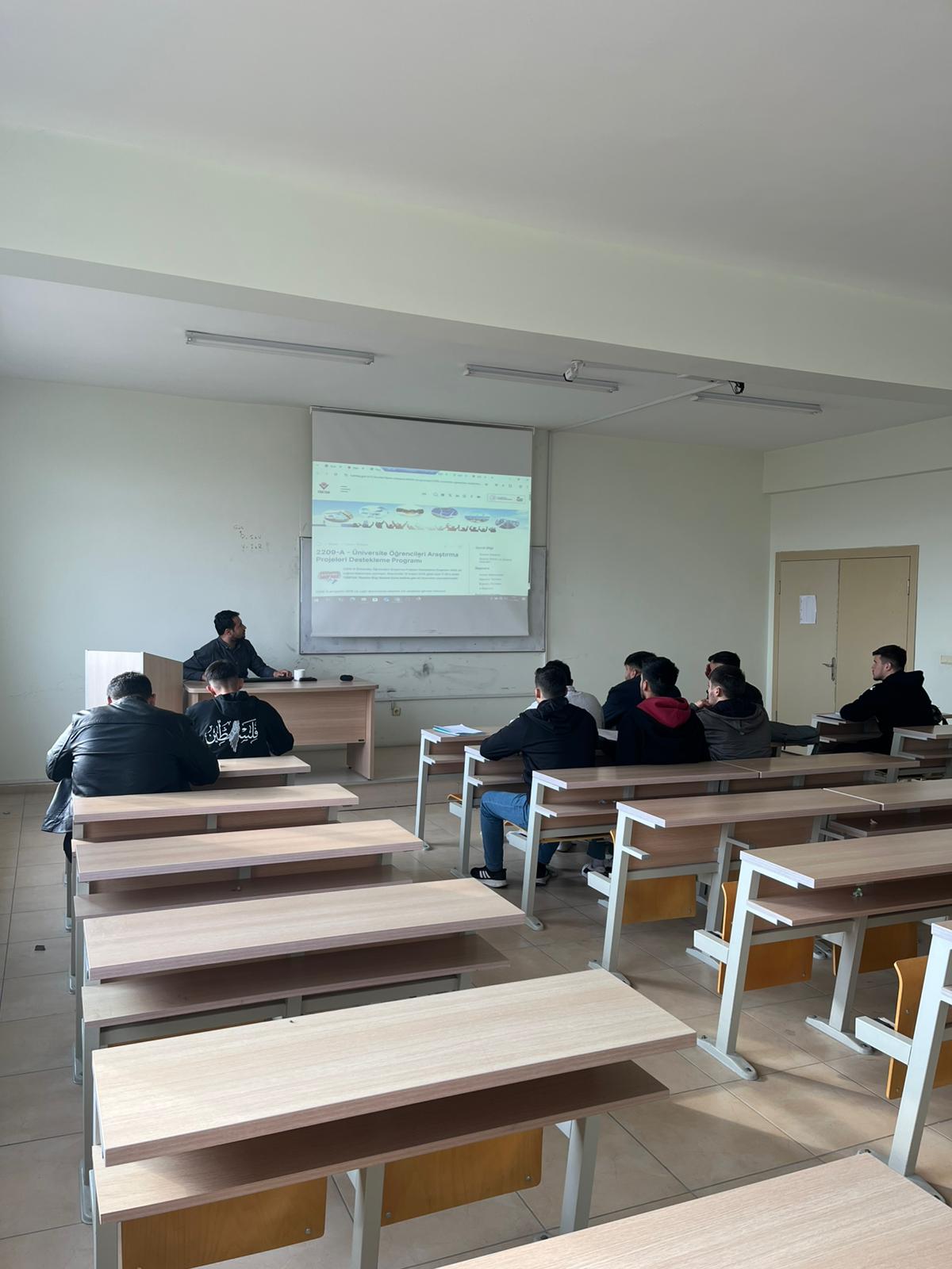 07.11.2025 tarihinde saat 11:00 da planladığımız etkinliğimize öğrencilerimiz ve bölüm öğretim elemanlarımız tam katılım sağlamıştır. Öğrencilerimize 12/11/2025 tarihinde sona erecek olan 2209-A/B projeleri kapsamında ARBİS ve TYBS kayıt ve güncellemelerini tamamlamaları sağlanmıştır. Öğrencilerimizle proje başlıkları belirlenmiş olup projelerimizin başvuru formunu nasıl hazırlayacakları konusunda eğitim verilmiştir. Eğitim sonrasında hazırlanan anket öğrencilerimiz tarafından doldurulması istenmiştir.