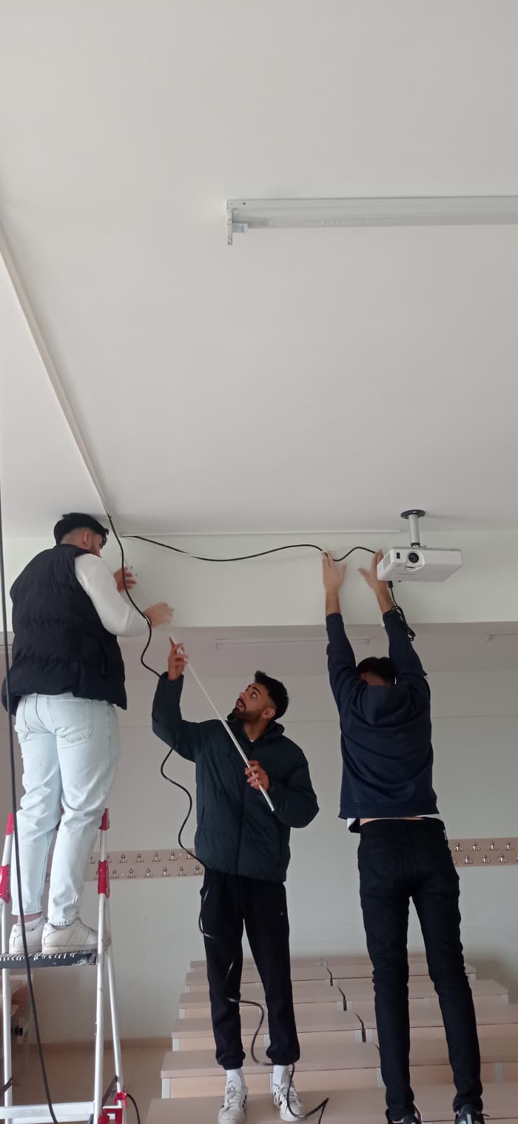 Meslek Yüksekokulumuz Elektronik ve Otomasyon Bölümü Elektronik Teknolojisi Programı öğrencileri, Öğr. Gör. Mehmet TOĞA’nın yürüttüğü Arıza Analizi dersi kapsamında önemli bir uygulamalı çalışmaya imza attı. 18 Aralık tarihinde dersin uygulama süreçleri doğrultusunda, sınıflarda bulunan projeksiyon sistemlerinin bağlantı altyapısı elden geçirilerek mevcut kablolar yenilendi ve HDMI kablo bağlantı sistemine geçiş sağlandı.