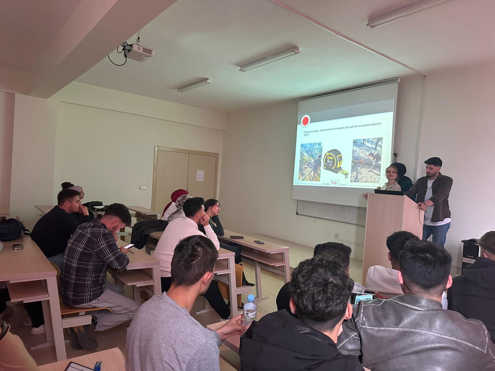 Ormancılık ve Orman Ürünleri Programı 1. sınıf öğrencilerine yönelik “Staj Kabul Süreçleri ve SYS Sistemi Bilgilendirme Toplantısı” gerçekleştirildi. Toplantı, 1. sınıf akademik danışmanı Öğr. Gör. Aşkın Nur ÇETİN tarafından yürütüldü. Toplantıya katılan 2. sınıf öğrencileri de kendi staj deneyimlerini paylaşarak, ilerleyen dönemde staj yapacak öğrencilere süreç hakkında bilgilendirmelerde bulundu. Bilgilendirme kapsamında öğrencilere; staj başvuru sürecinde dikkat edilmesi gereken hususlar, staj kabul işlemlerinde izlenecek aşamalar ve gerekli belge süreçleri hakkında ayrıntılı bilgiler verildi. Ayrıca toplantıda, öğrencilerin staj ve akademik süreçlerini daha düzenli ve etkin bir şekilde takip edebilmeleri amacıyla kullanılan SYS Sistemi hakkında uygulamalı bilgilendirme yapıldı. Sistem üzerinden gerçekleştirilecek işlemler, belge yükleme adımları, onay süreçleri ve öğrencilerin karşılaşabileceği olası sorunlara ilişkin açıklamalarda bulunuldu. Toplantı sonunda öğrencilerden gelen sorular yanıtlanarak; özellikle staj yeri belirleme, staj tarihlerinin planlanması ve sistem kullanımı konularında merak edilen hususlar açıklığa kavuşturuldu. Gerçekleştirilen bu bilgilendirme toplantısının, öğrencilerin staj süreçlerini daha bilinçli, planlı ve etkin bir şekilde yürütmelerine katkı sağlaması amaçlanmıştır.